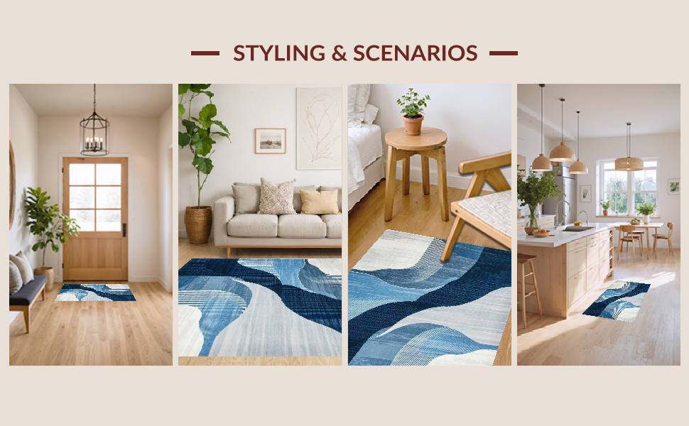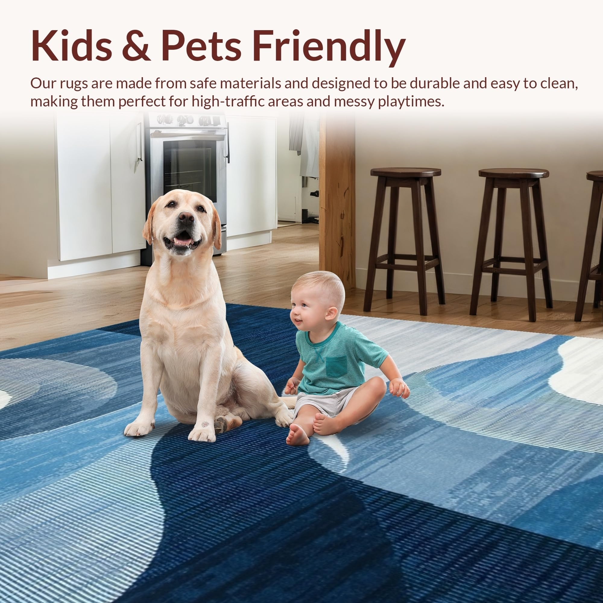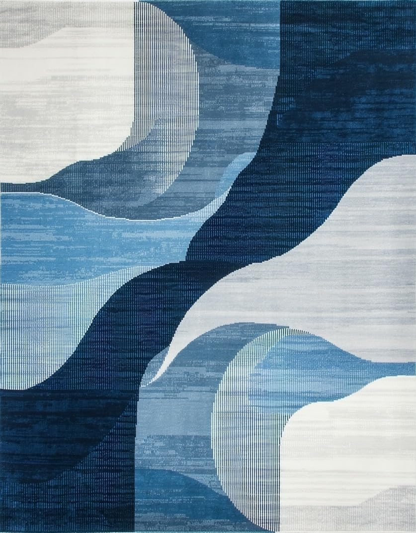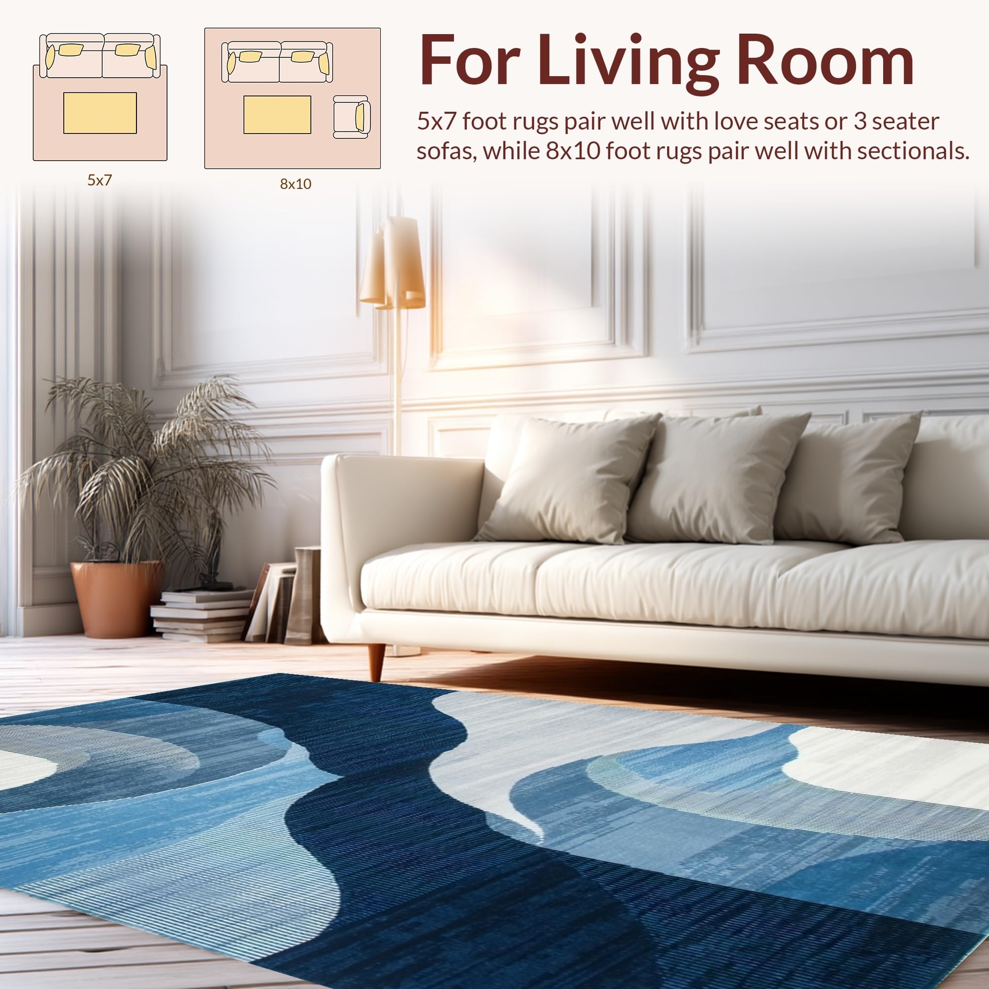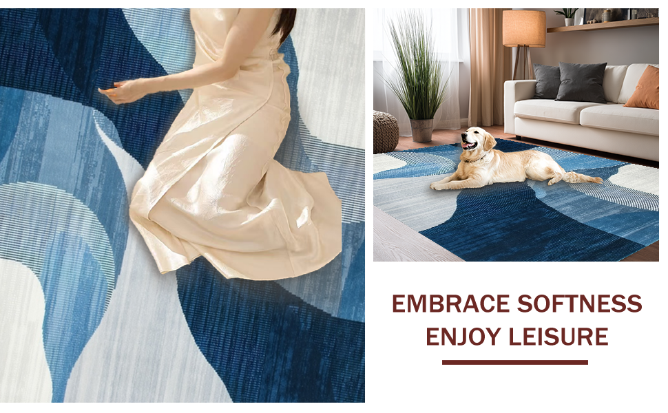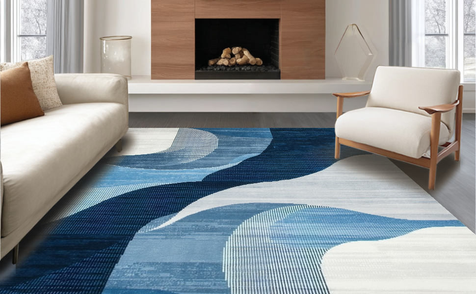 Ultra Soft Area Rug, Non Slip, Stain Resistant, Washable Area Rugs for Living Room, Bedroom, Luxe Textured Organic Shape Elements(Blue) Overview: