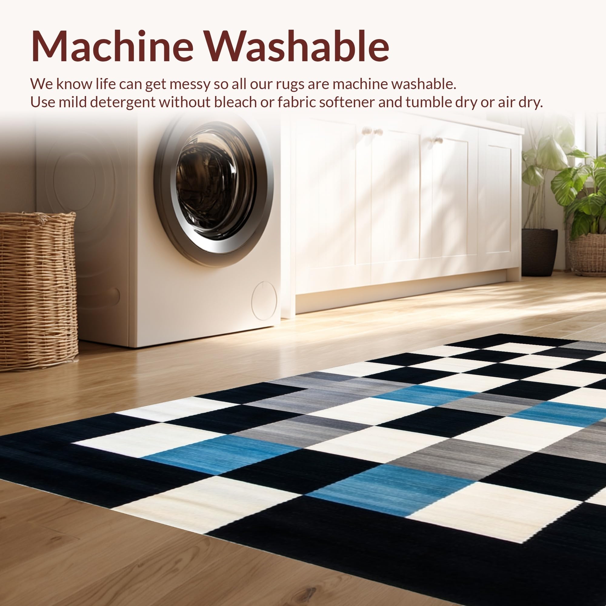- Machine Washable: Our rugs can be easily thrown in the wash machine.
