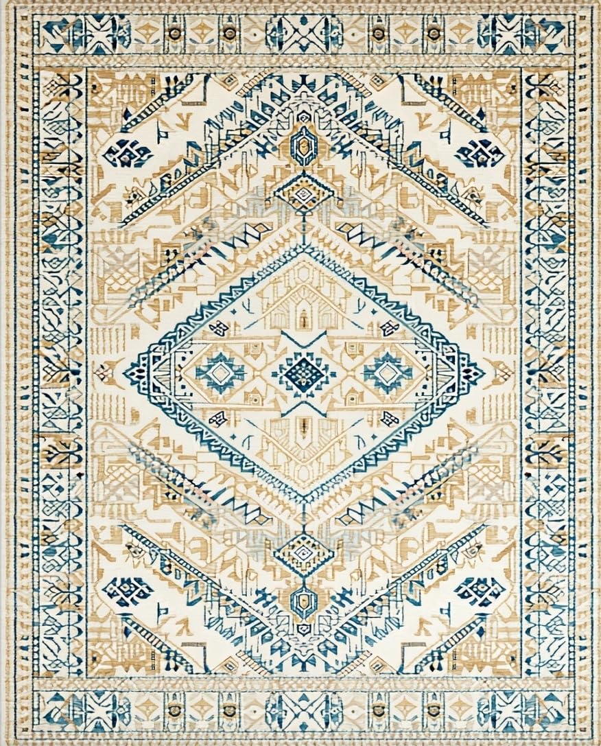 Ultra Soft Area Rug, Non Slip, Stain Resistant, Washable Area Rugs for Living Room, Bedroom, Luxe Warm Toned Striped Design(Beige) Overview: