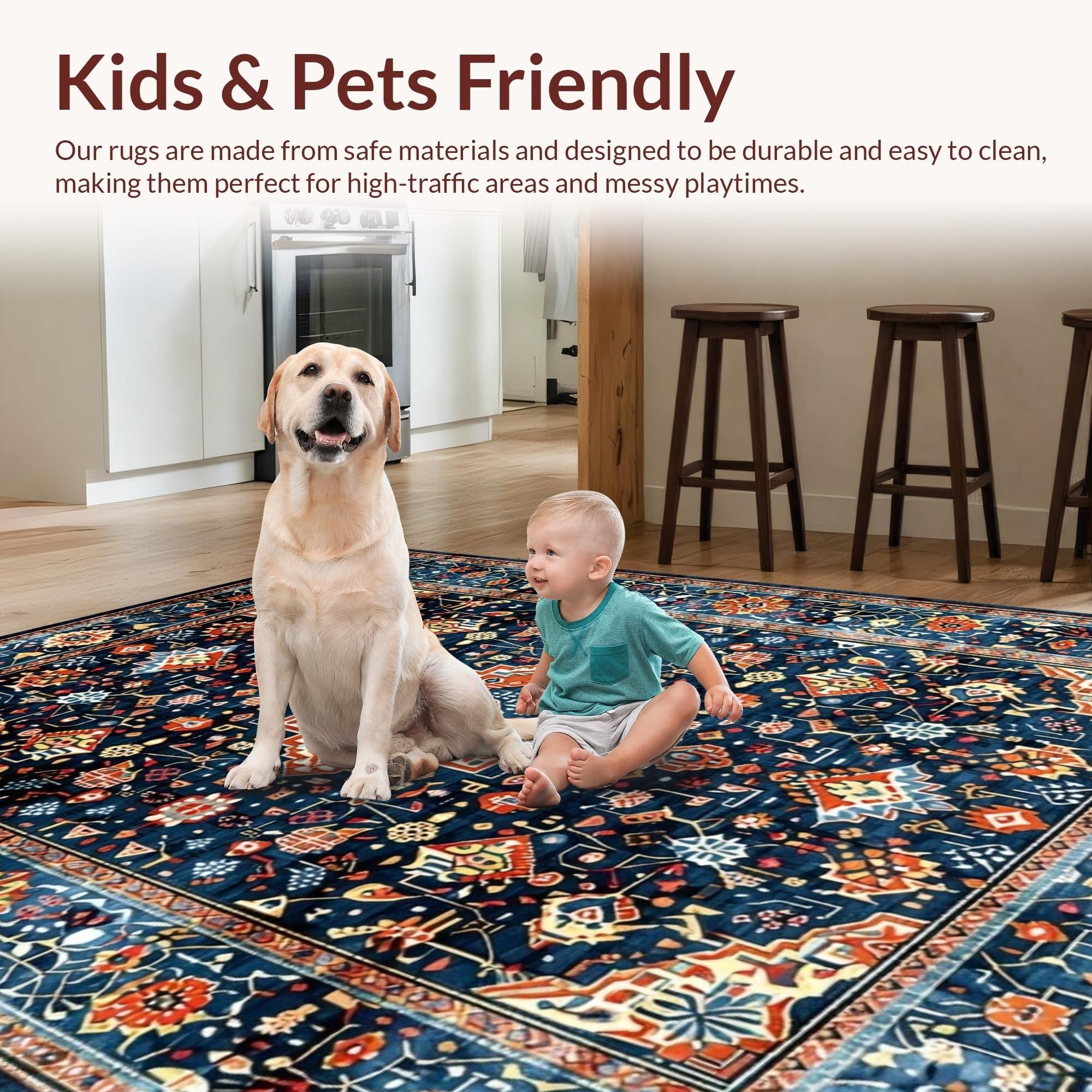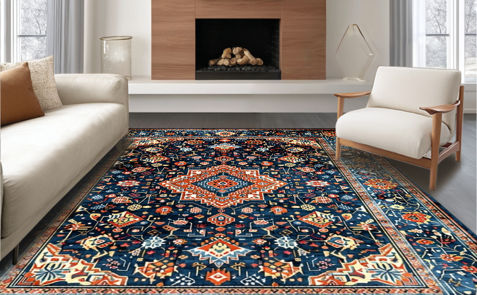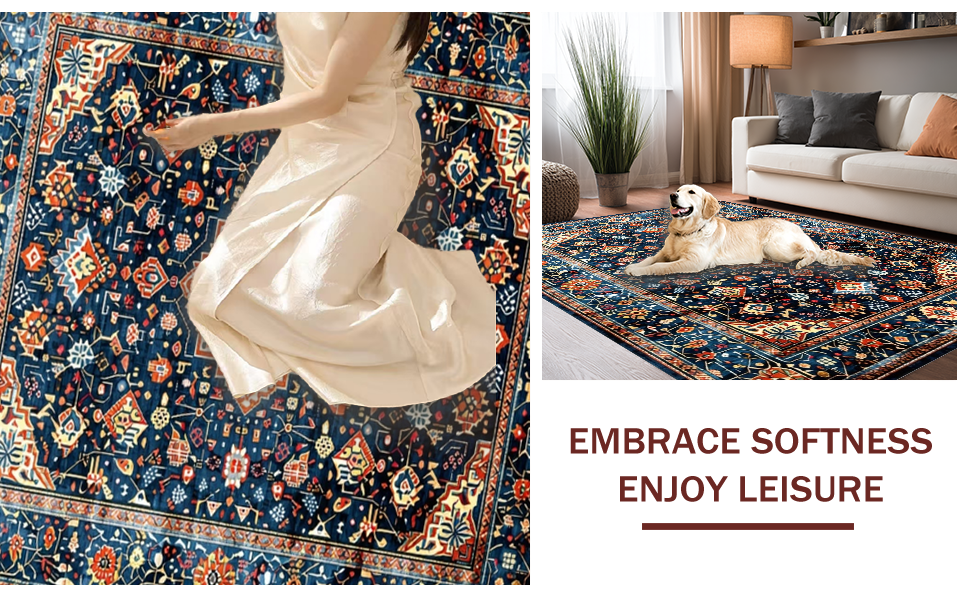 Ultra Soft Area Rug, Non Slip, Stain Resistant, Washable Area Rugs for Living Room, Bedroom, Luxurious Abstract Colorful Motif(Blue) Overview: