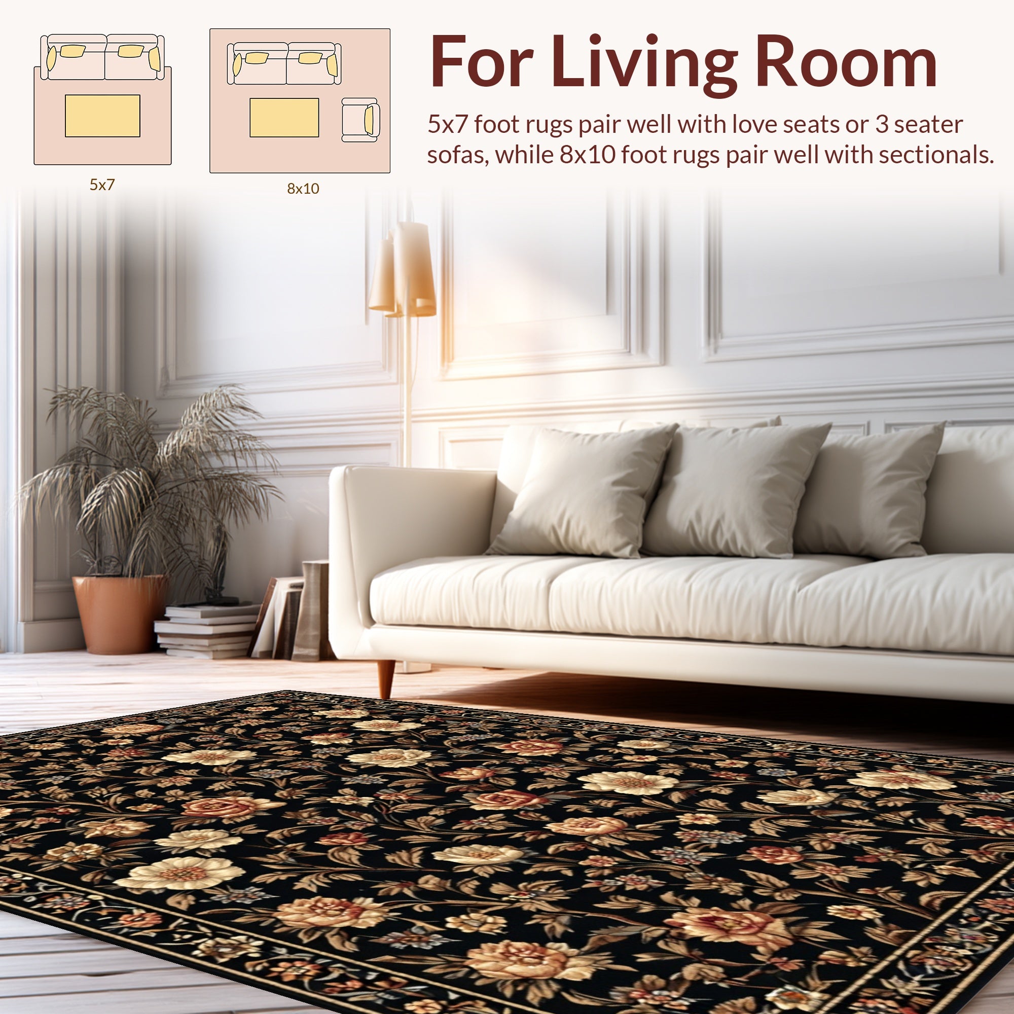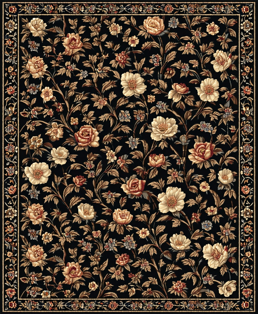 Flatwoven High Traffic Area Rug, Luxurious Abstract Floral, Non Slip, Stain Resistant, Washable Area Rugs for Living Room, Bedroom (Black) Overview: