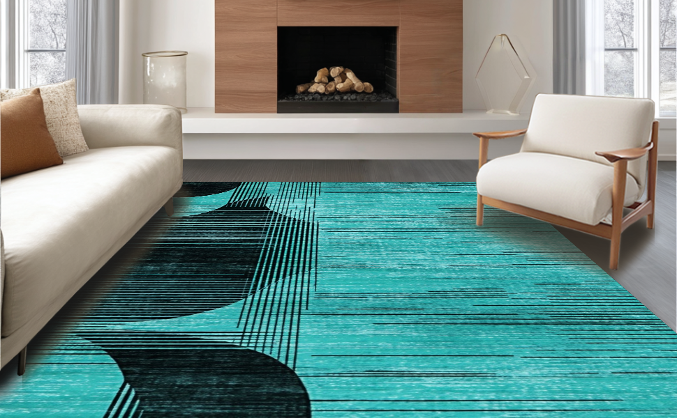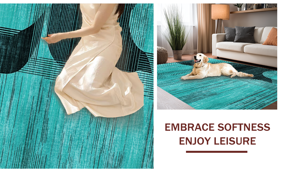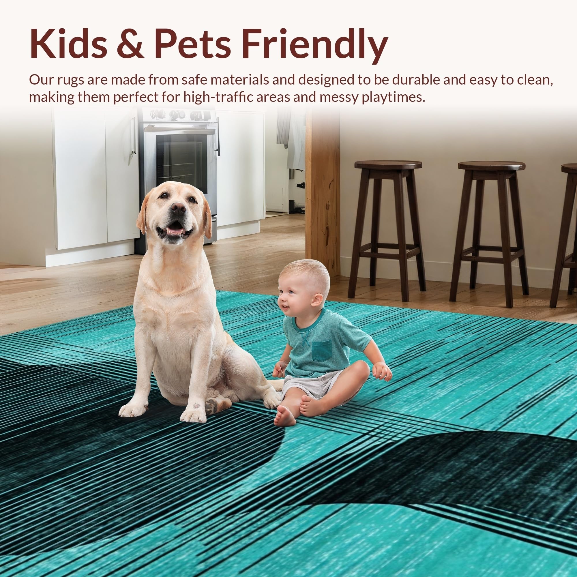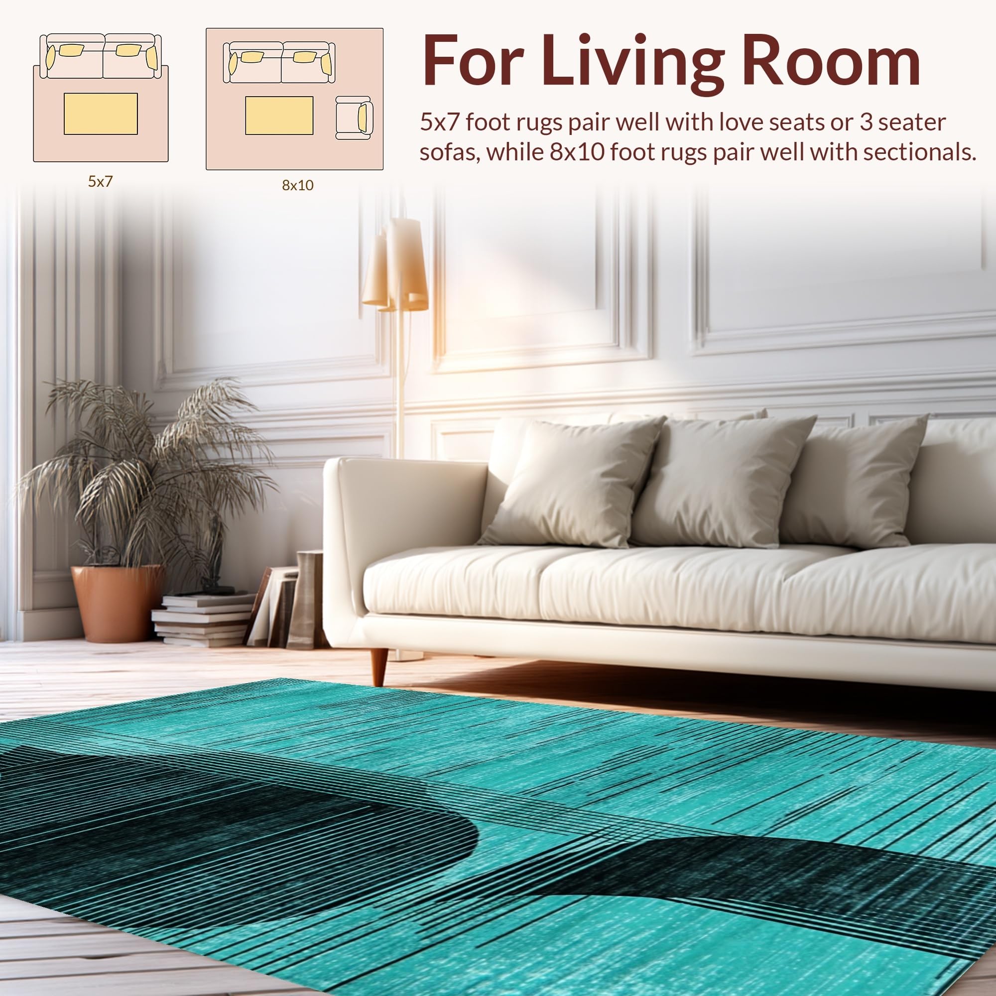 Ultra Soft Area Rug, Non Slip, Stain Resistant, Washable Area Rugs for Living Room, Bedroom, Luxurious Abstract Geometric Aesthetic(Green) Overview: