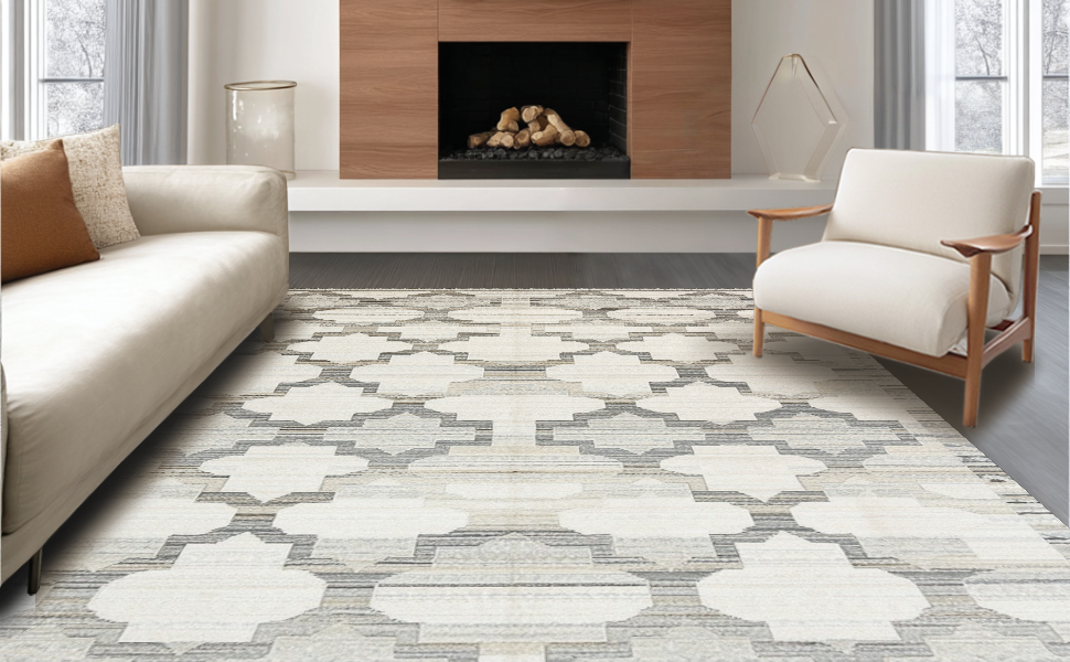 Ultra Soft Area Rug, Non Slip, Stain Resistant, Washable Area Rugs for Living Room, Bedroom, Luxurious Abstract Geometric Shapes(Gray) Overview: