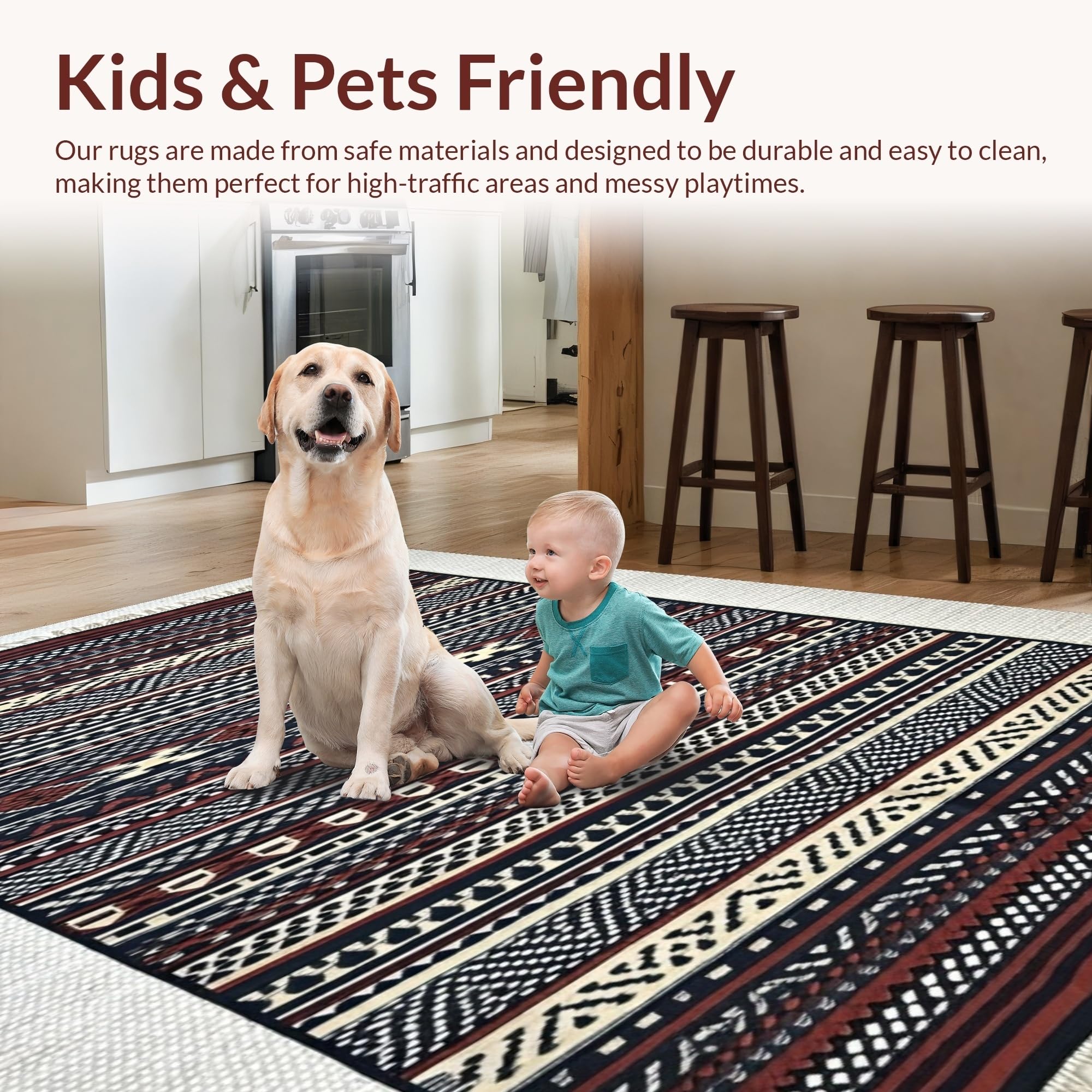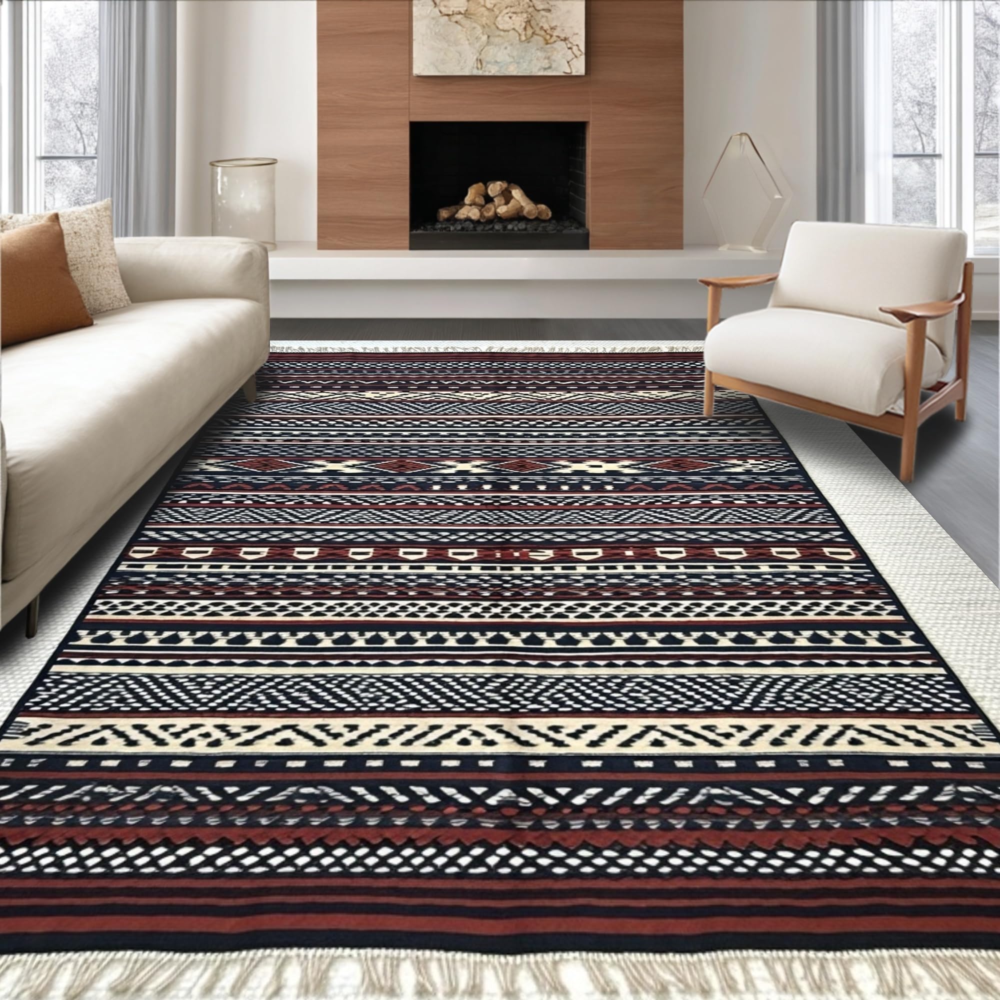 Ultra Soft Area Rug, Non Slip, Stain Resistant, Washable Area Rugs for Living Room, Bedroom, Luxurious Abstract Geometric Style(Black) Overview: