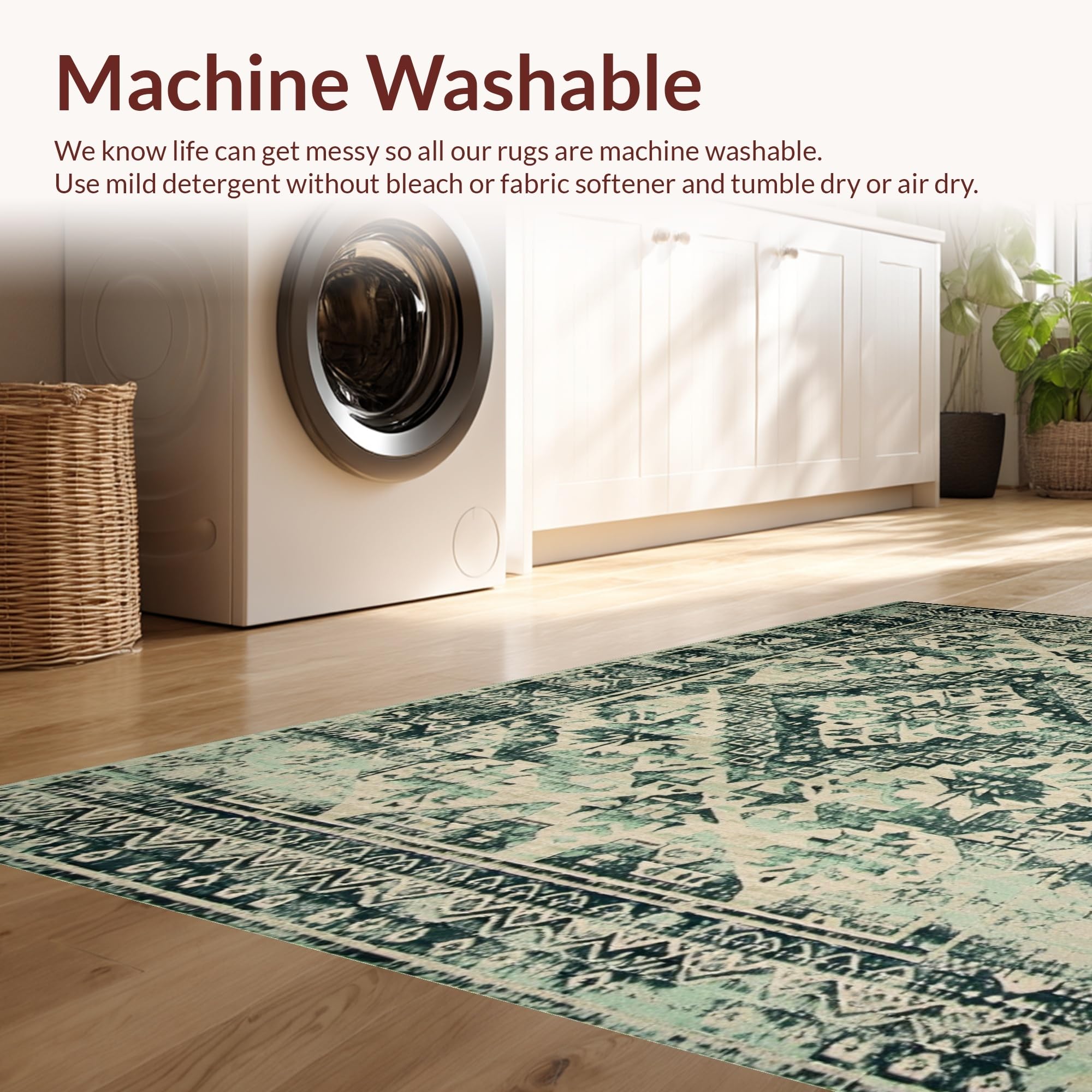 - Machine Washable: Our rugs can be easily thrown in the wash machine.