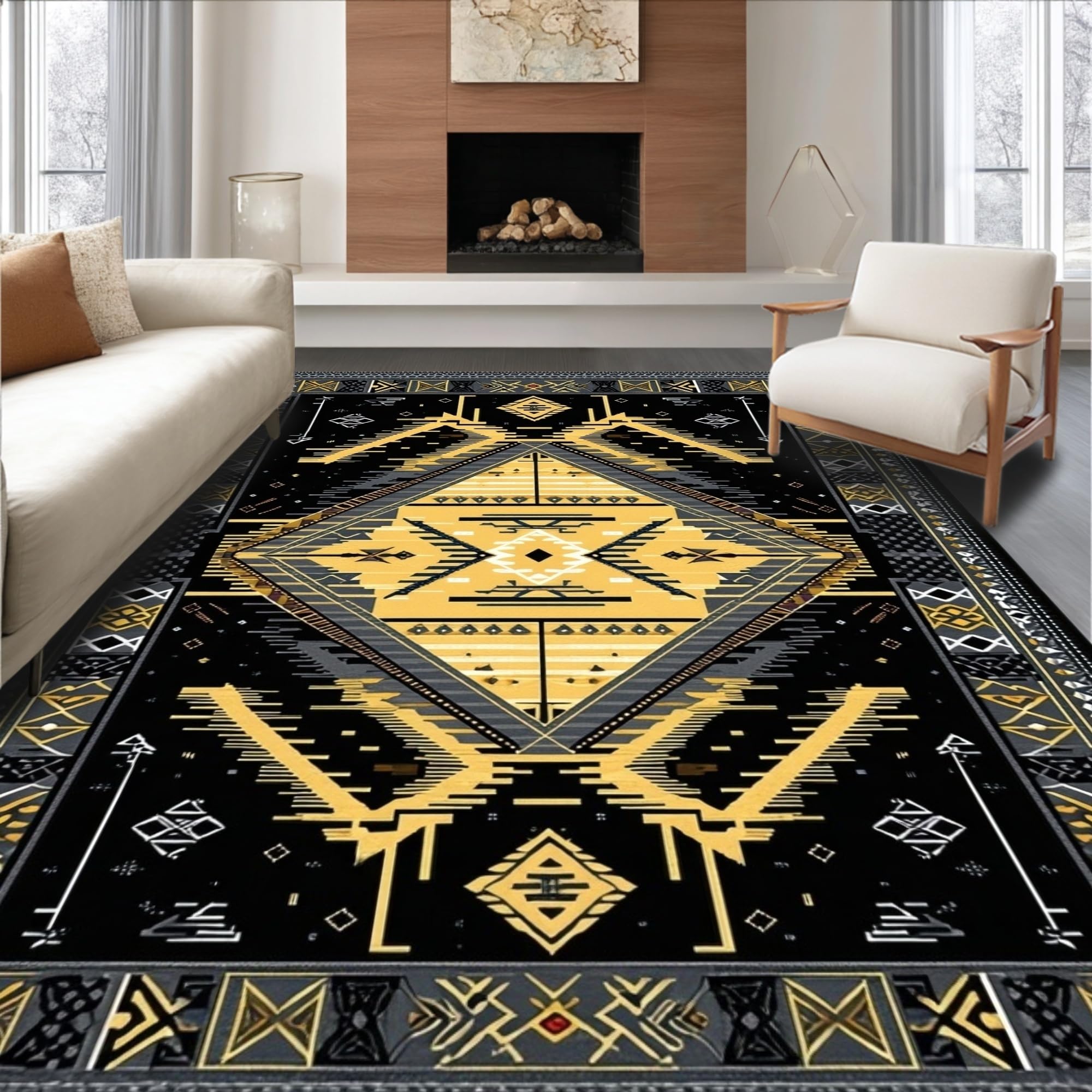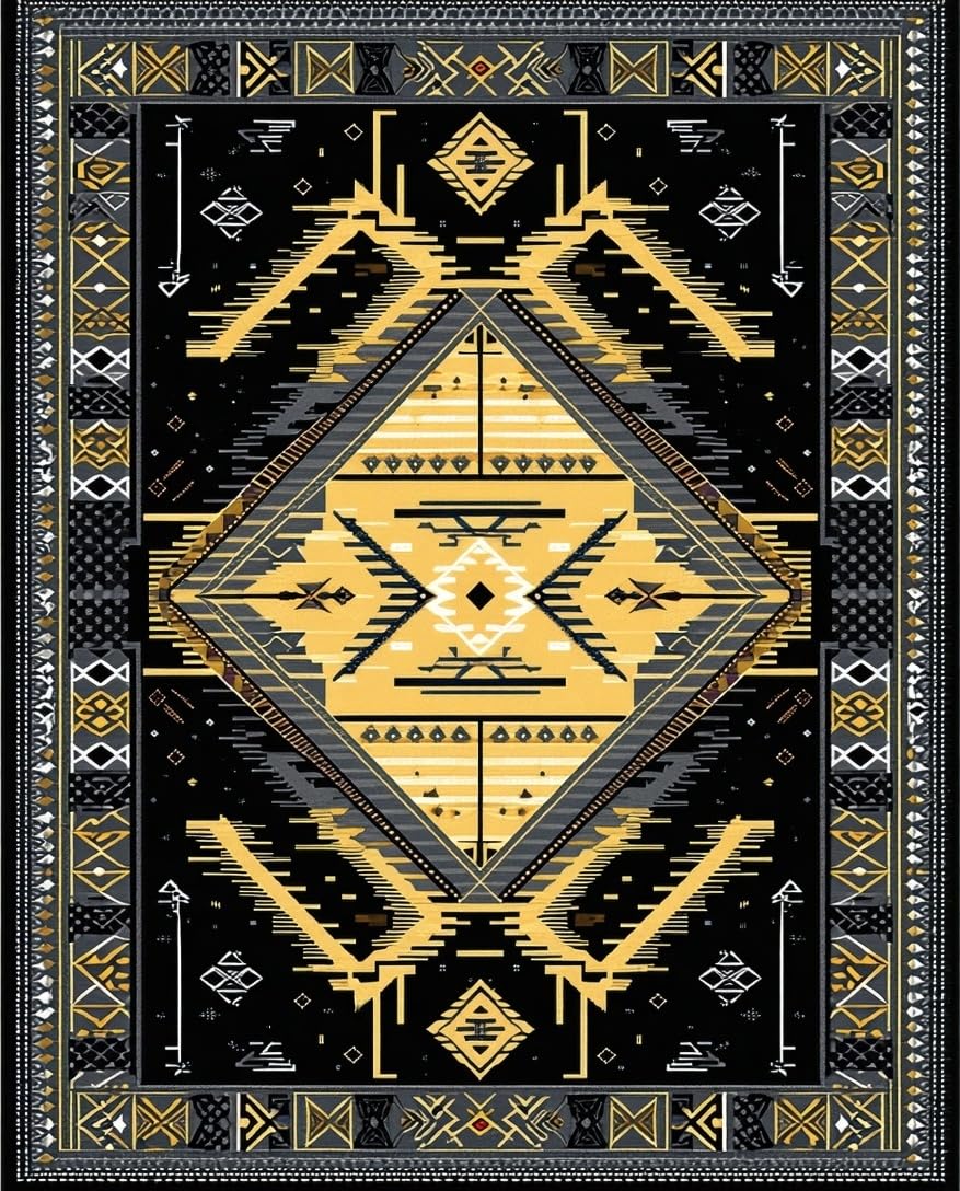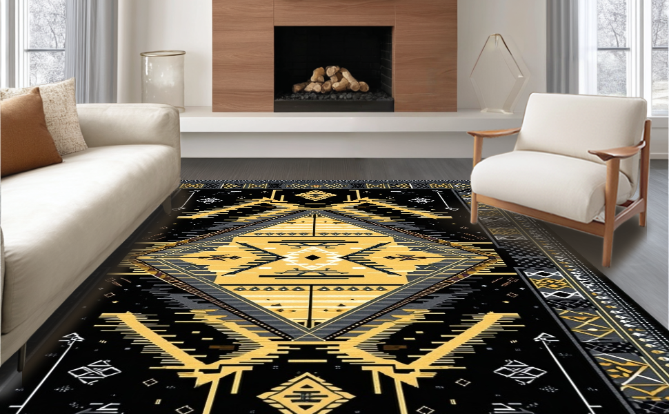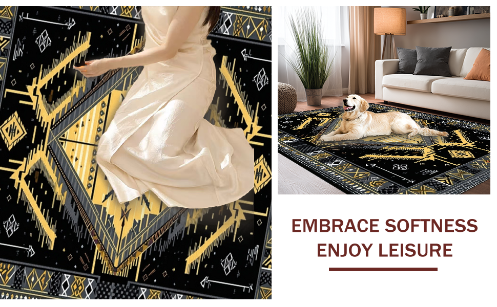 Ultra Soft Area Rug, Non Slip, Stain Resistant, Washable Area Rugs for Living Room, Bedroom, Luxurious Abstract Textured Design(Black) Overview: