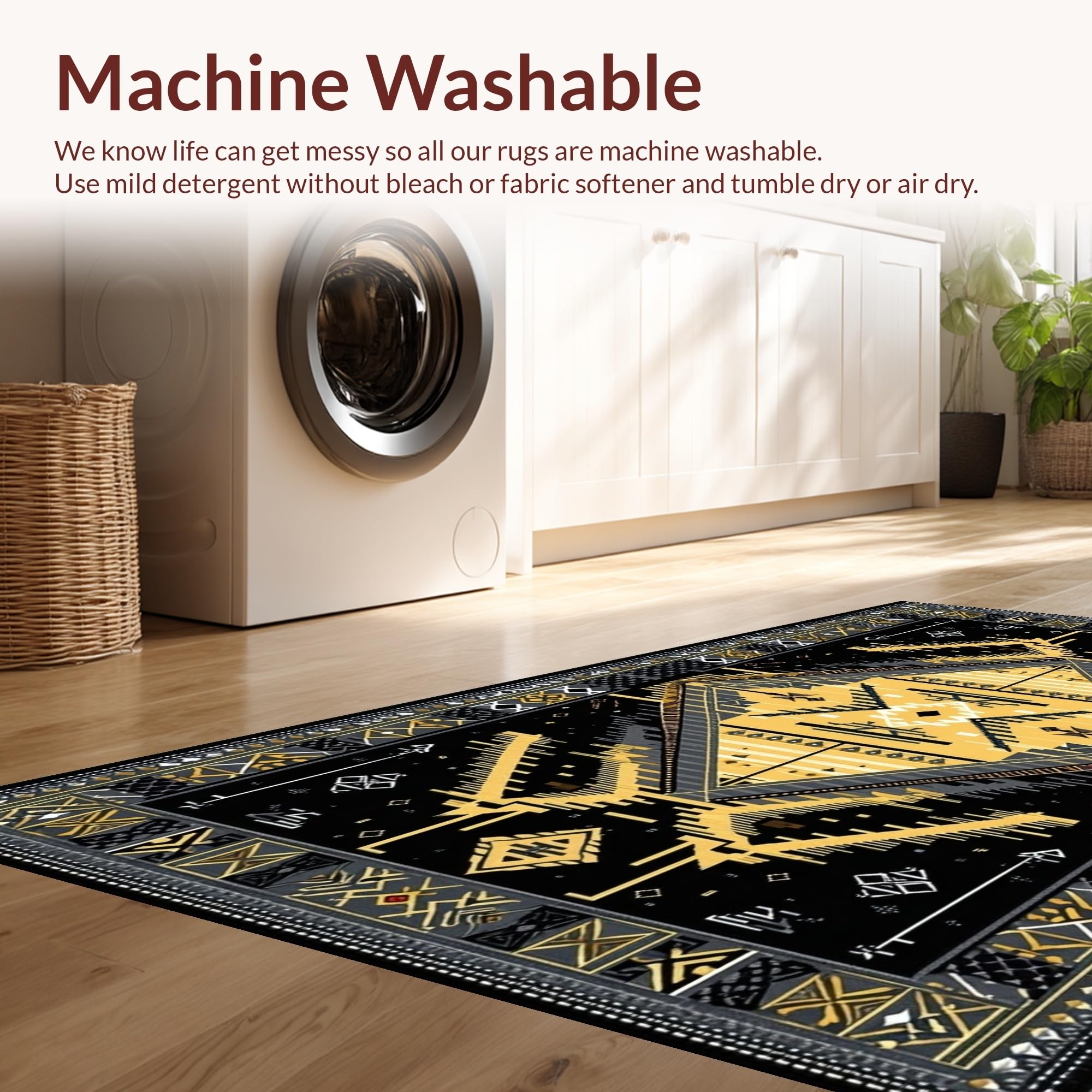 - Machine Washable: Our rugs can be easily thrown in the wash machine.
