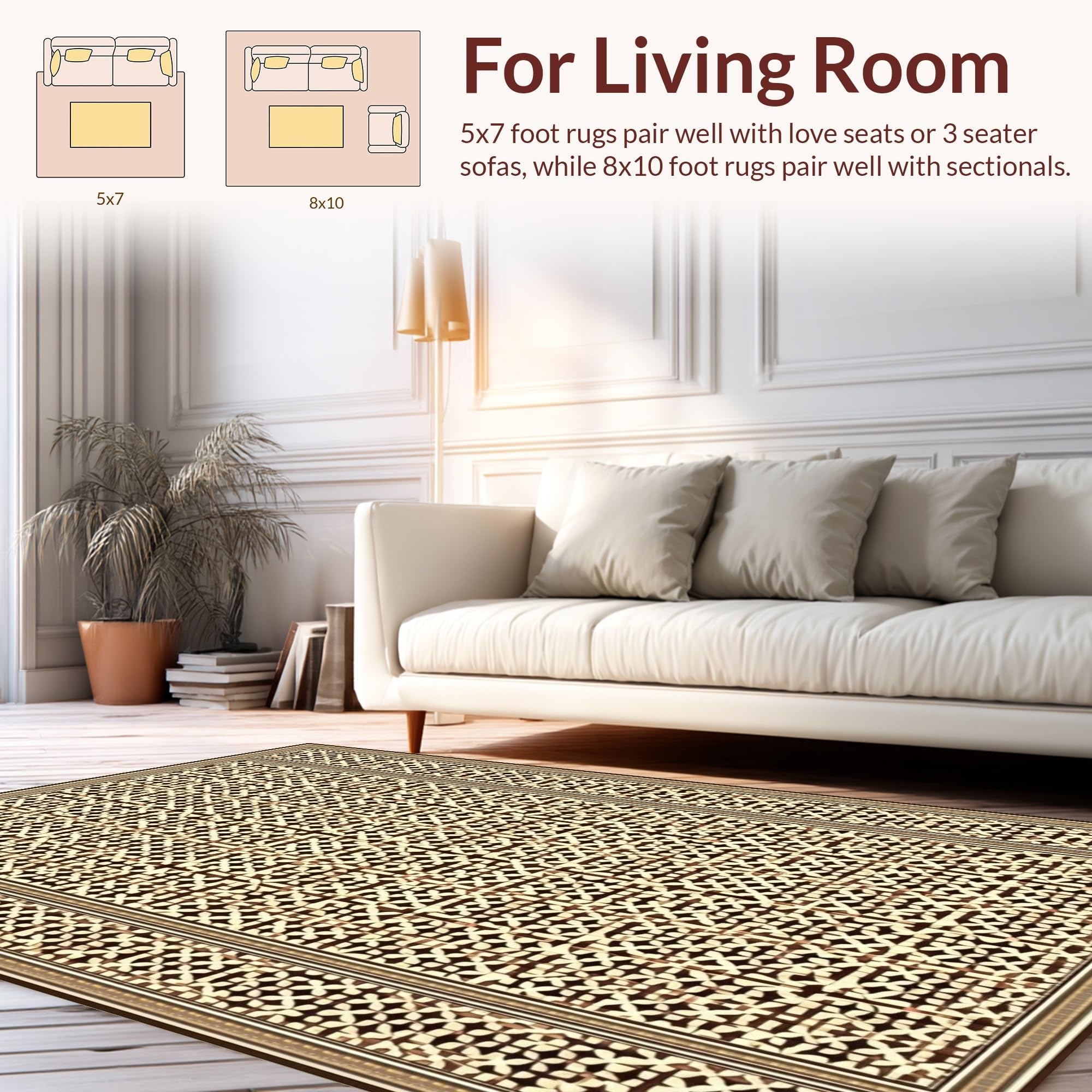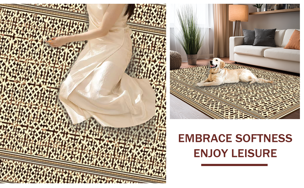 Ultra Soft Area Rug, Non Slip, Stain Resistant, Washable Area Rugs for Living Room, Bedroom, Luxurious Abstract Warm Color Scheme(Beige) Overview: