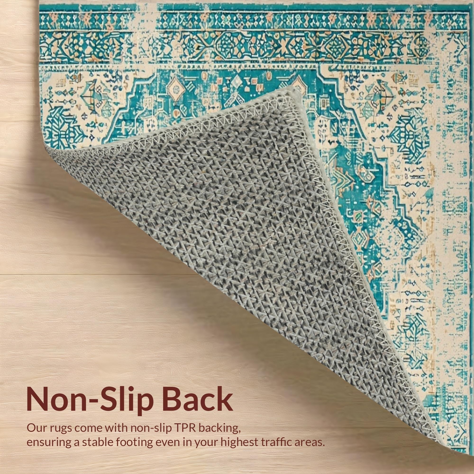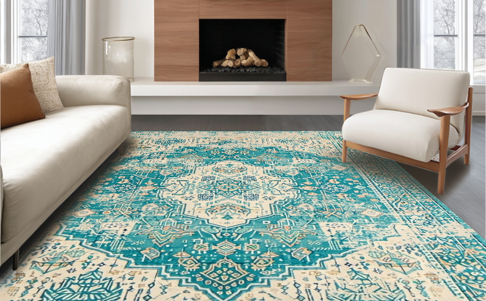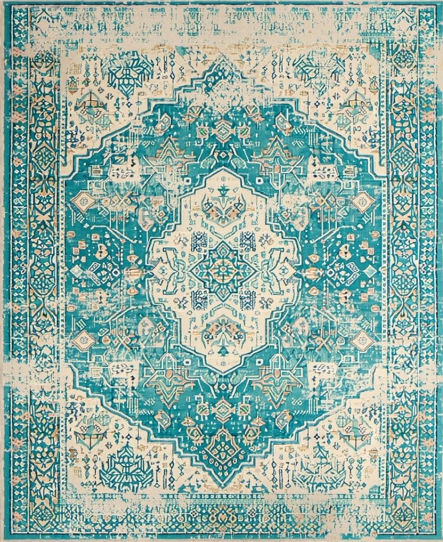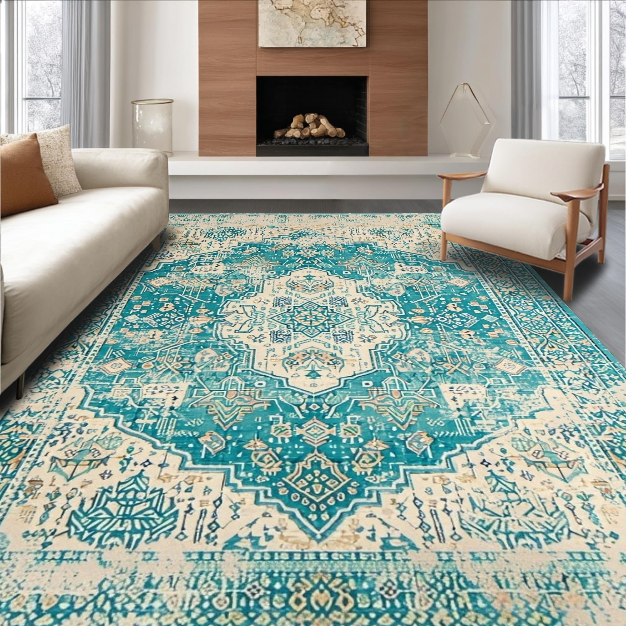 Ultra Soft Area Rug, Non Slip, Stain Resistant, Washable Area Rugs for Living Room, Bedroom, Luxurious Aqua Medallion Design(Blue) Overview: