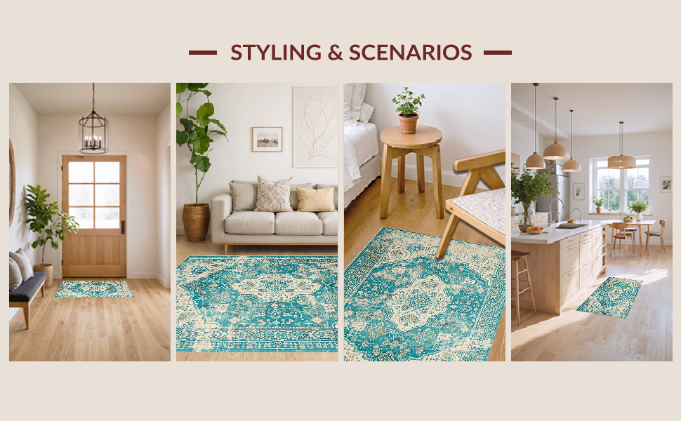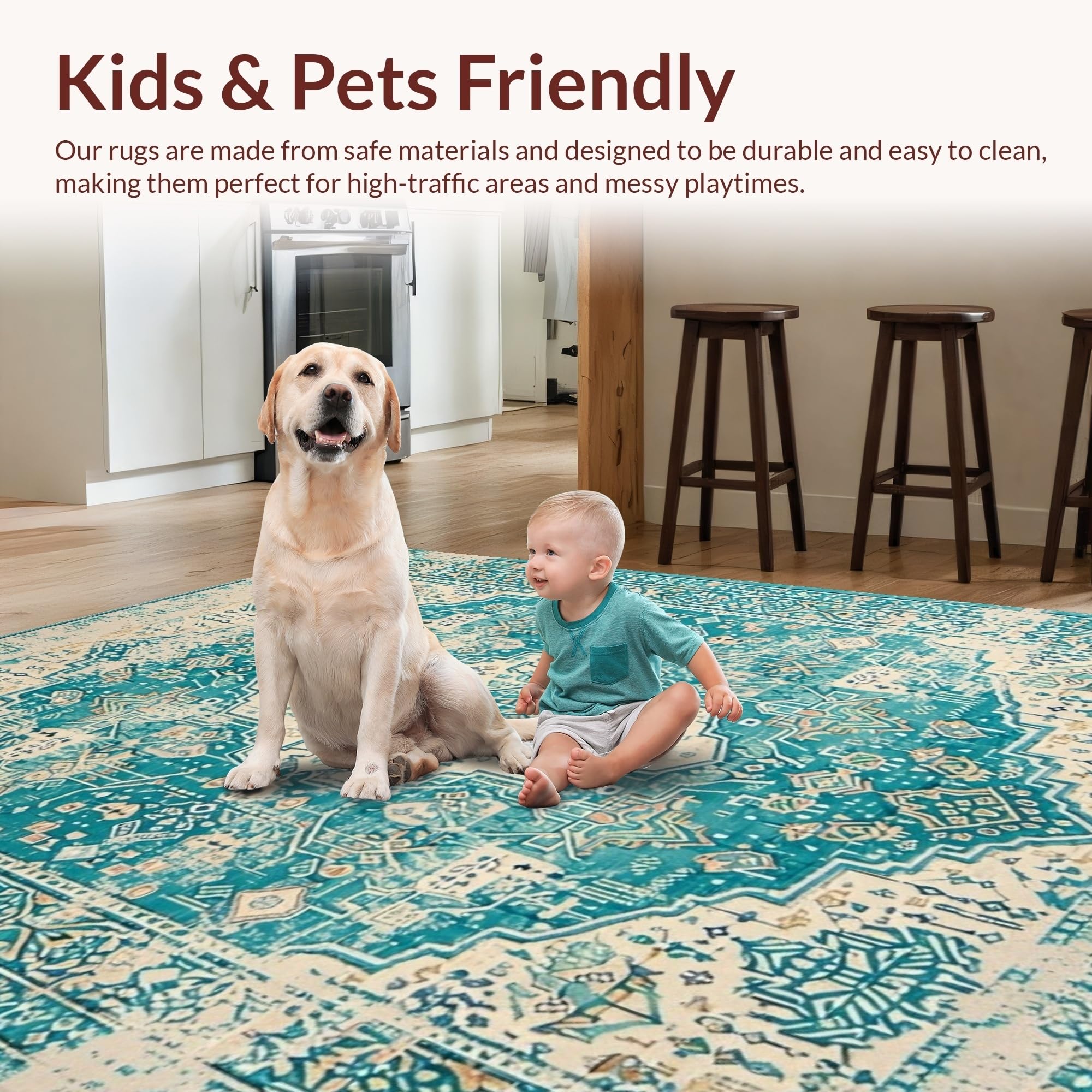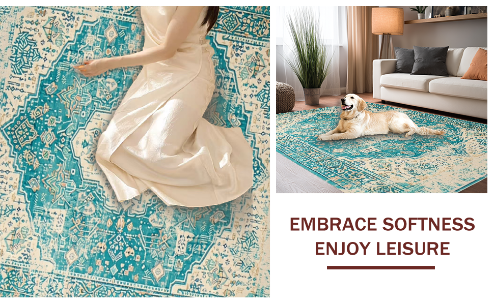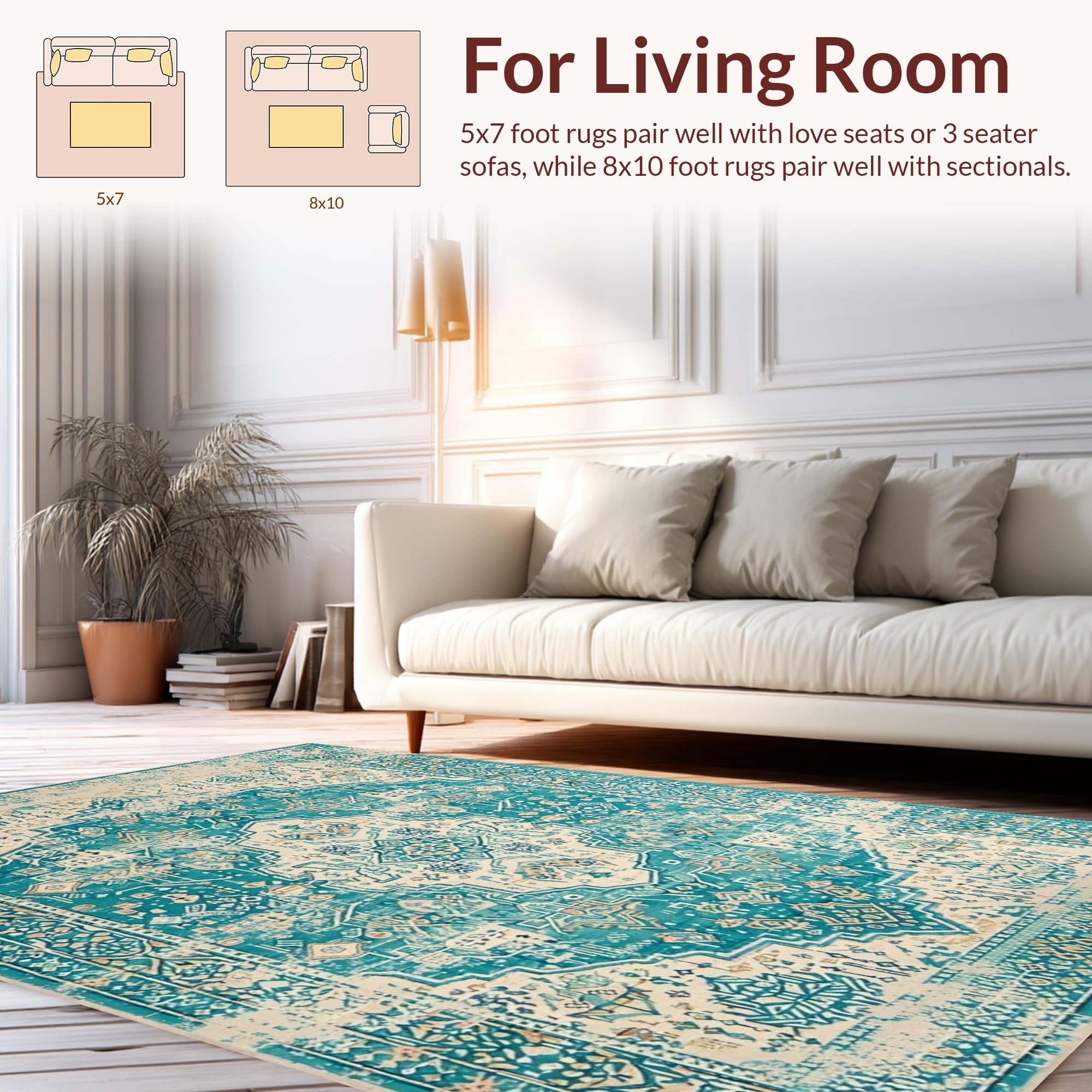 Ultra Soft Area Rug, Non Slip, Stain Resistant, Washable Area Rugs for Living Room, Bedroom, Luxurious Aqua Medallion Design(Blue) Overview: