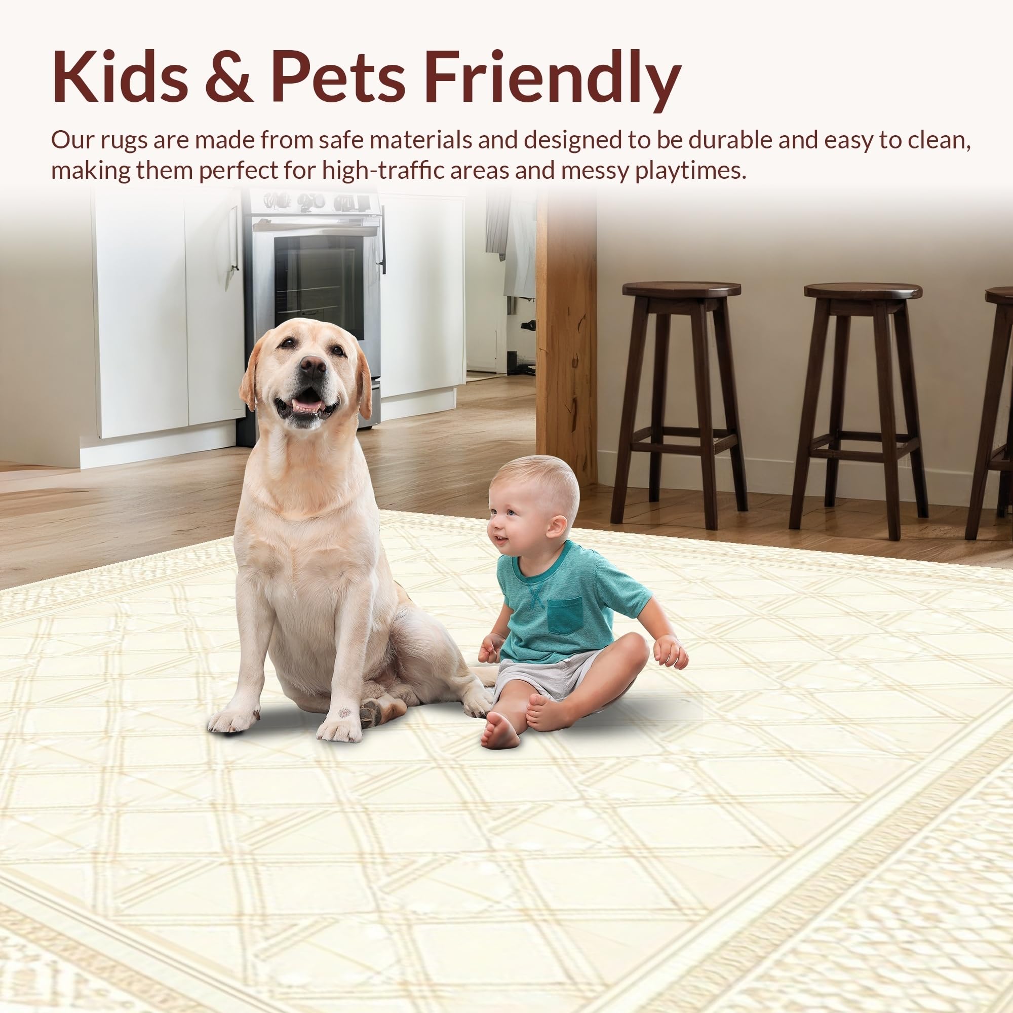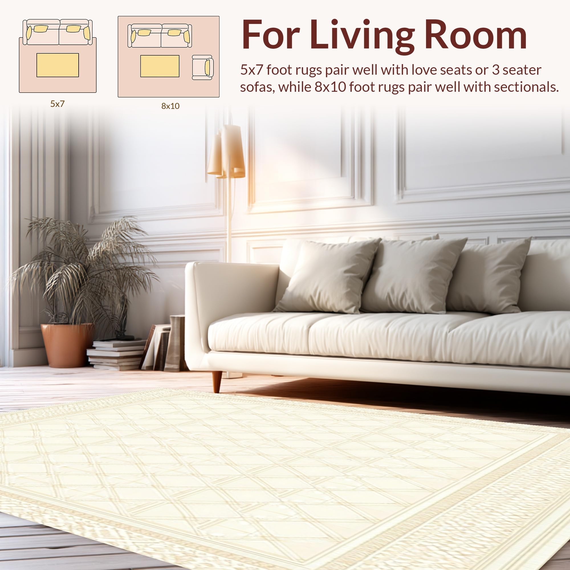 Ultra Soft Area Rug, Non Slip, Stain Resistant, Washable Area Rugs for Living Room, Bedroom, Luxurious Beige Diamond Lattice Area With Easy Clean Technology(Beige) Overview: