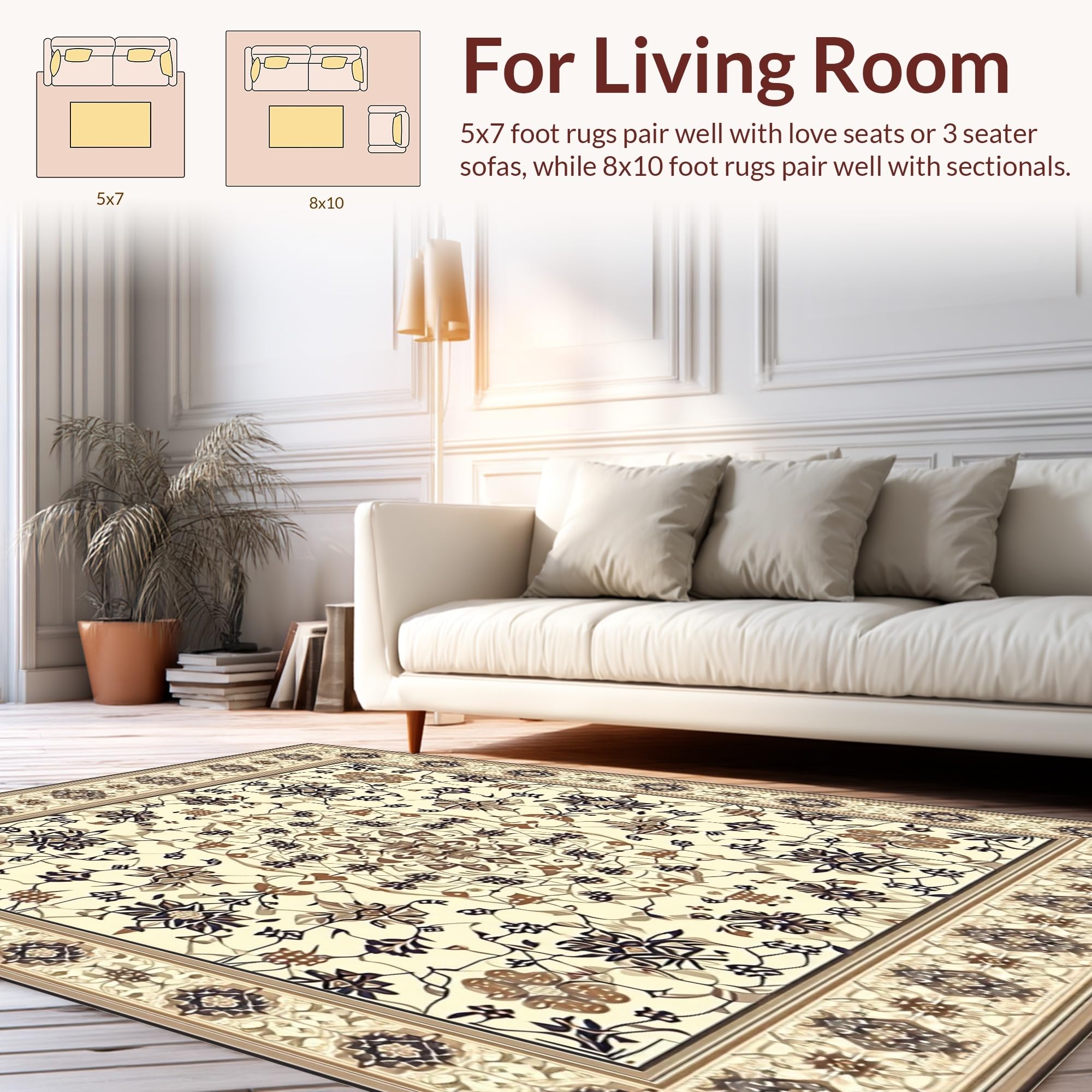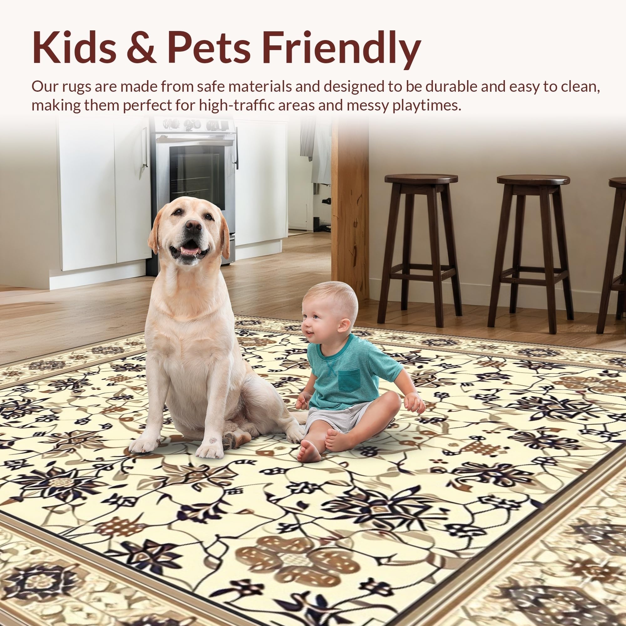 Ultra Soft Area Rug, Non Slip, Stain Resistant, Washable Area Rugs for Living Room, Bedroom, Luxurious Beige Ornamental with Contemporary Geometric(Beige) Overview: