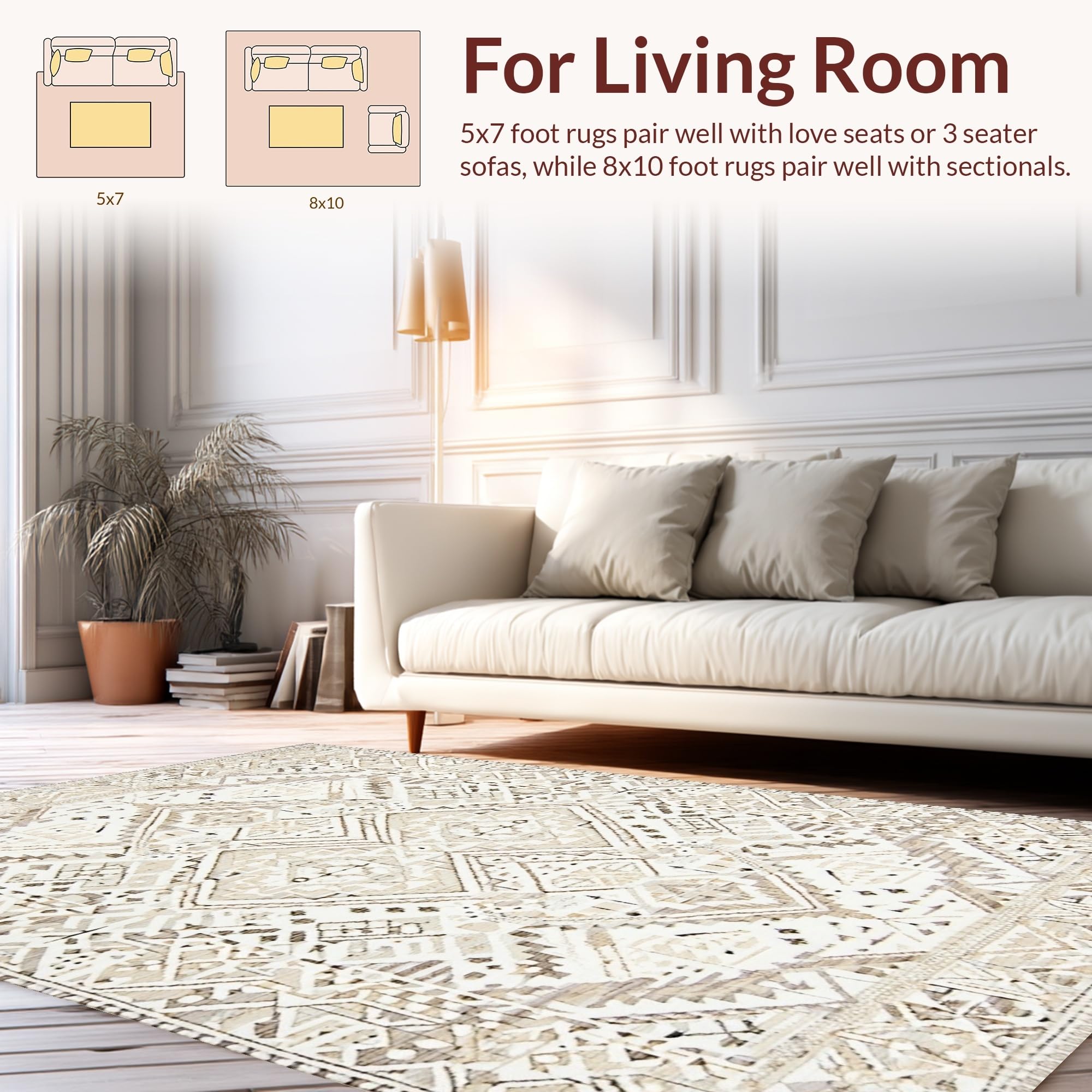 Ultra Soft Area Rug, Non Slip, Stain Resistant, Washable Area Rugs for Living Room, Bedroom, Luxurious Beige Shag Texture(Beige) Overview: