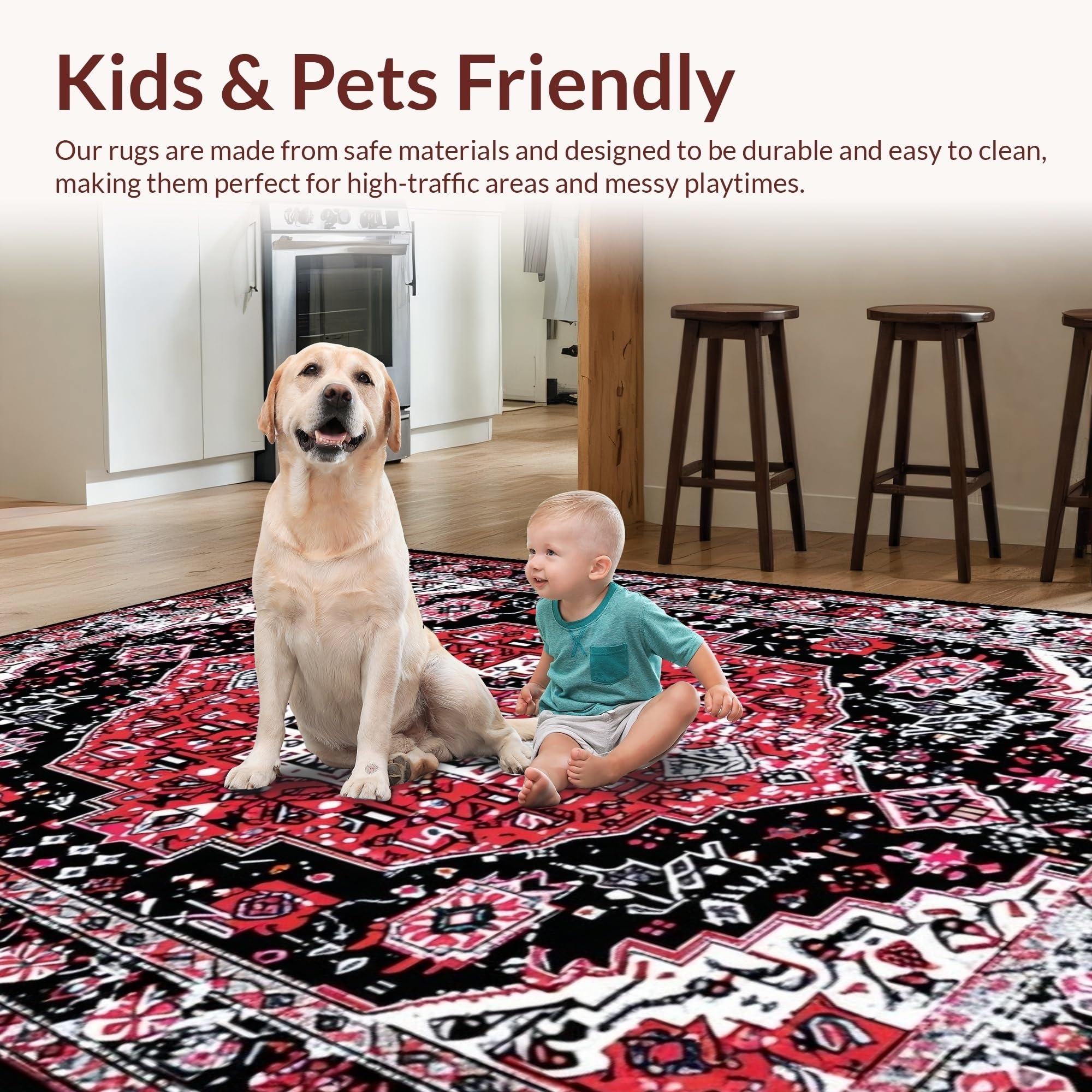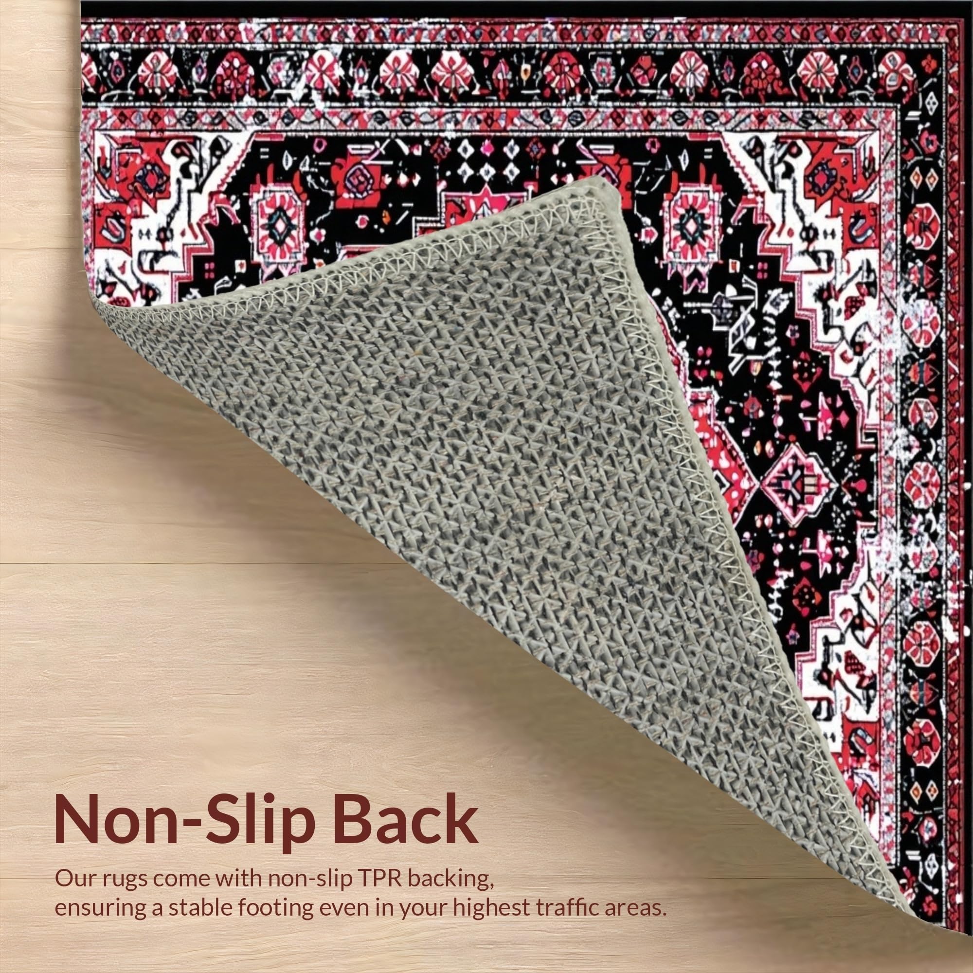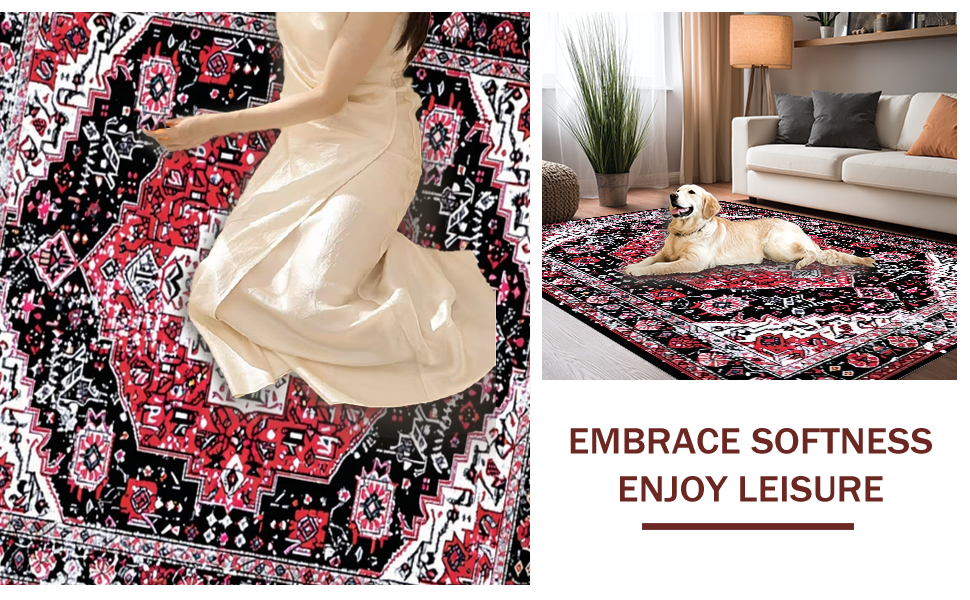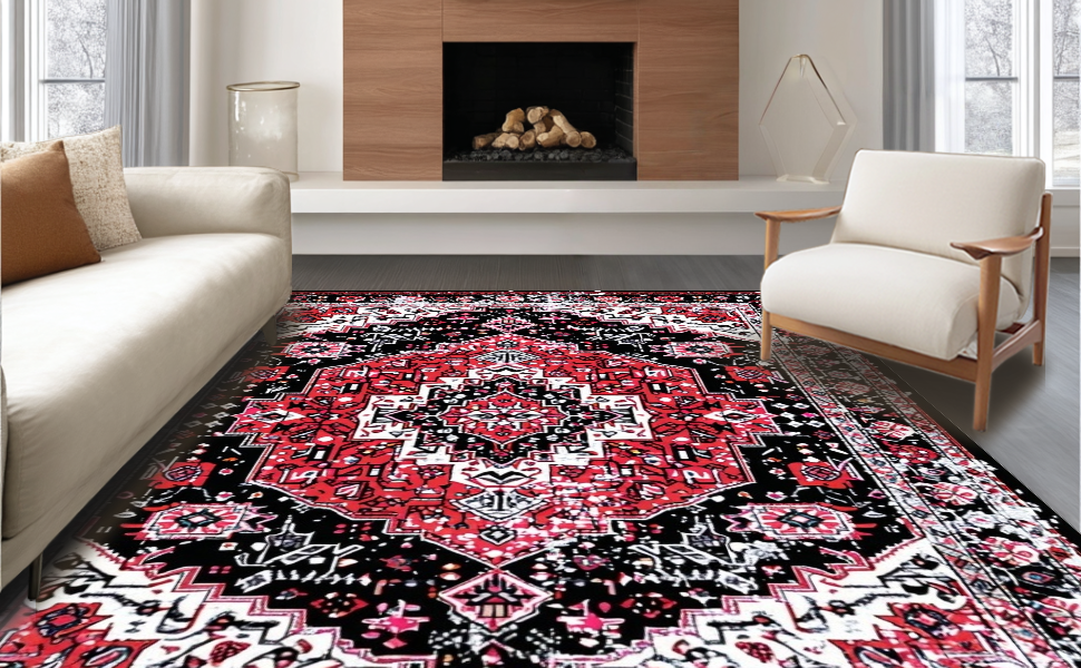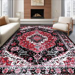 Ultra Soft Area Rug, Non Slip, Stain Resistant, Washable Area Rugs for Living Room, Bedroom, Luxurious Black Abstract Design(Red) Overview: