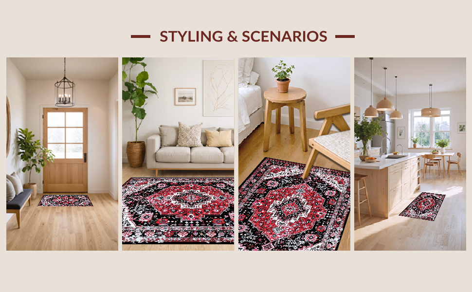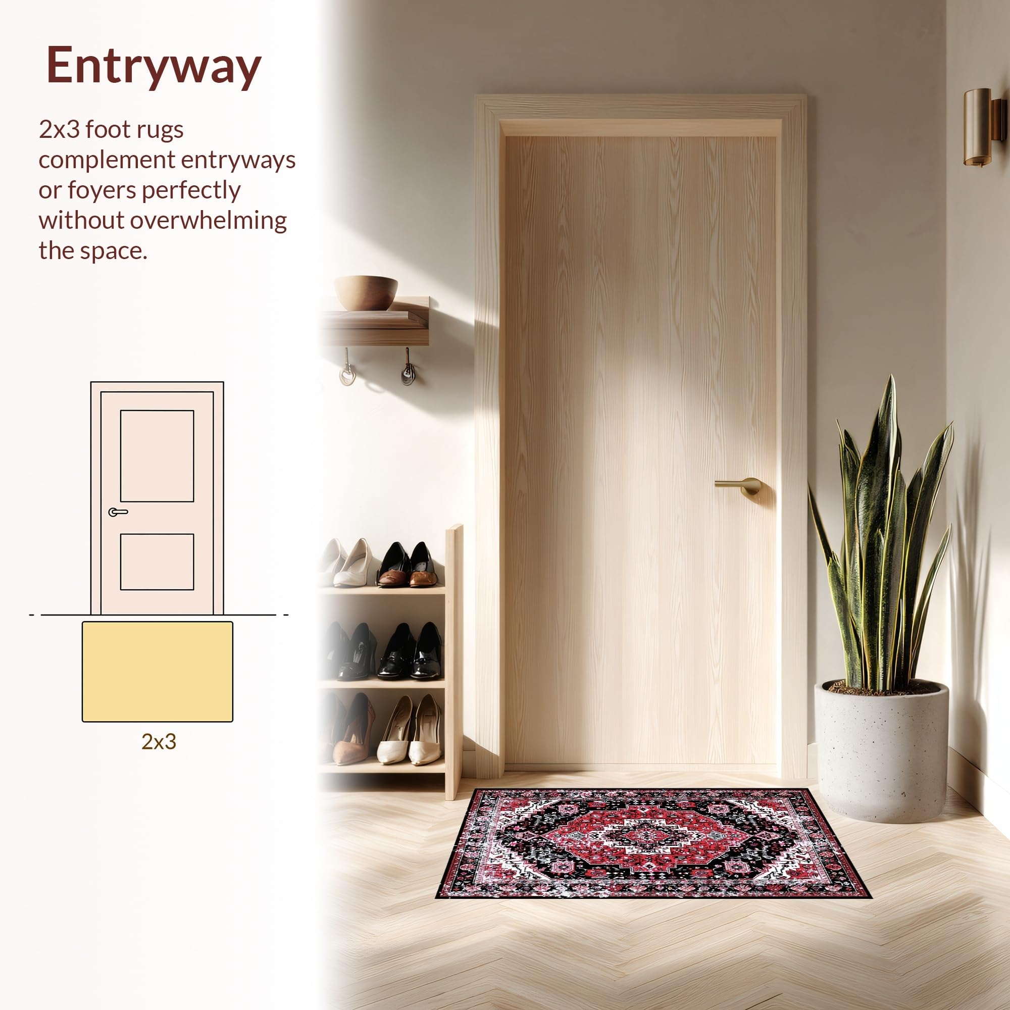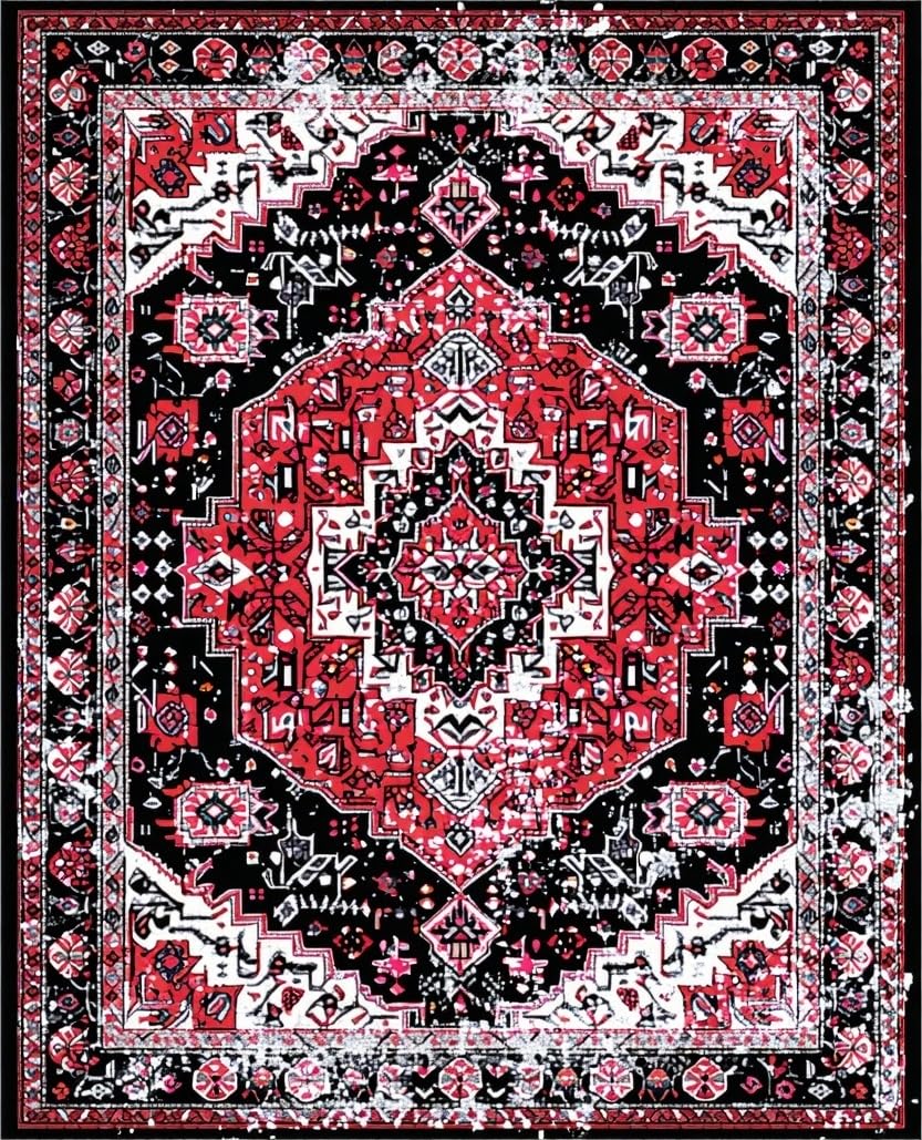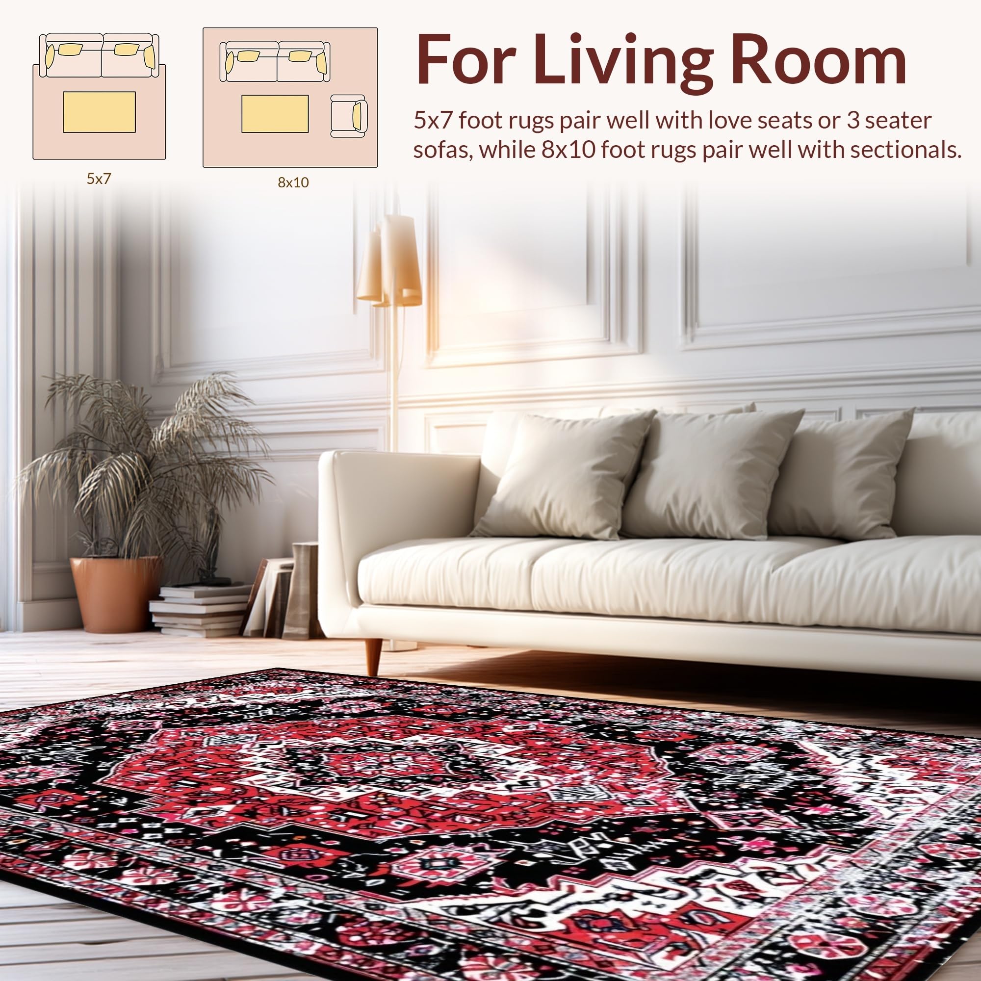 Ultra Soft Area Rug, Non Slip, Stain Resistant, Washable Area Rugs for Living Room, Bedroom, Luxurious Black Abstract Design(Red) Overview: