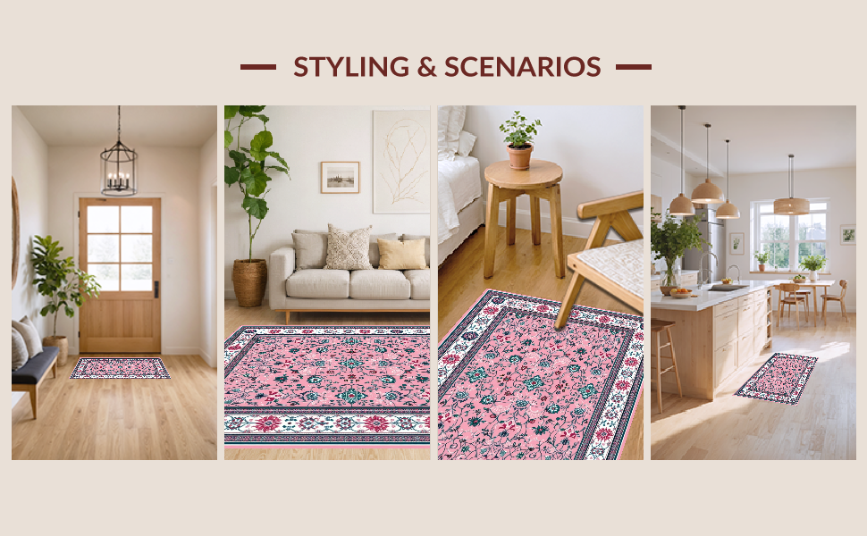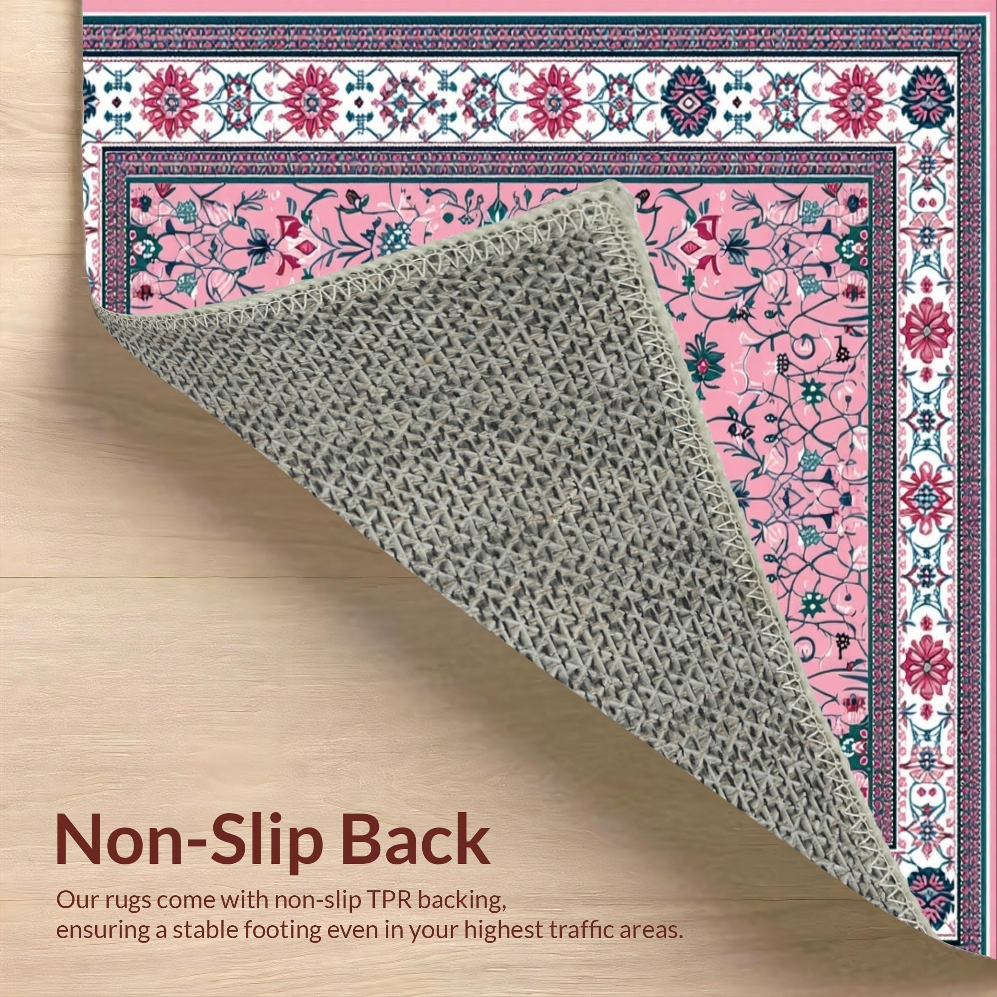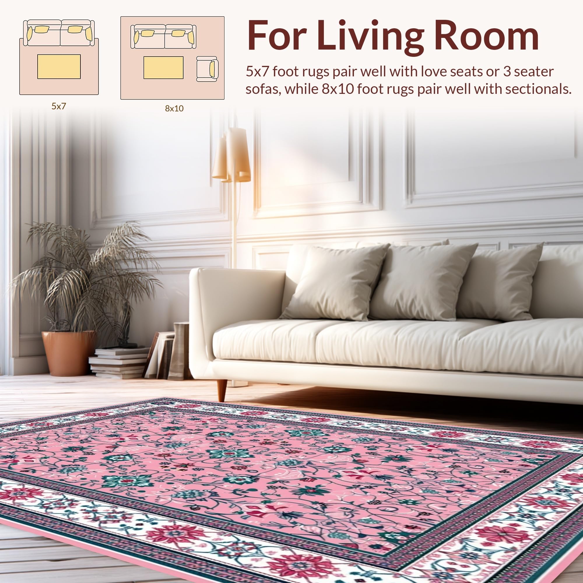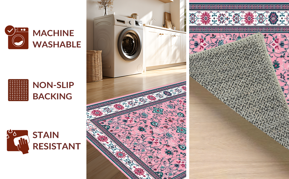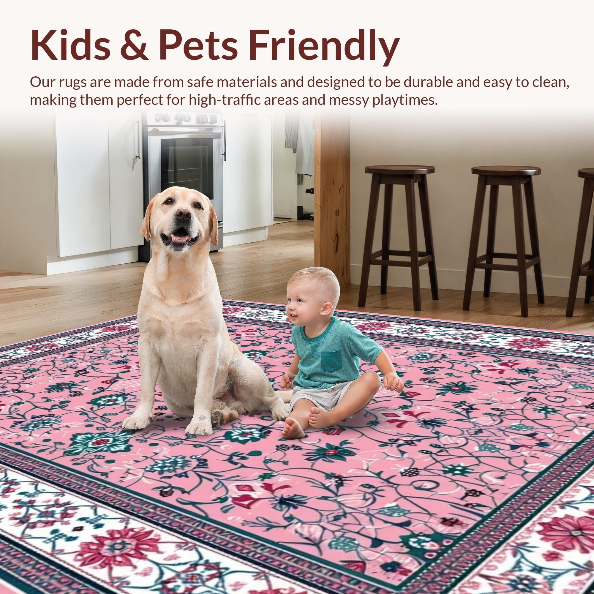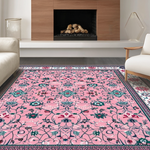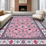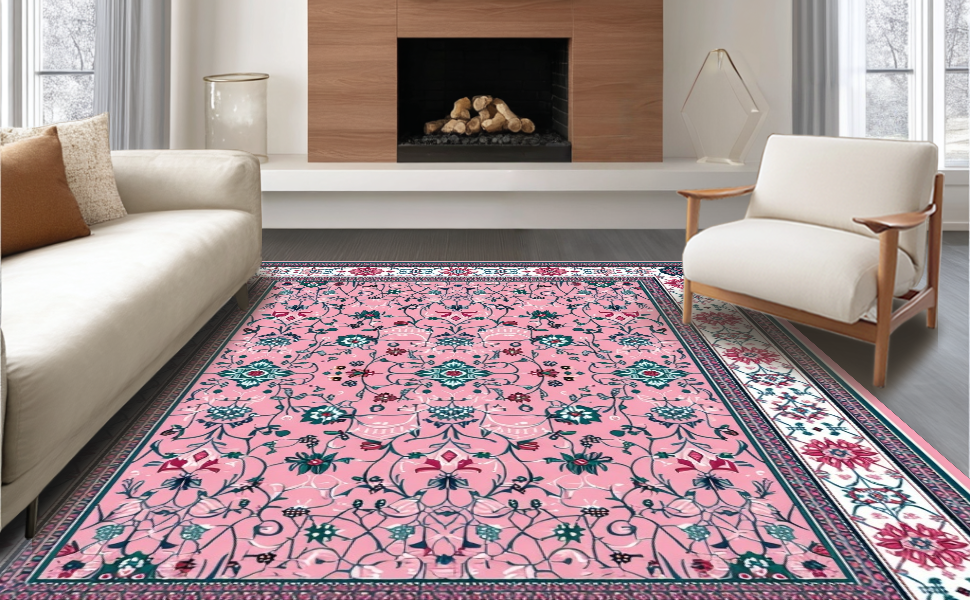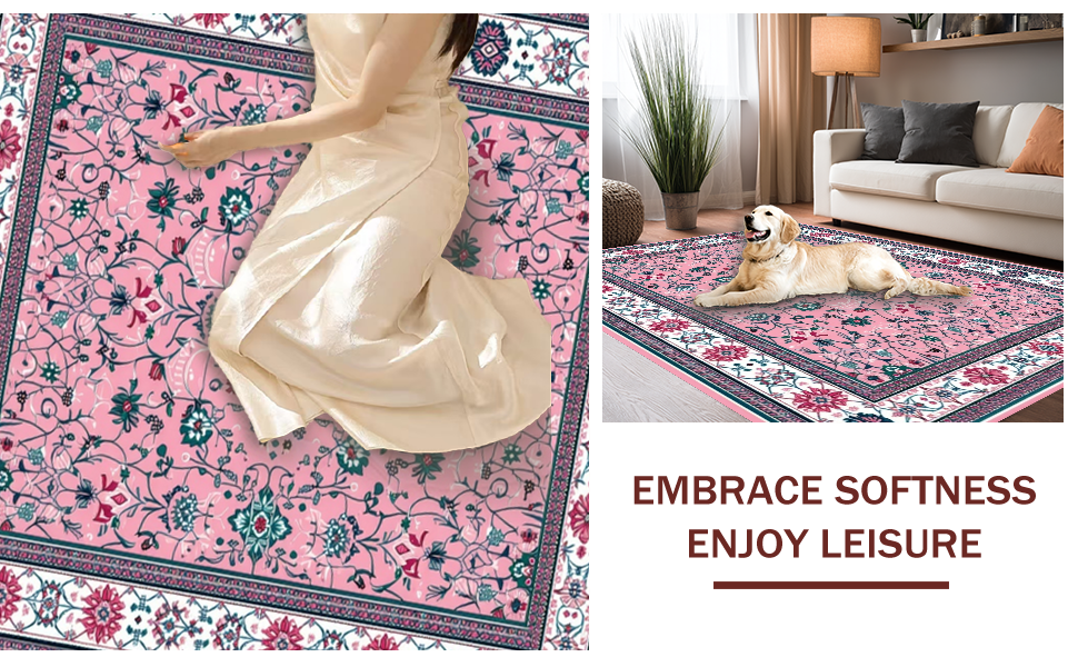 Ultra Soft Area Rug, Non Slip, Stain Resistant, Washable Area Rugs for Living Room, Bedroom, Luxurious Black and Floral Fusion(Pink) Overview: