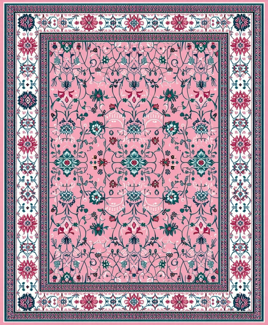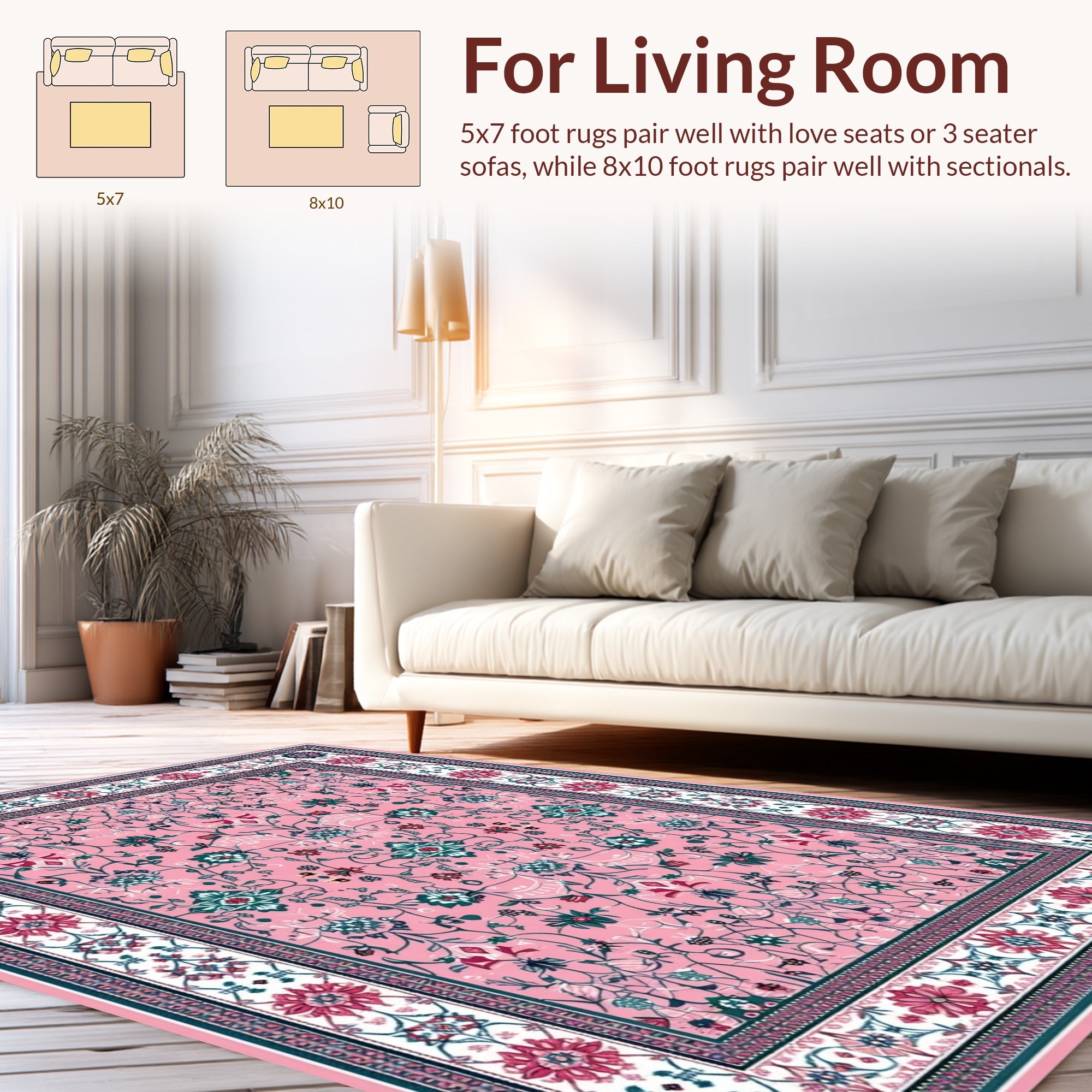 Flatwoven High Traffic Area Rug, Luxurious Black and Floral, Non Slip, Stain Resistant, Washable Area Rugs for Living Room, Bedroom (Pink) Overview: