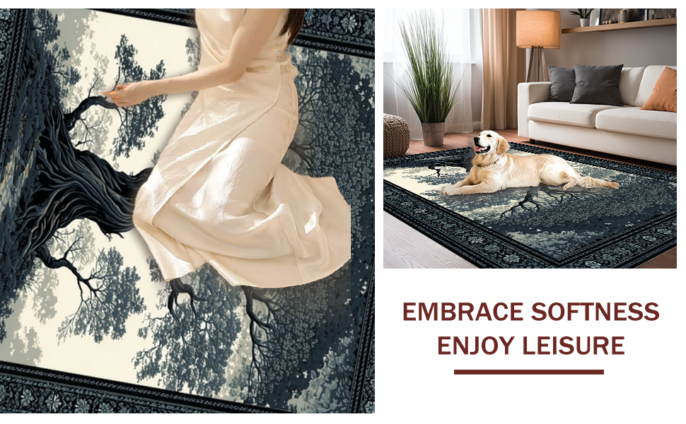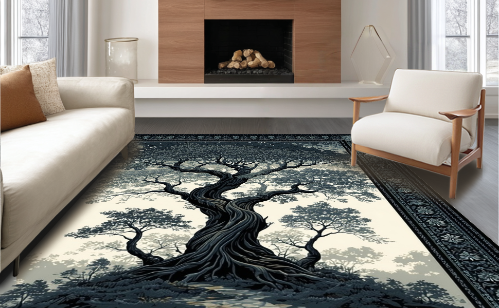 Ultra Soft Area Rug, Non Slip, Stain Resistant, Washable Area Rugs for Living Room, Bedroom, Luxurious Black and Grey Tapestry(Gray) Overview: