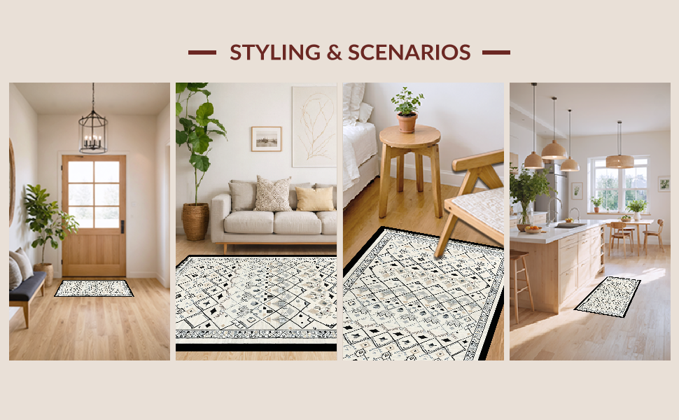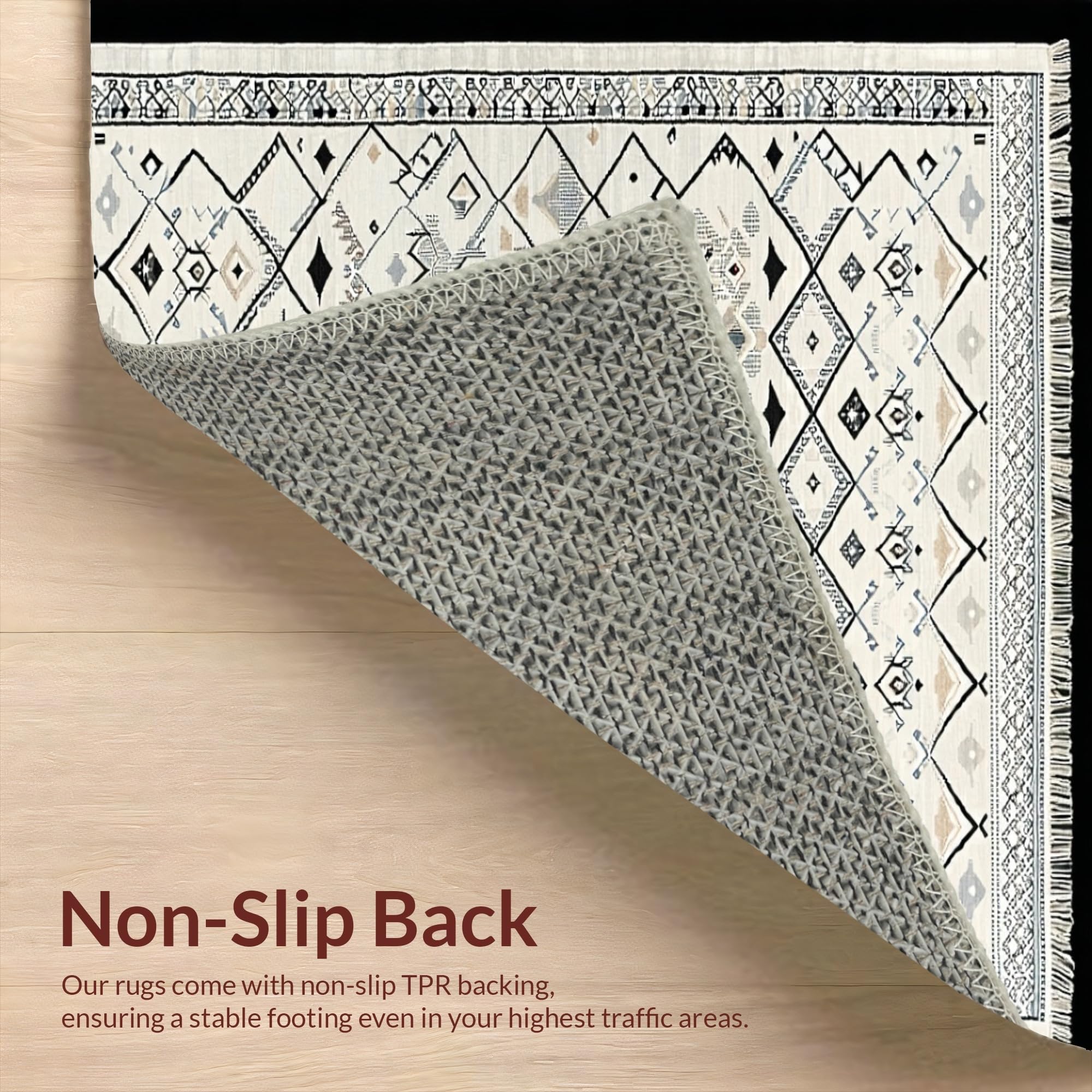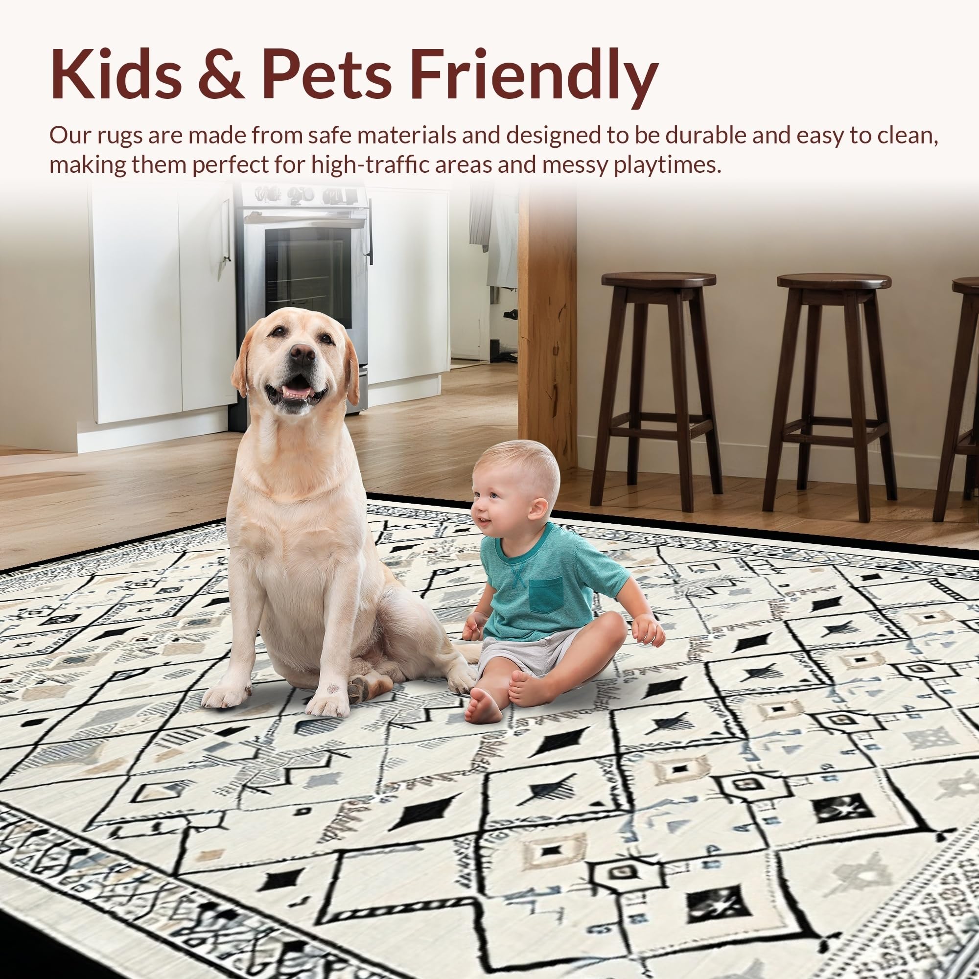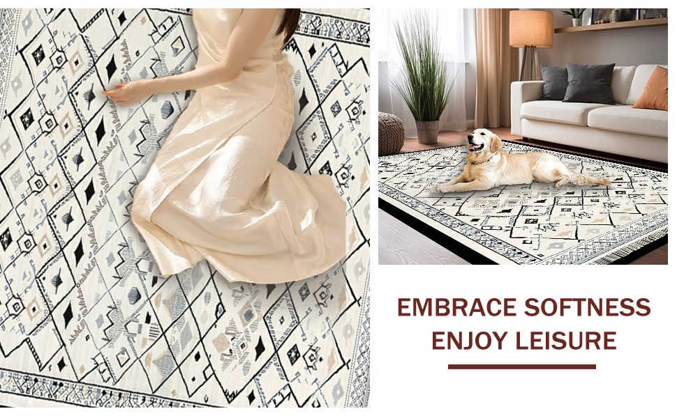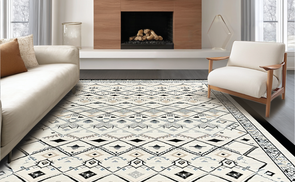 Ultra Soft Area Rug, Non Slip, Stain Resistant, Washable Area Rugs for Living Room, Bedroom, Luxurious Black and Ivory Textures(Beige) Overview: