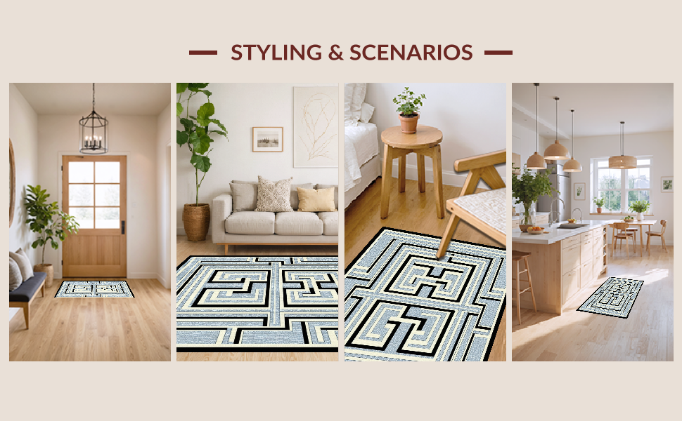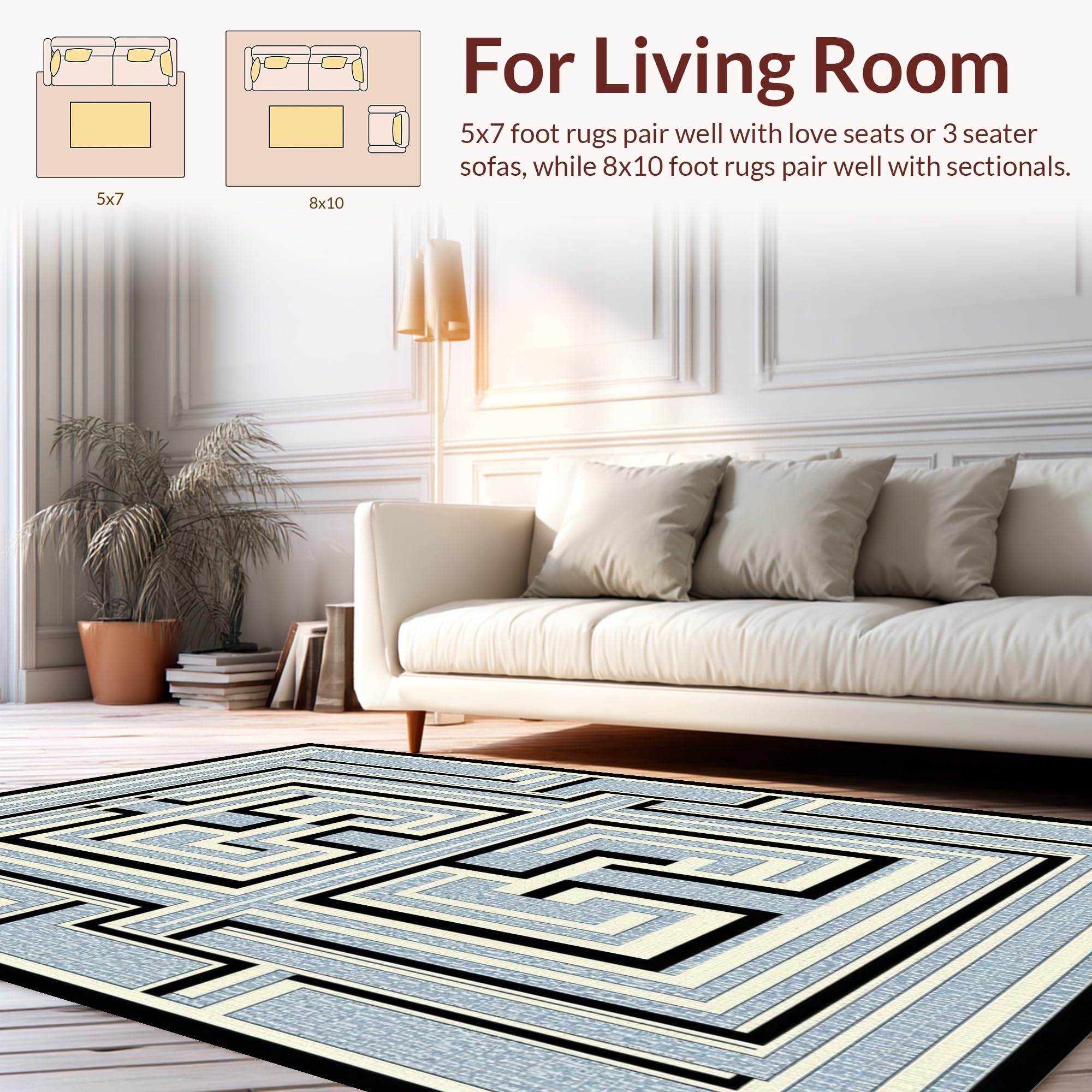Ultra Soft Area Rug, Non Slip, Stain Resistant, Washable Area Rugs for Living Room, Bedroom, Luxurious Black and Ivory Trellis Style(Beige) Overview: