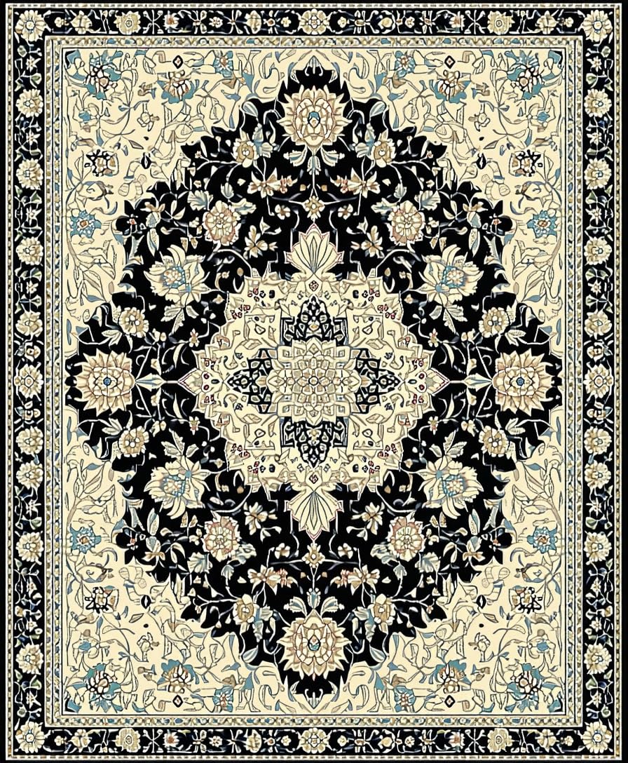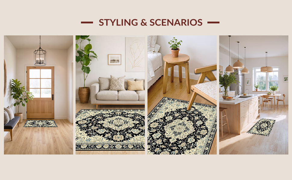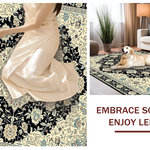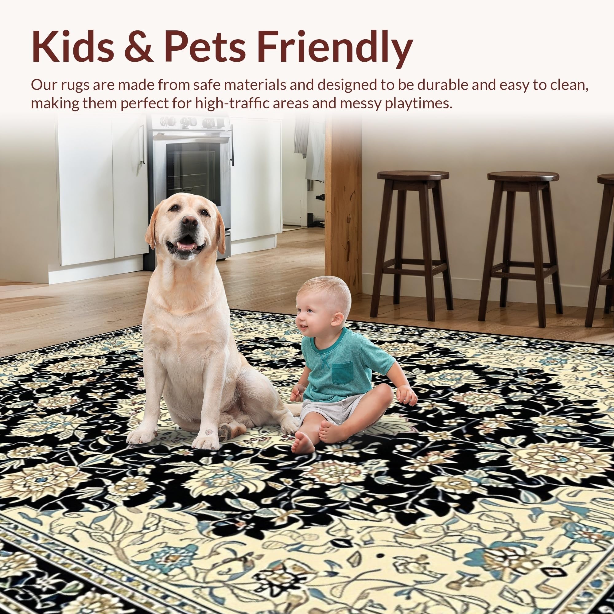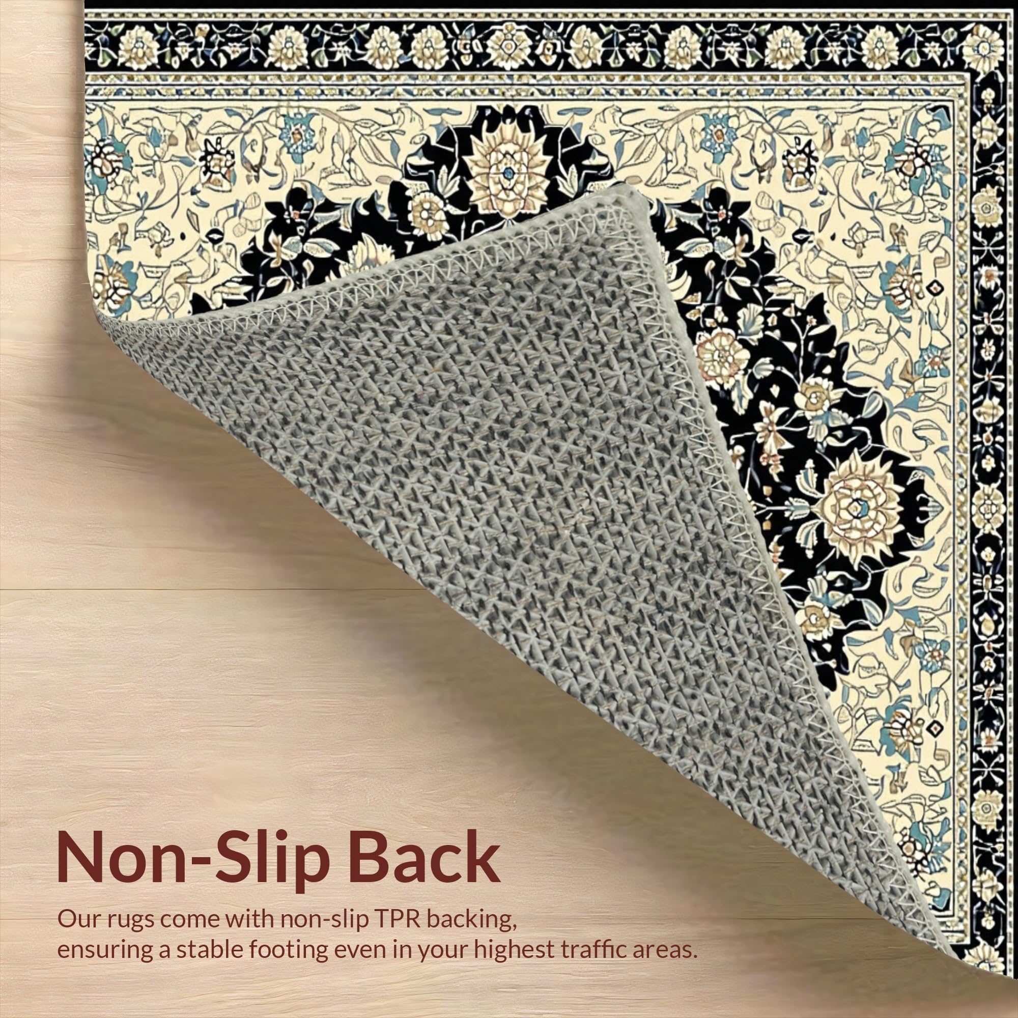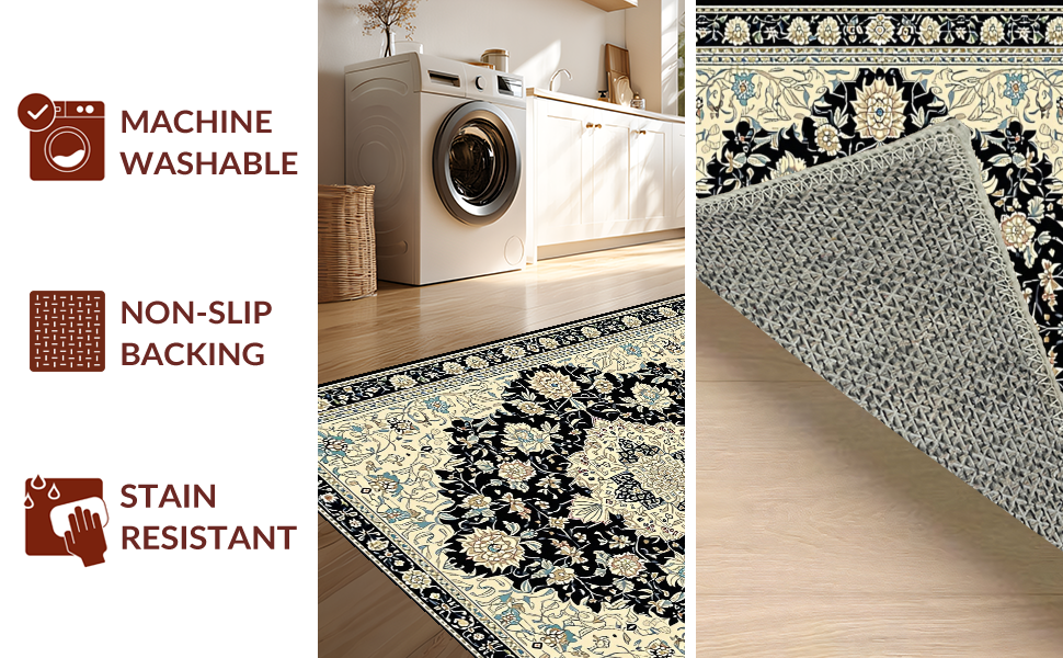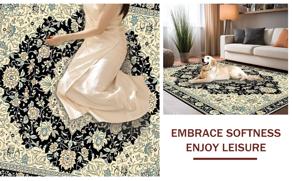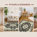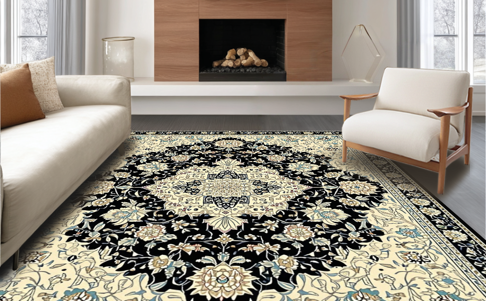 Ultra Soft Area Rug, Non Slip, Stain Resistant, Washable Area Rugs for Living Room, Bedroom, Luxurious Black Beige Medallion(Ivory) Overview: