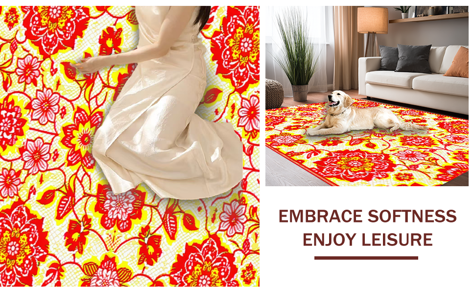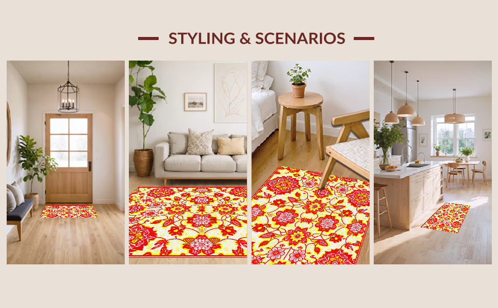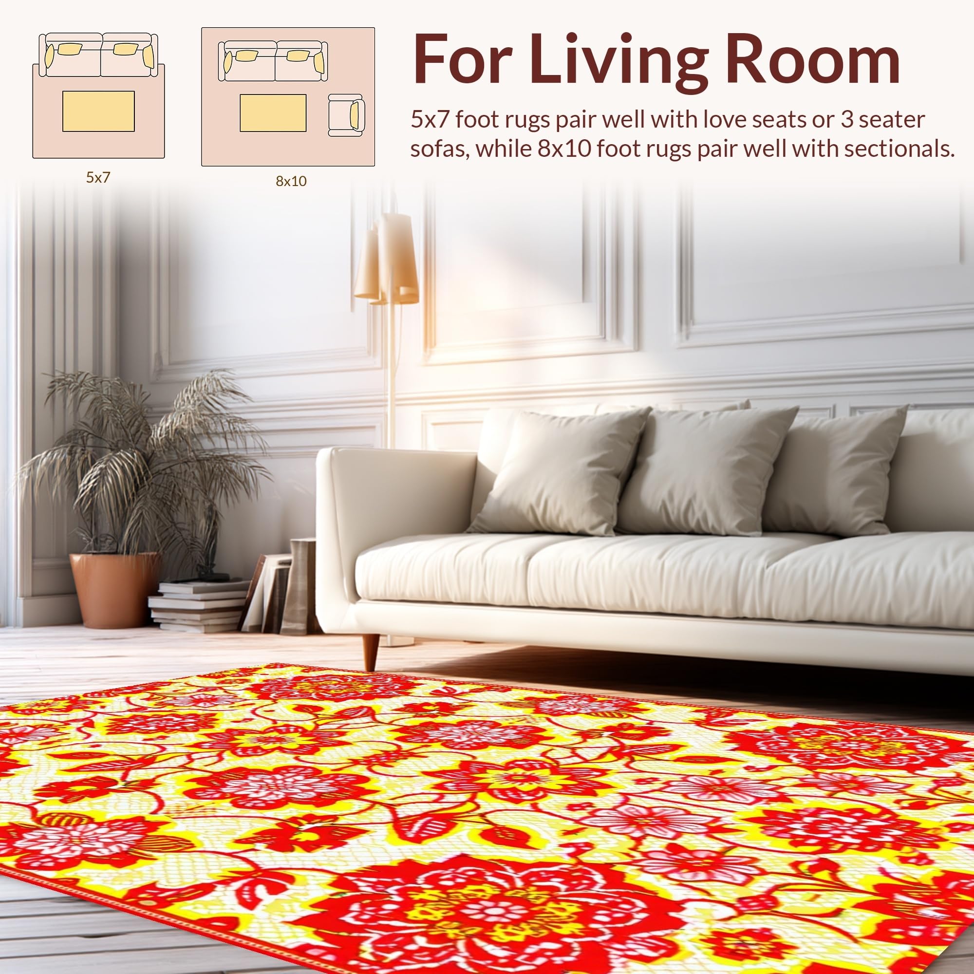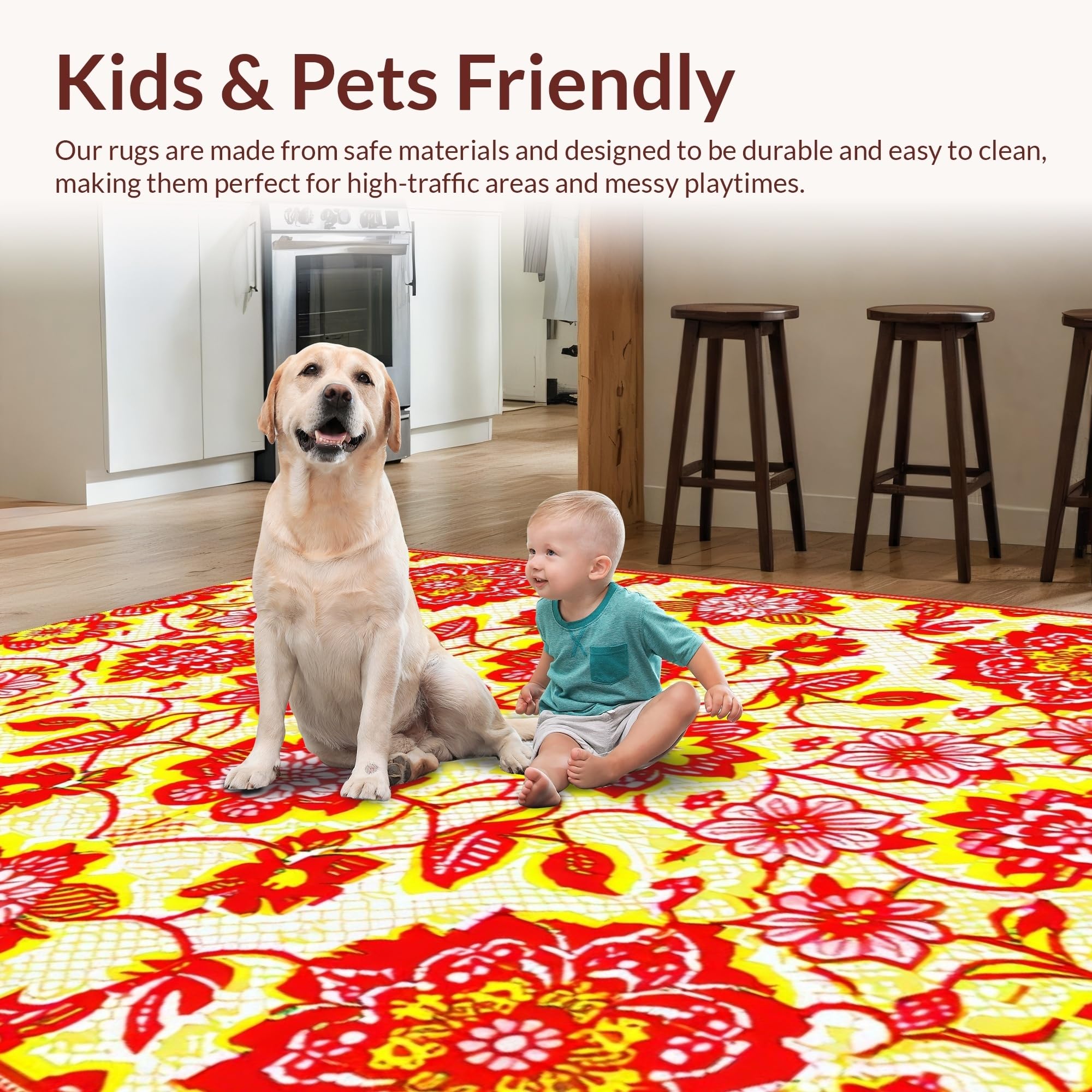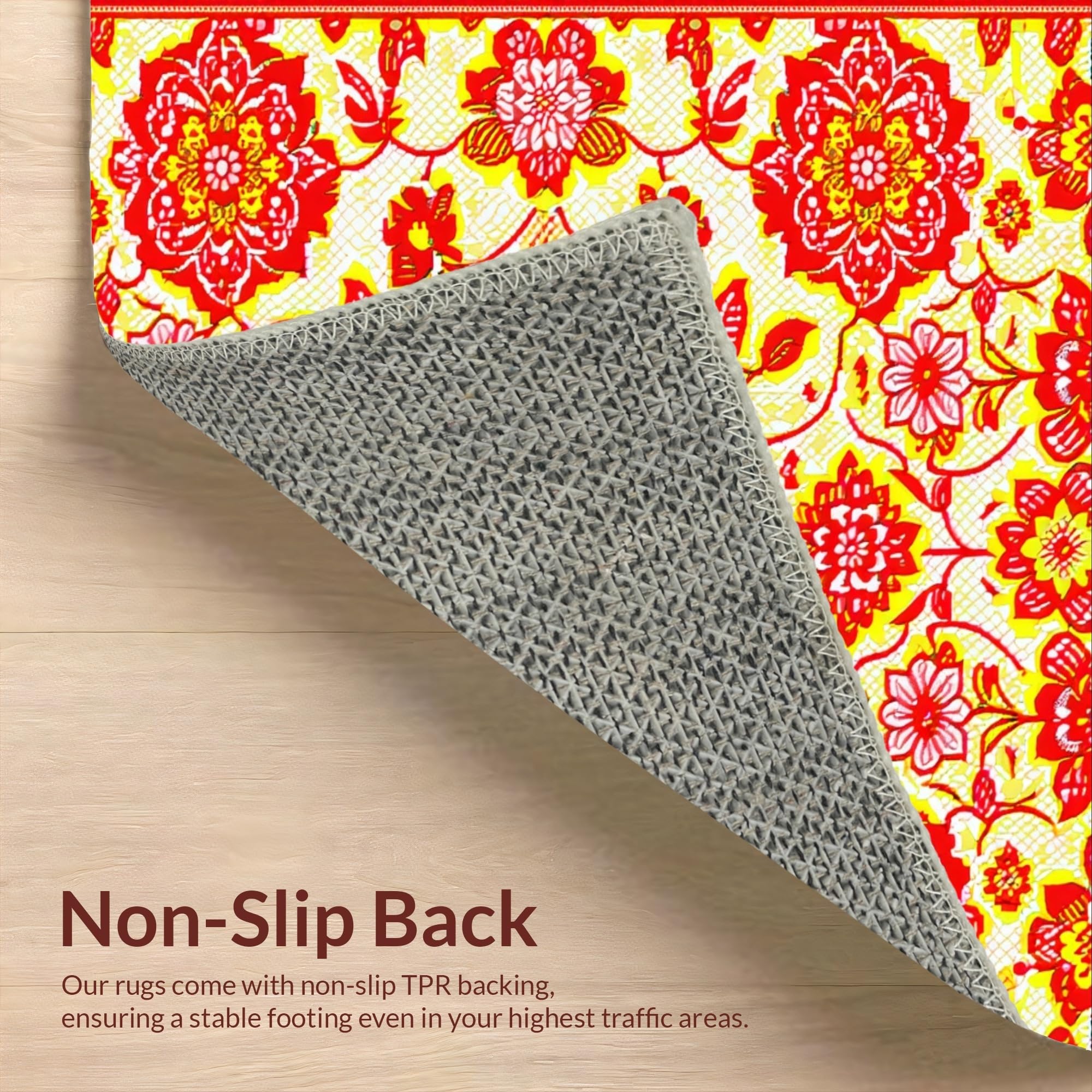 Ultra Soft Area Rug, Non Slip, Stain Resistant, Washable Area Rugs for Living Room, Bedroom, Luxurious Botanical Print for Entryways(Red) Overview: