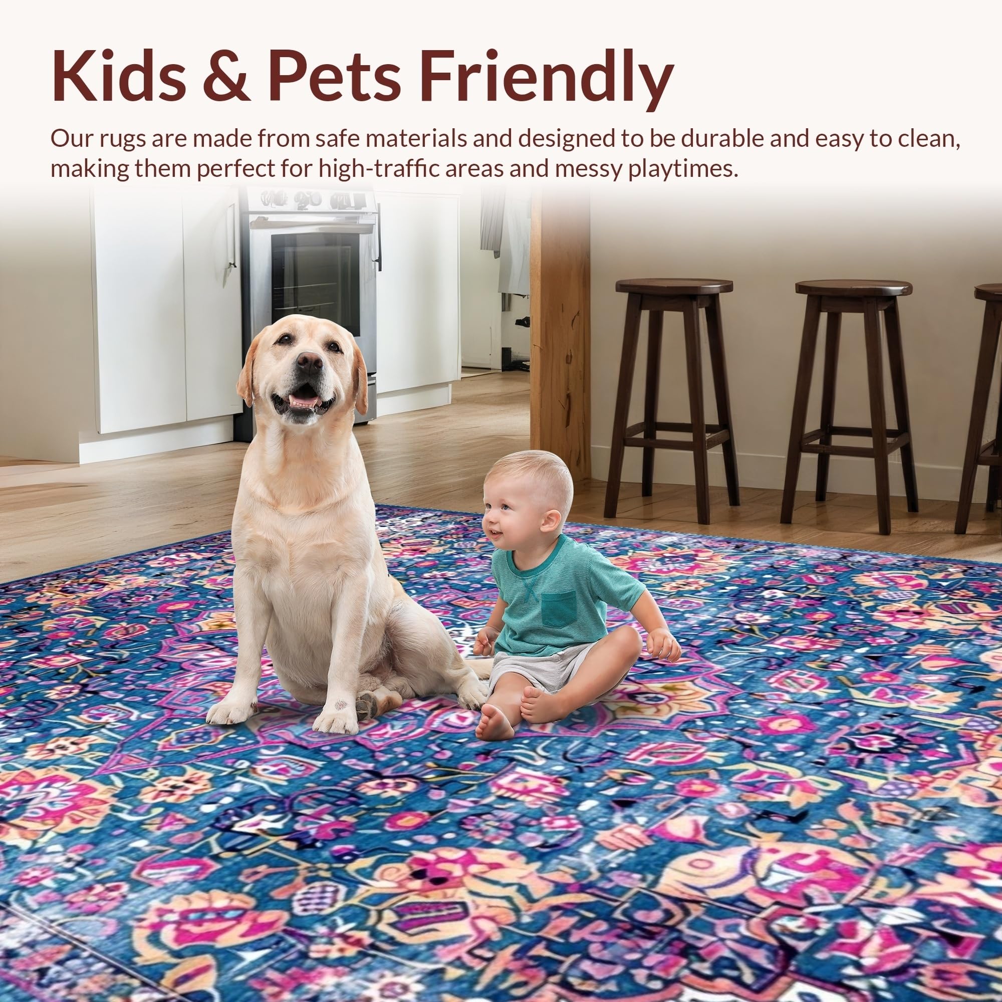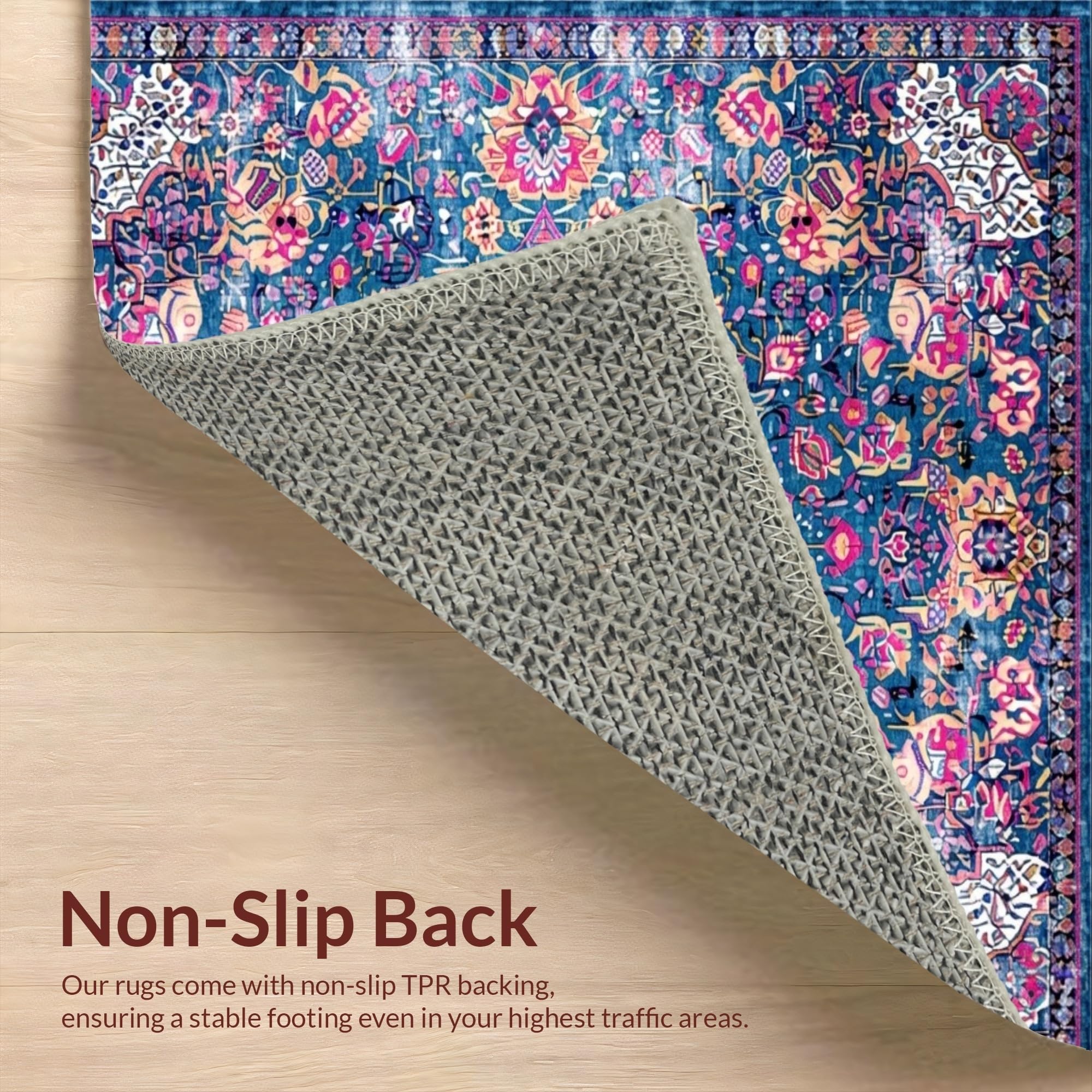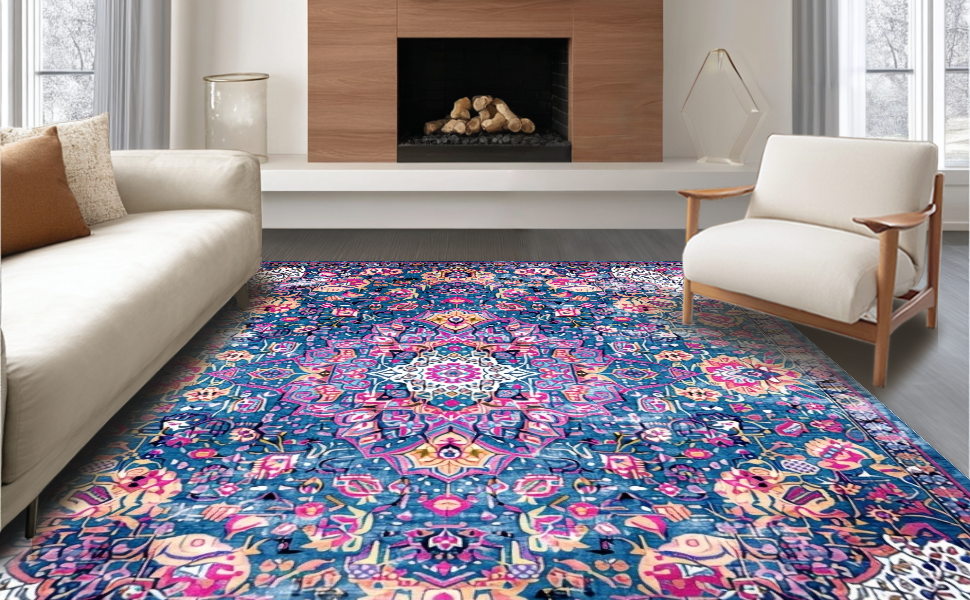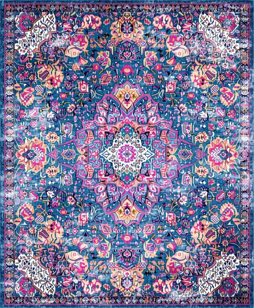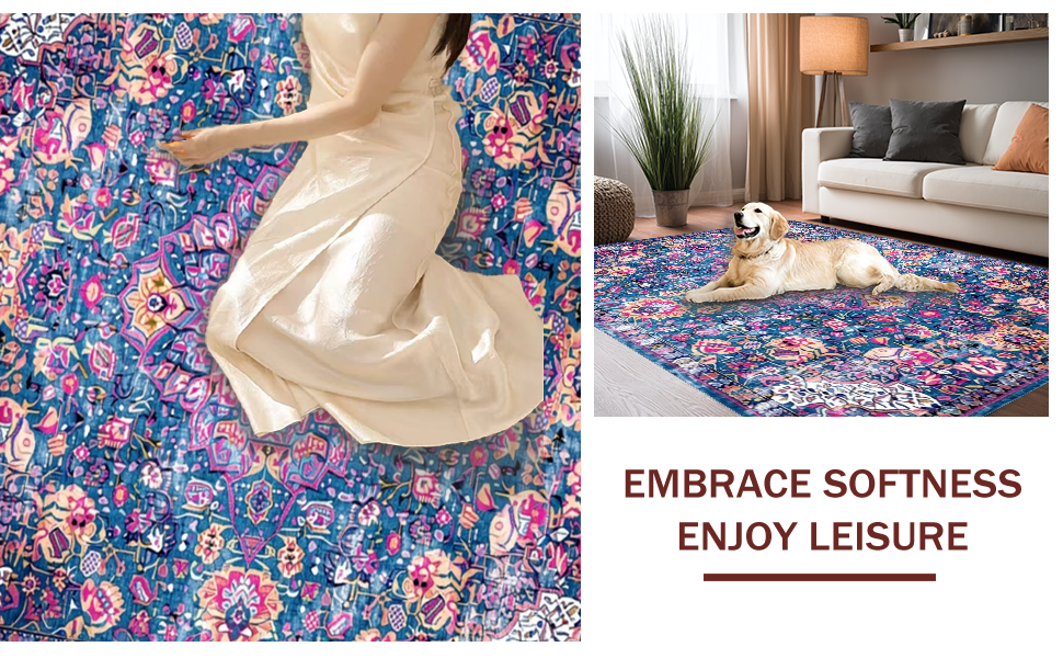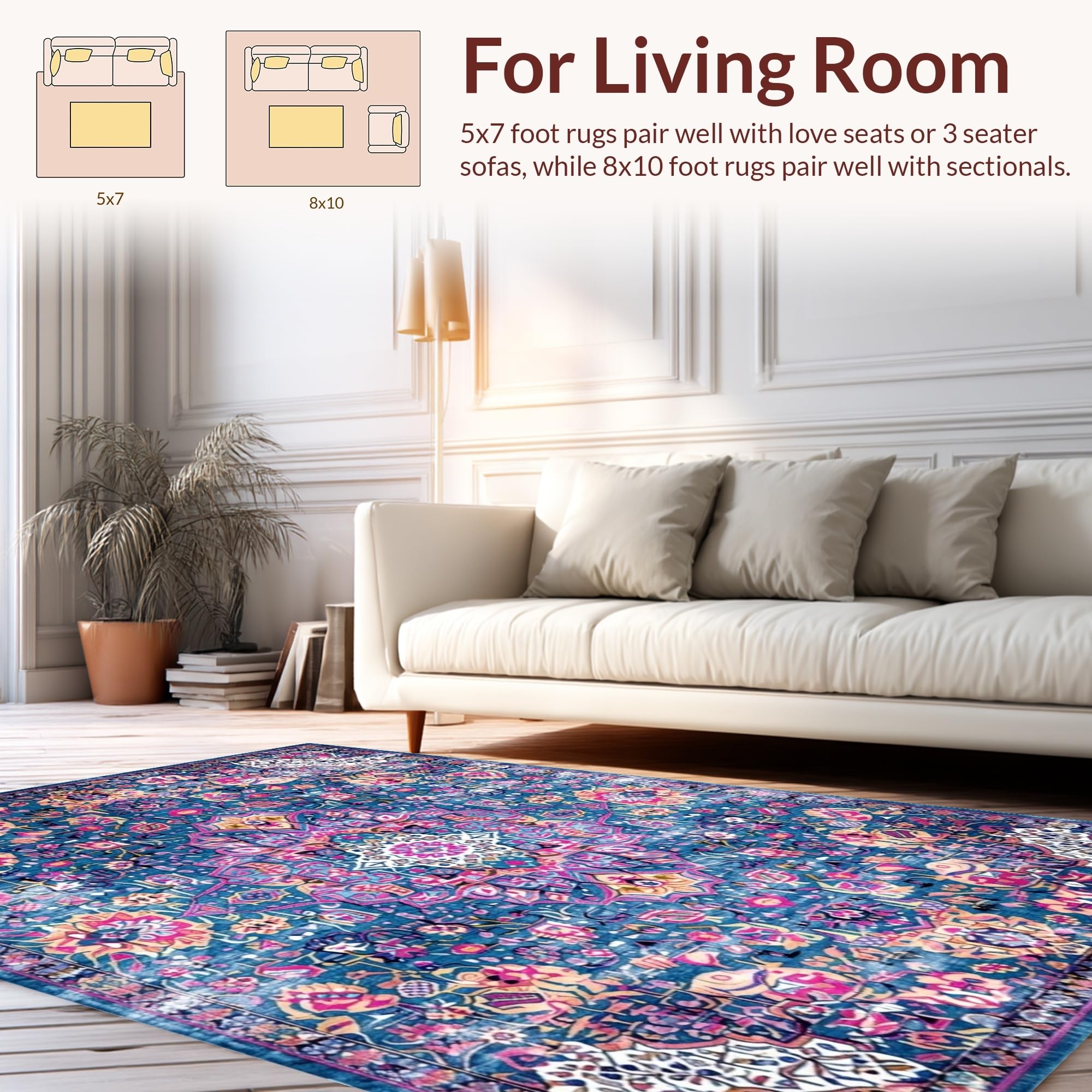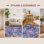 Ultra Soft Area Rug, Non Slip, Stain Resistant, Washable Area Rugs for Living Room, Bedroom, Luxurious Bright Floral Arrangement(Blue) Overview: