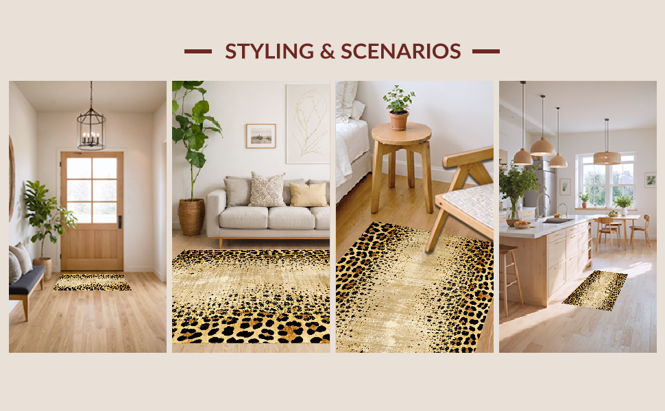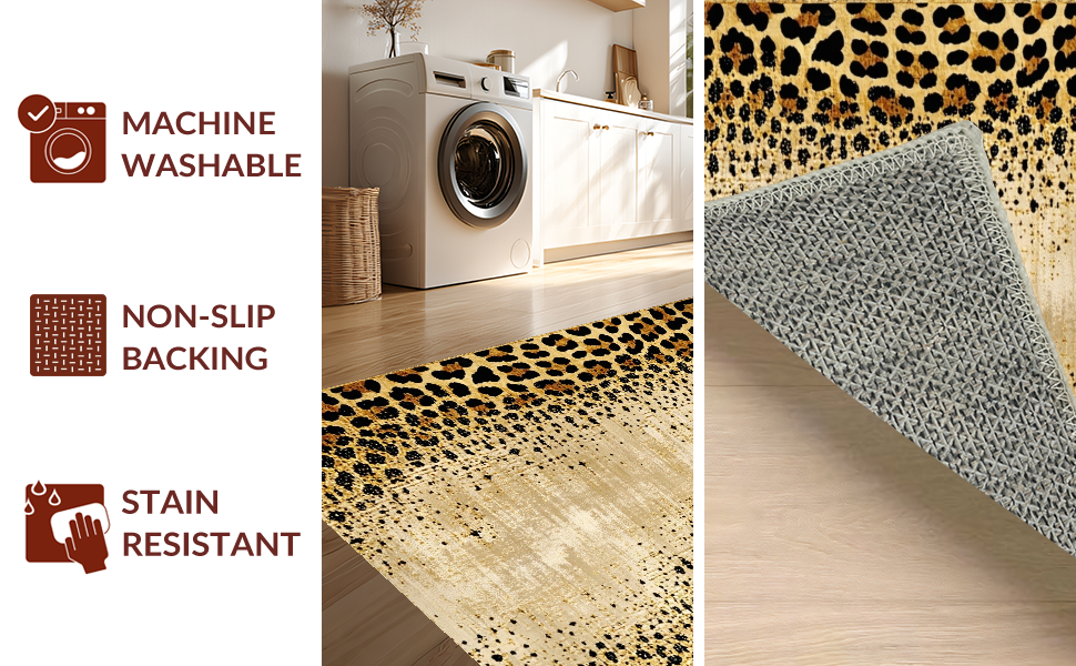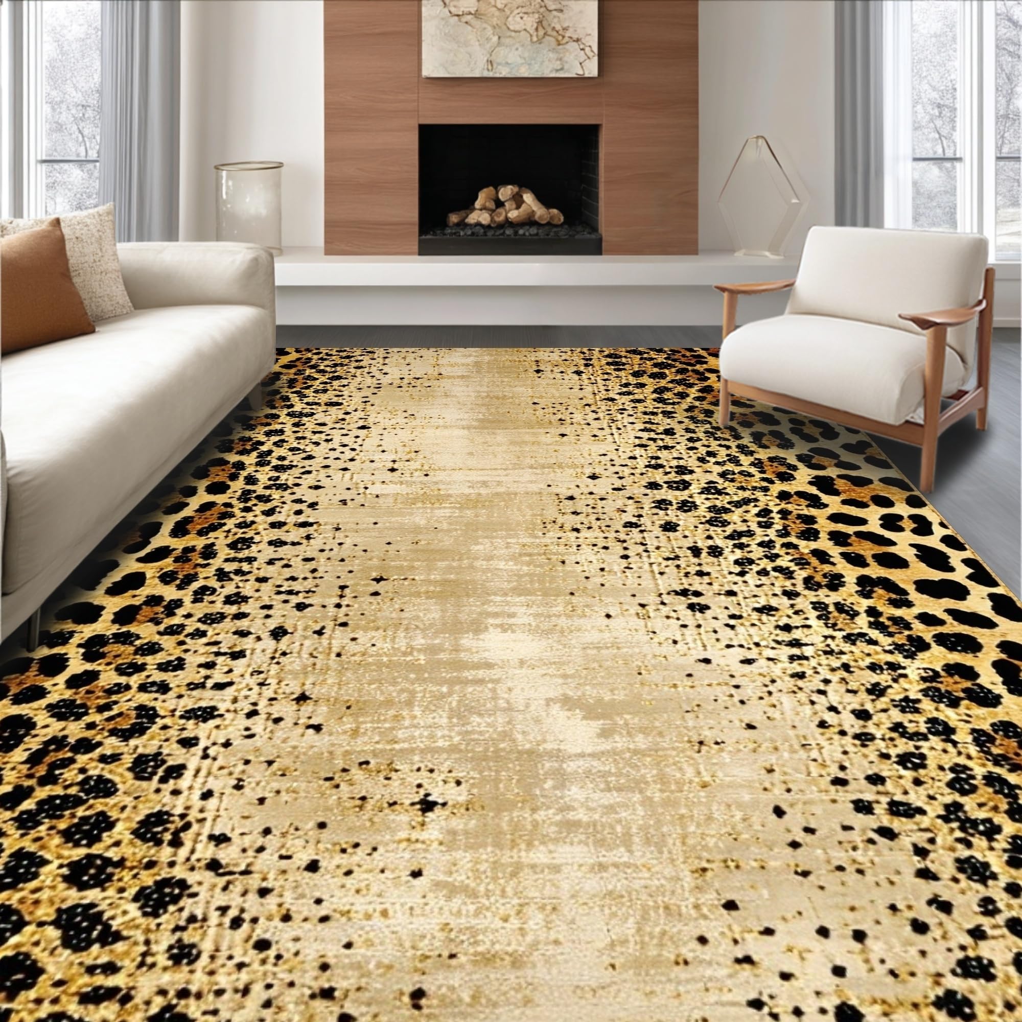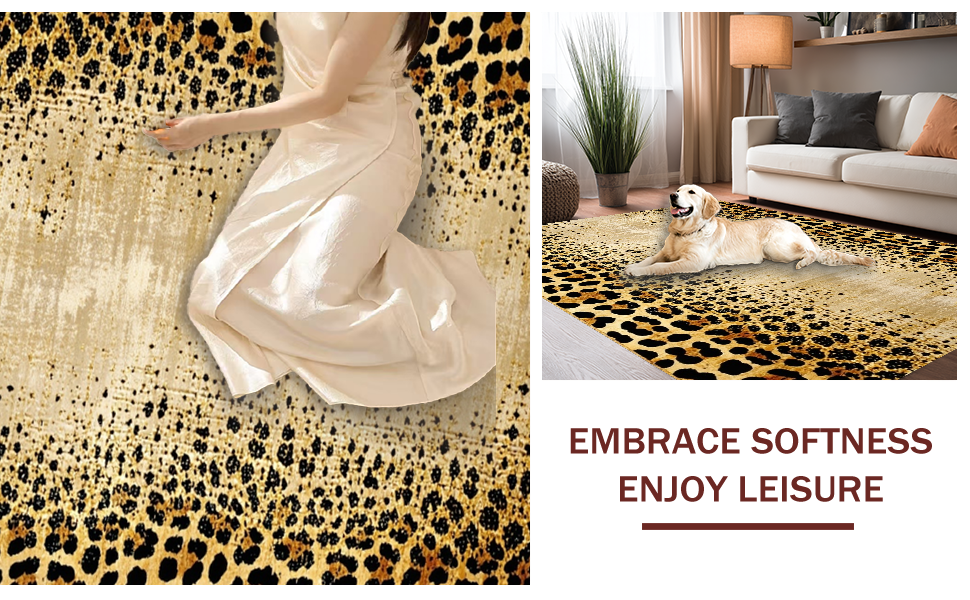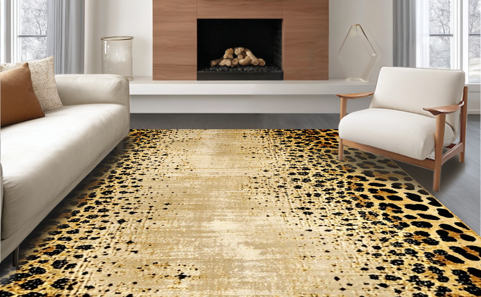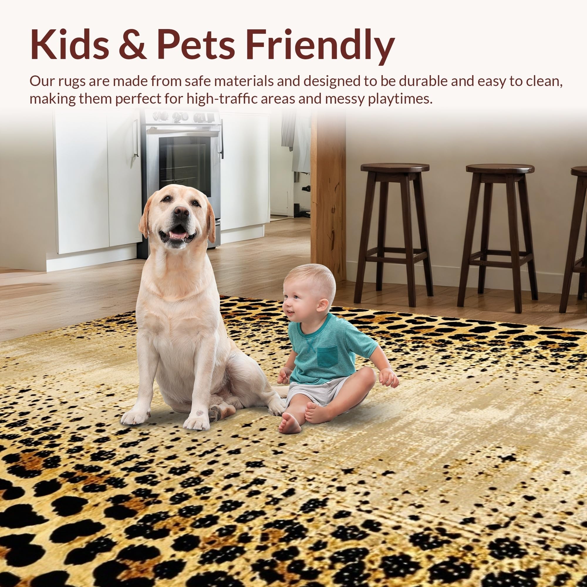 Ultra Soft Area Rug, Non Slip, Stain Resistant, Washable Area Rugs for Living Room, Bedroom, Luxurious Brown Leopard Aesthetic(Beige) Overview: