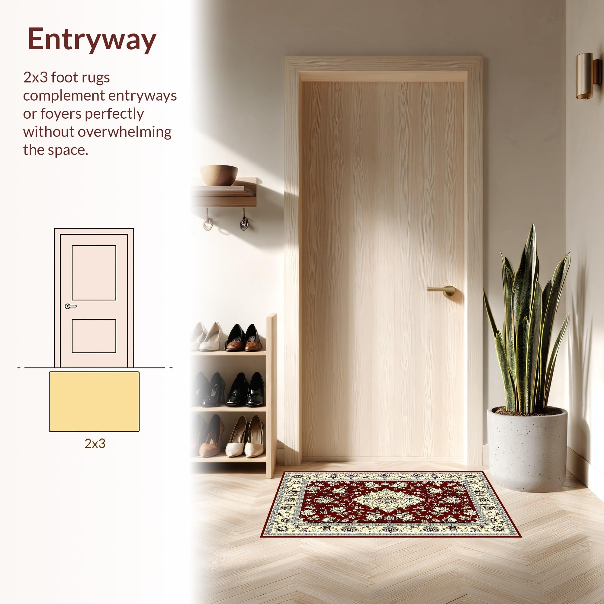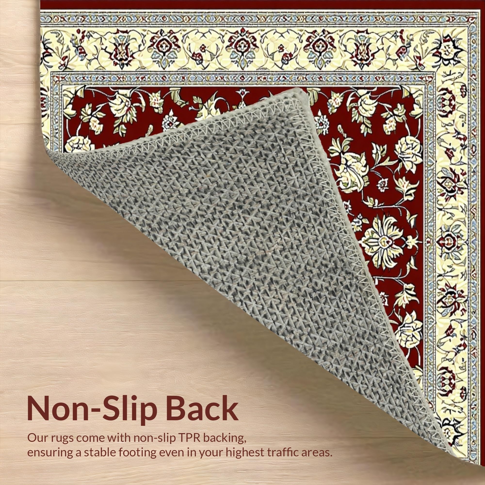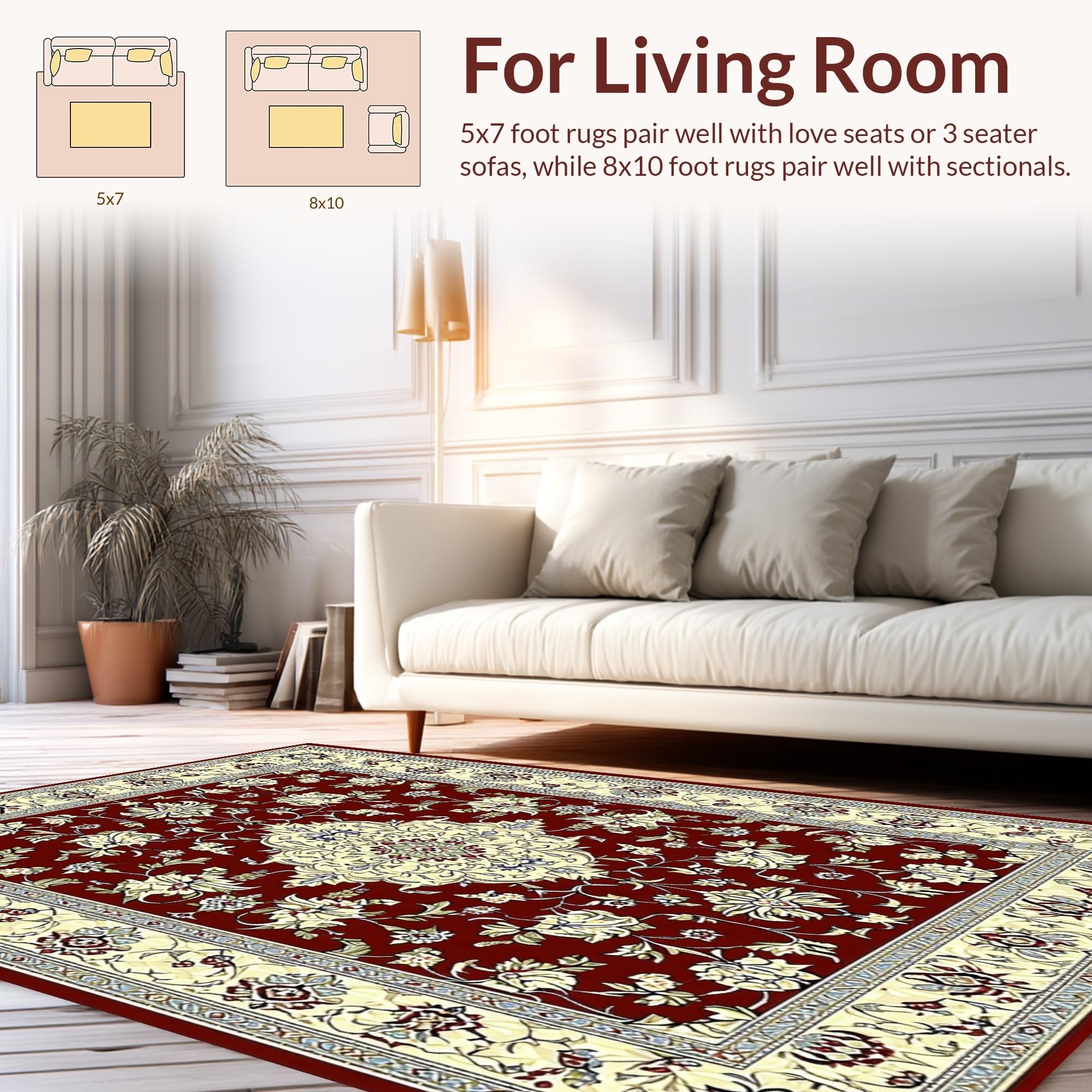 Ultra Soft Area Rug, Non Slip, Stain Resistant, Washable Area Rugs for Living Room, Bedroom, Luxurious Burgundy and Ivory Motif(Red) Overview: