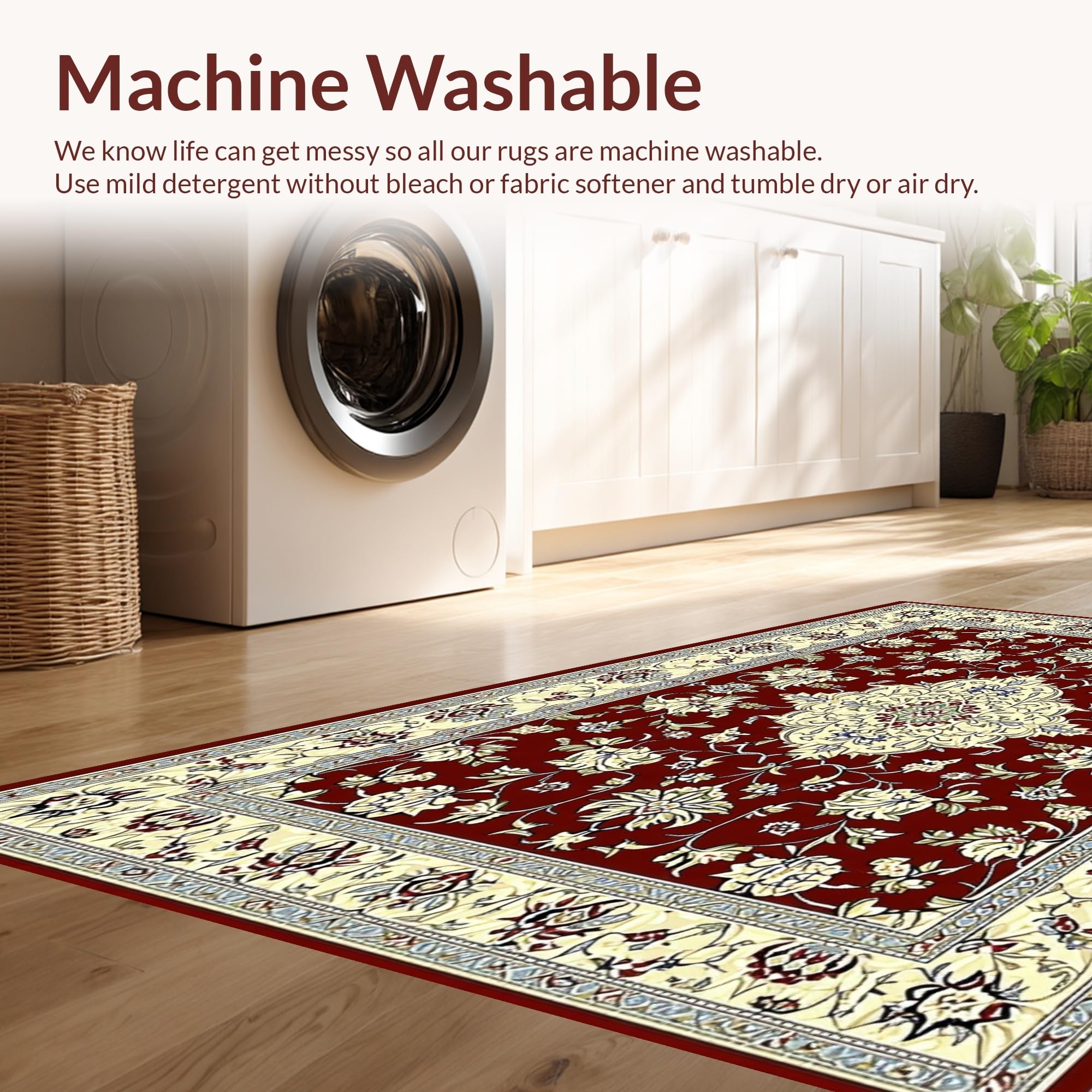 - Machine Washable: Our rugs can be easily thrown in the wash machine.