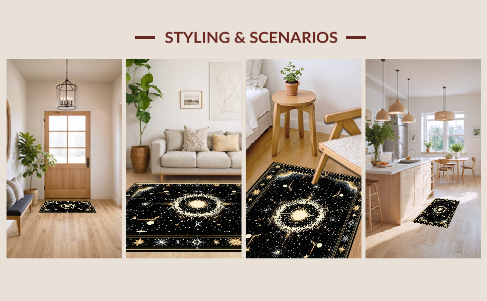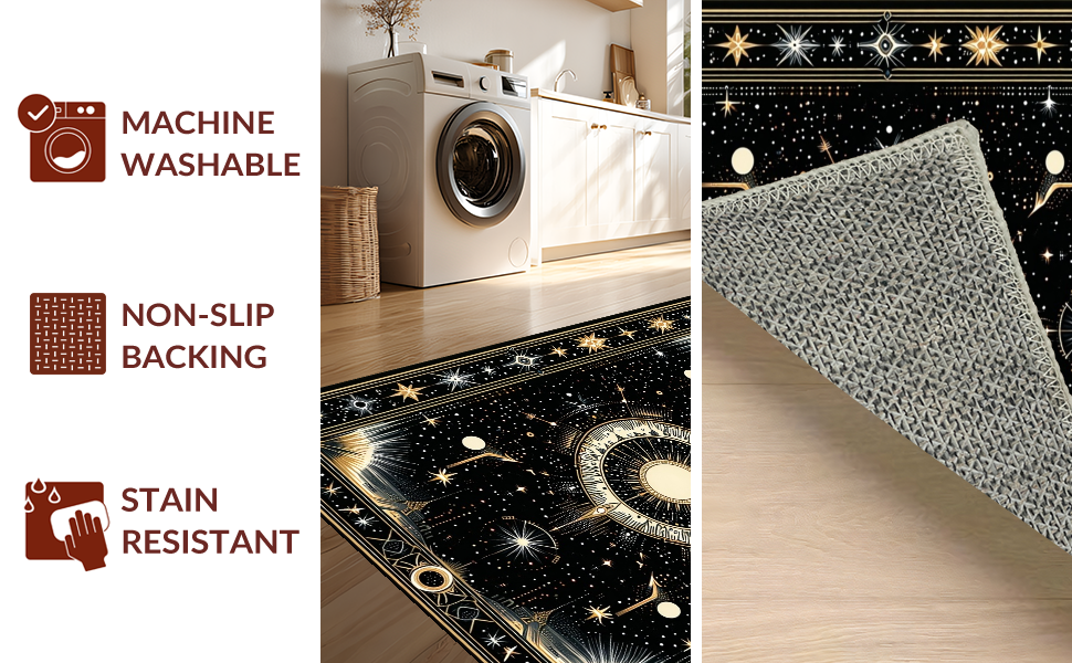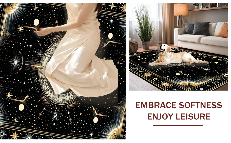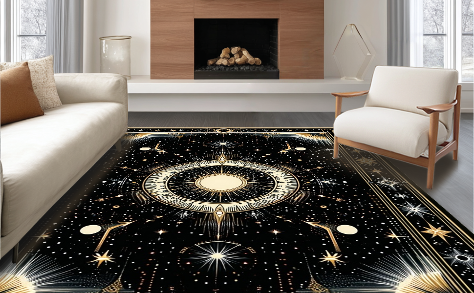 Ultra Soft Area Rug, Non Slip, Stain Resistant, Washable Area Rugs for Living Room, Bedroom, Luxurious Celestial Diamond Arrangement(Black) Overview: