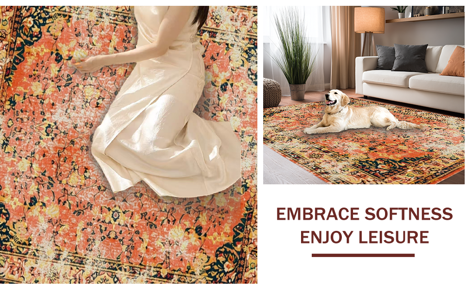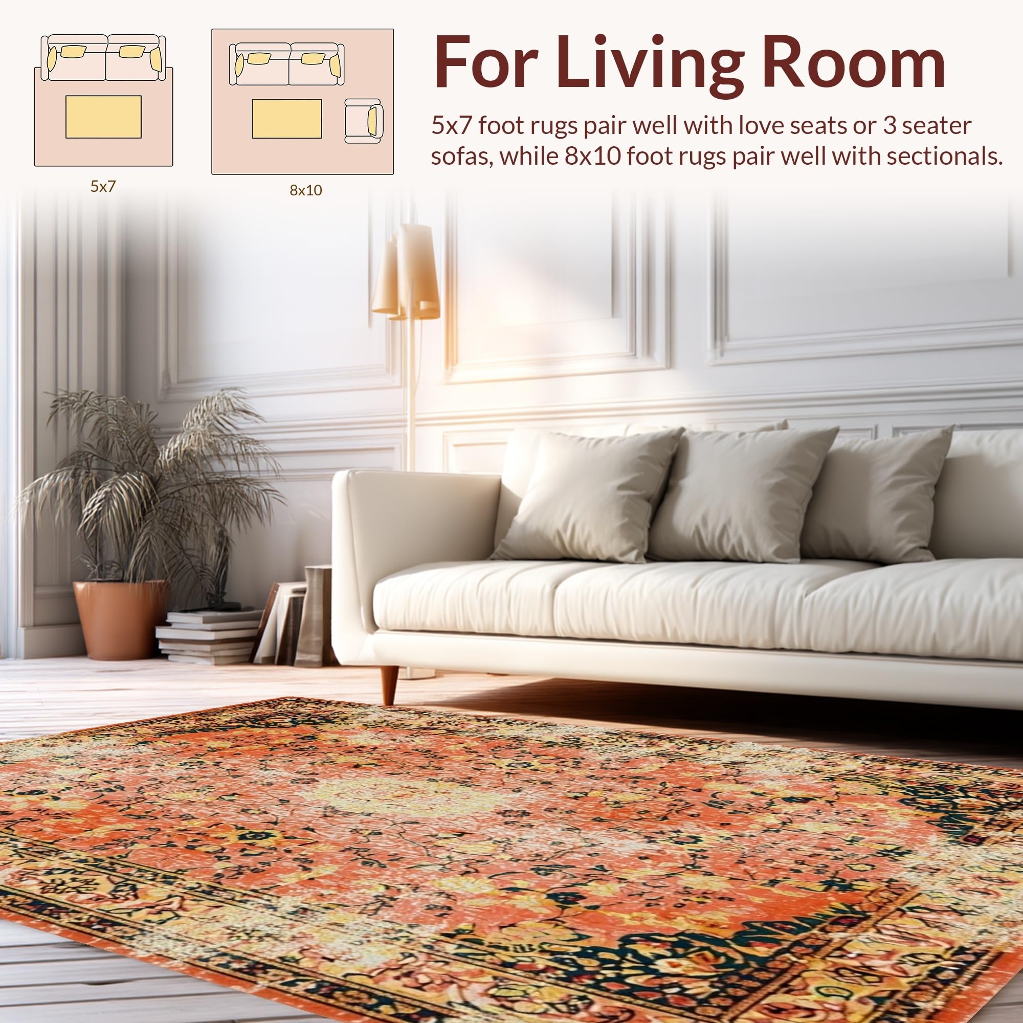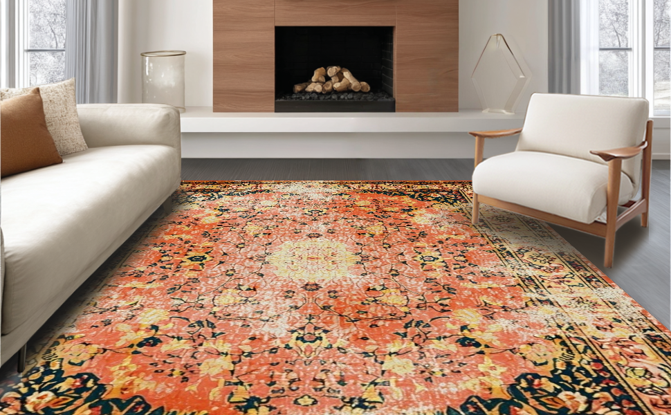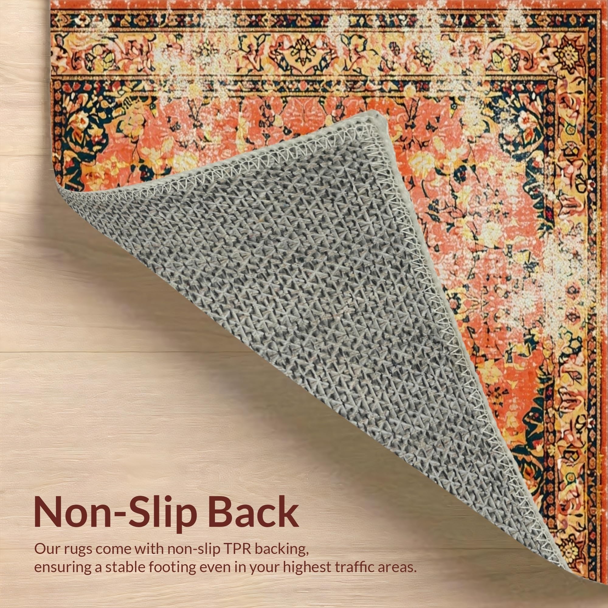 Ultra Soft Area Rug, Non Slip, Stain Resistant, Washable Area Rugs for Living Room, Bedroom, Luxurious Colorful Abstract Art(Orange) Overview: