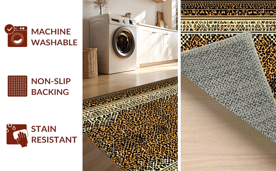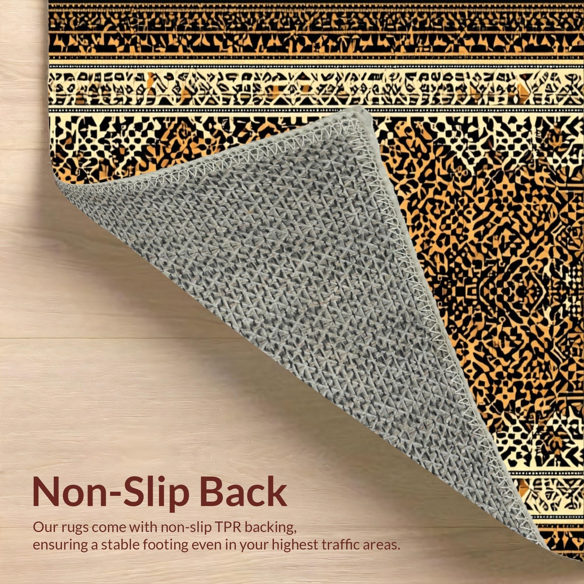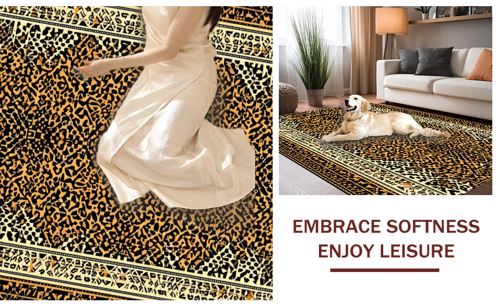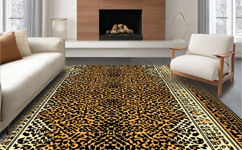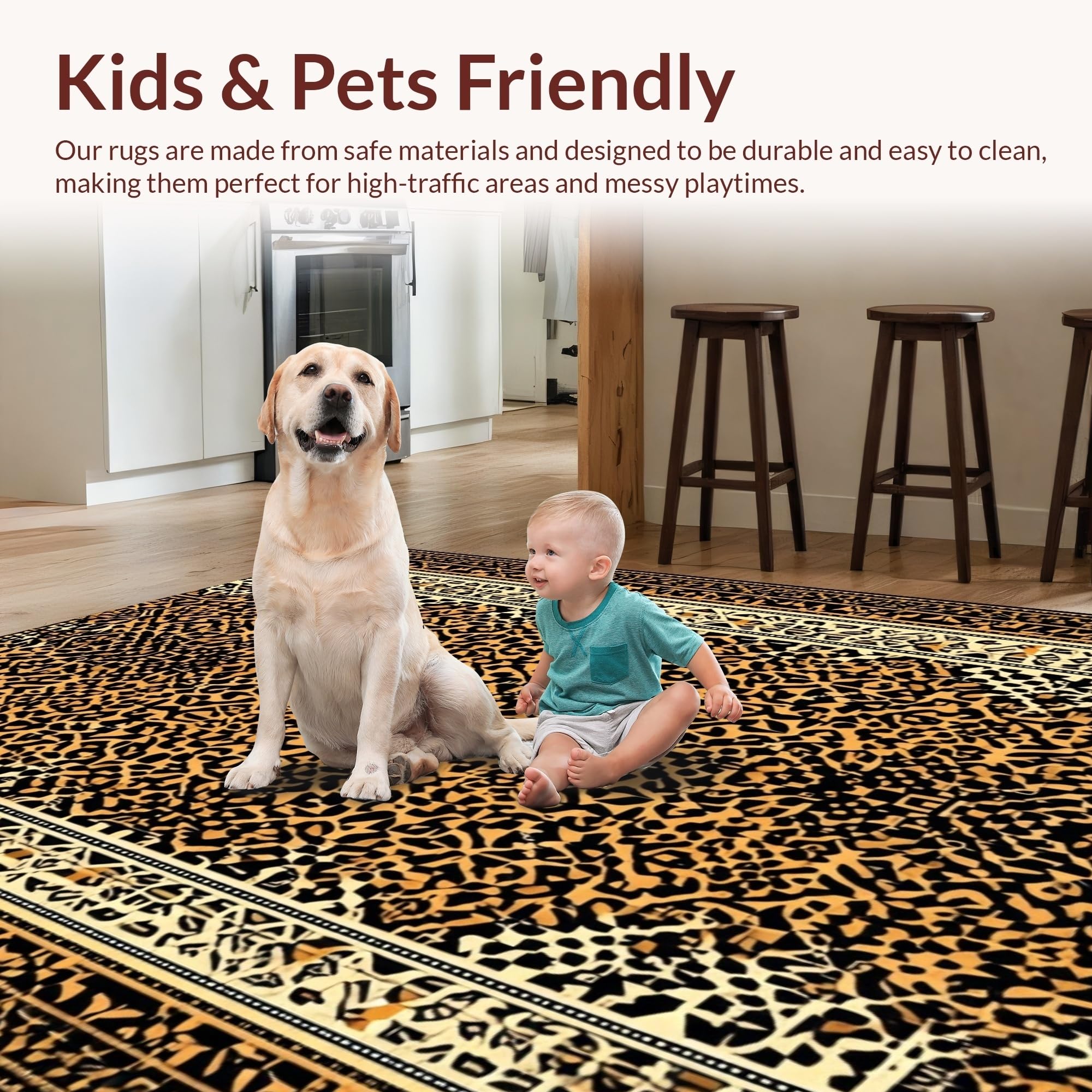 Ultra Soft Area Rug, Non Slip, Stain Resistant, Washable Area Rugs for Living Room, Bedroom, Luxurious Colorful Wild Print Design(Black) Overview: