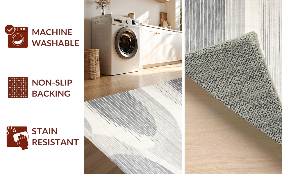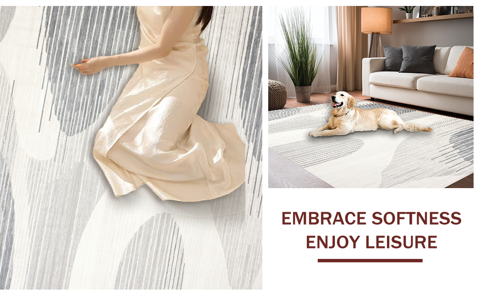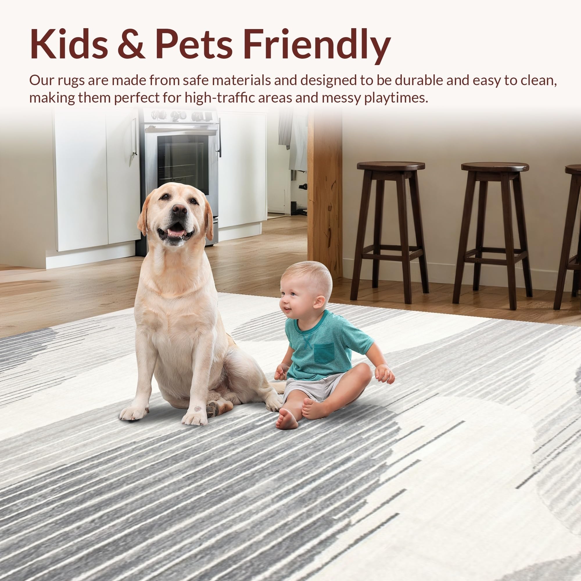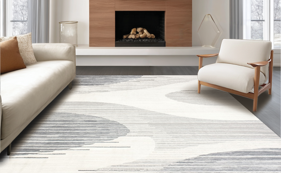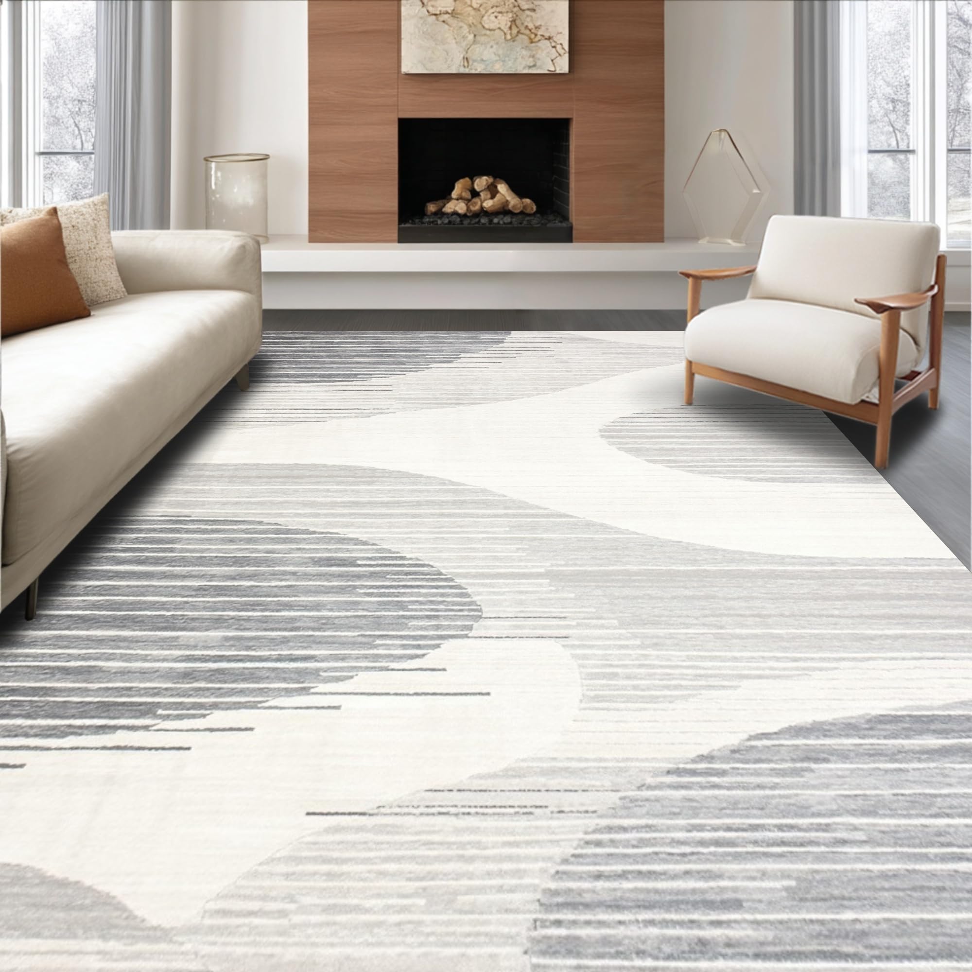 Ultra Soft Area Rug, Non Slip, Stain Resistant, Washable Area Rugs for Living Room, Bedroom, Luxurious Cream and Grey Flow(Gray) Overview: