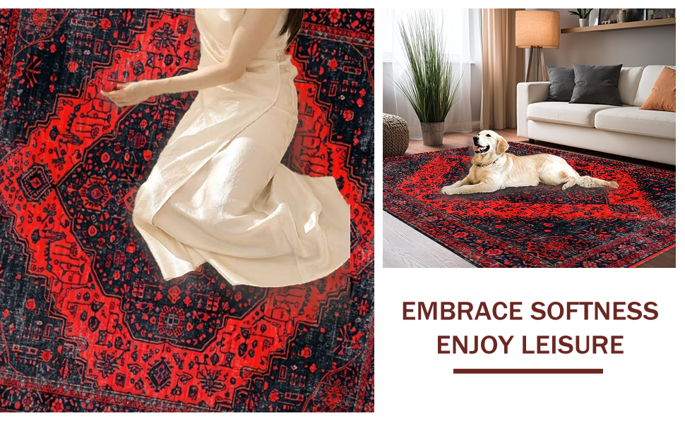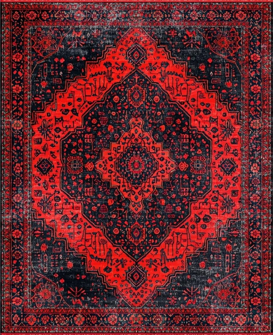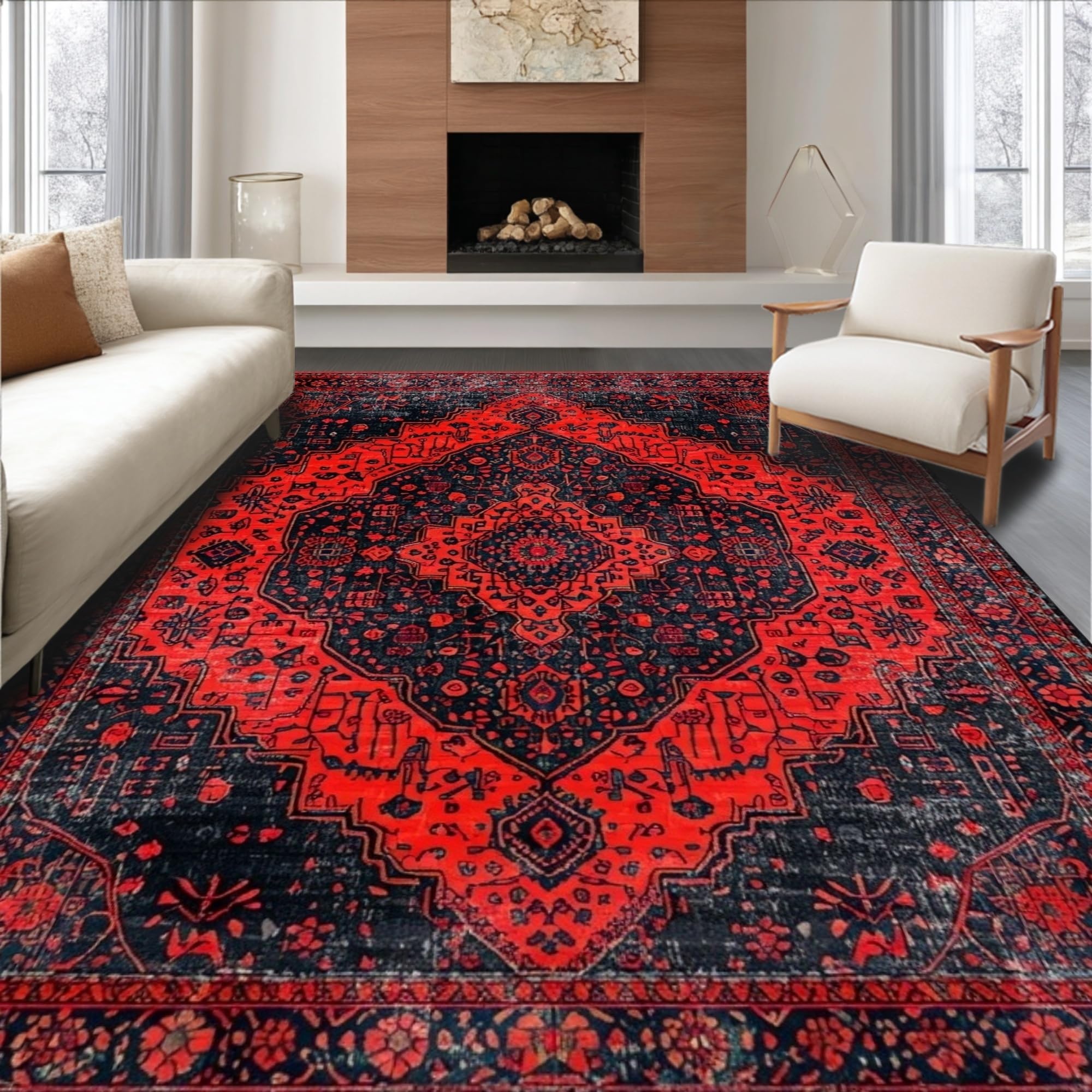 Ultra Soft Area Rug, Non Slip, Stain Resistant, Washable Area Rugs for Living Room, Bedroom, Luxurious Crimson Diamond Layout(Red) Overview: