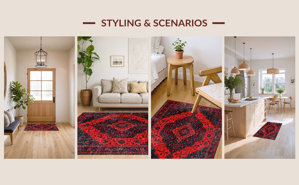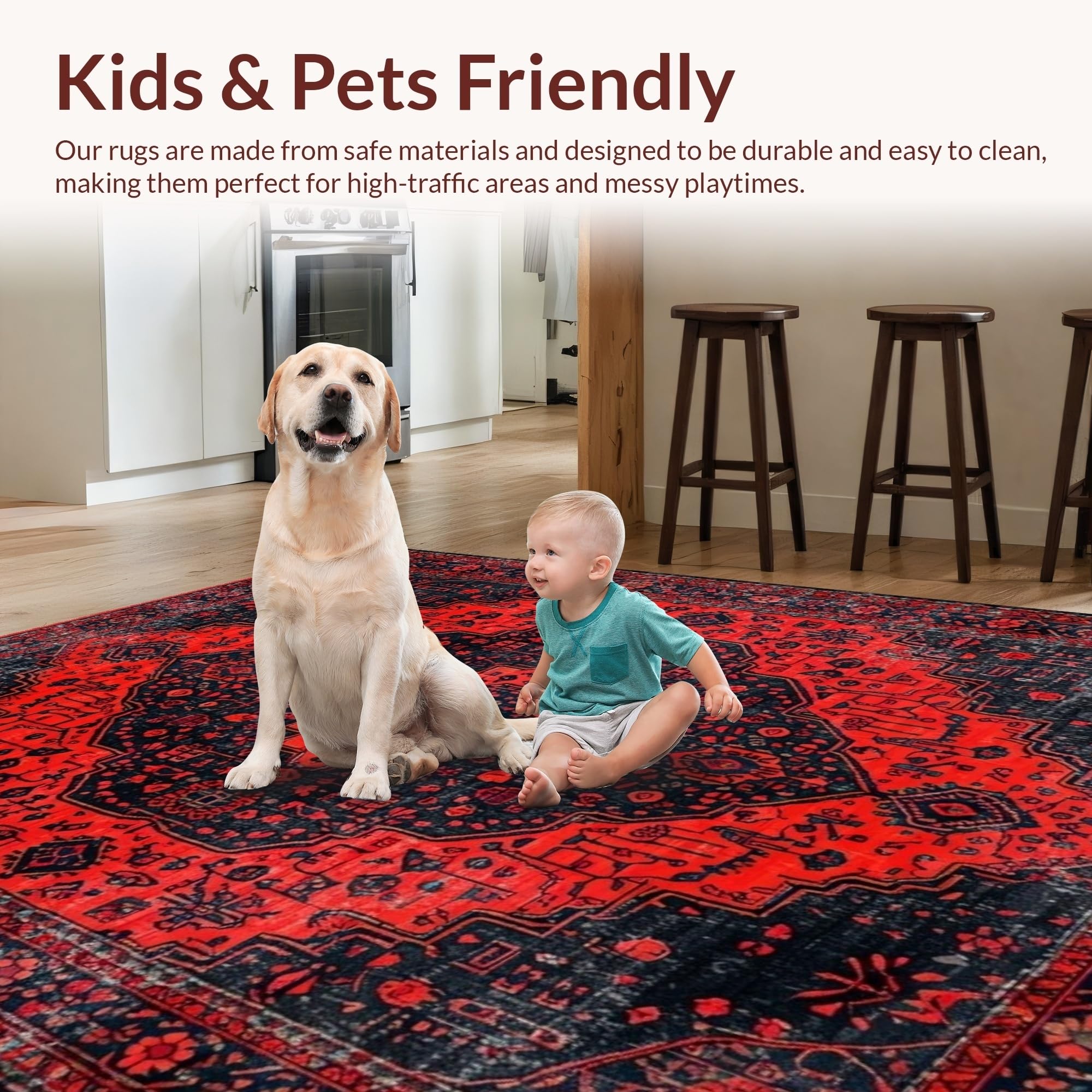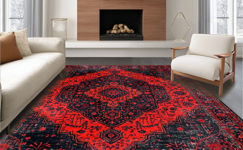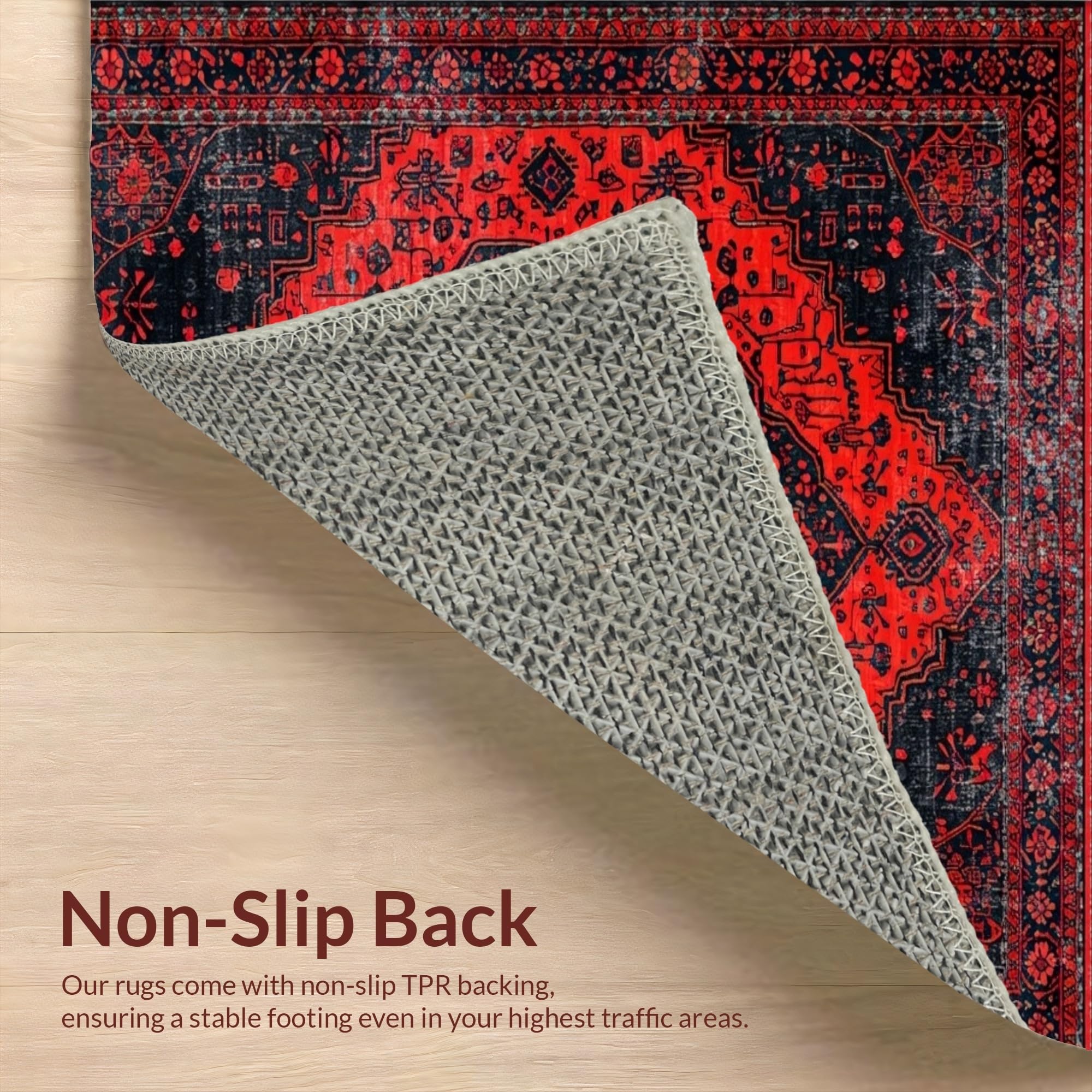 Ultra Soft Area Rug, Non Slip, Stain Resistant, Washable Area Rugs for Living Room, Bedroom, Luxurious Crimson Diamond Layout(Red) Overview: