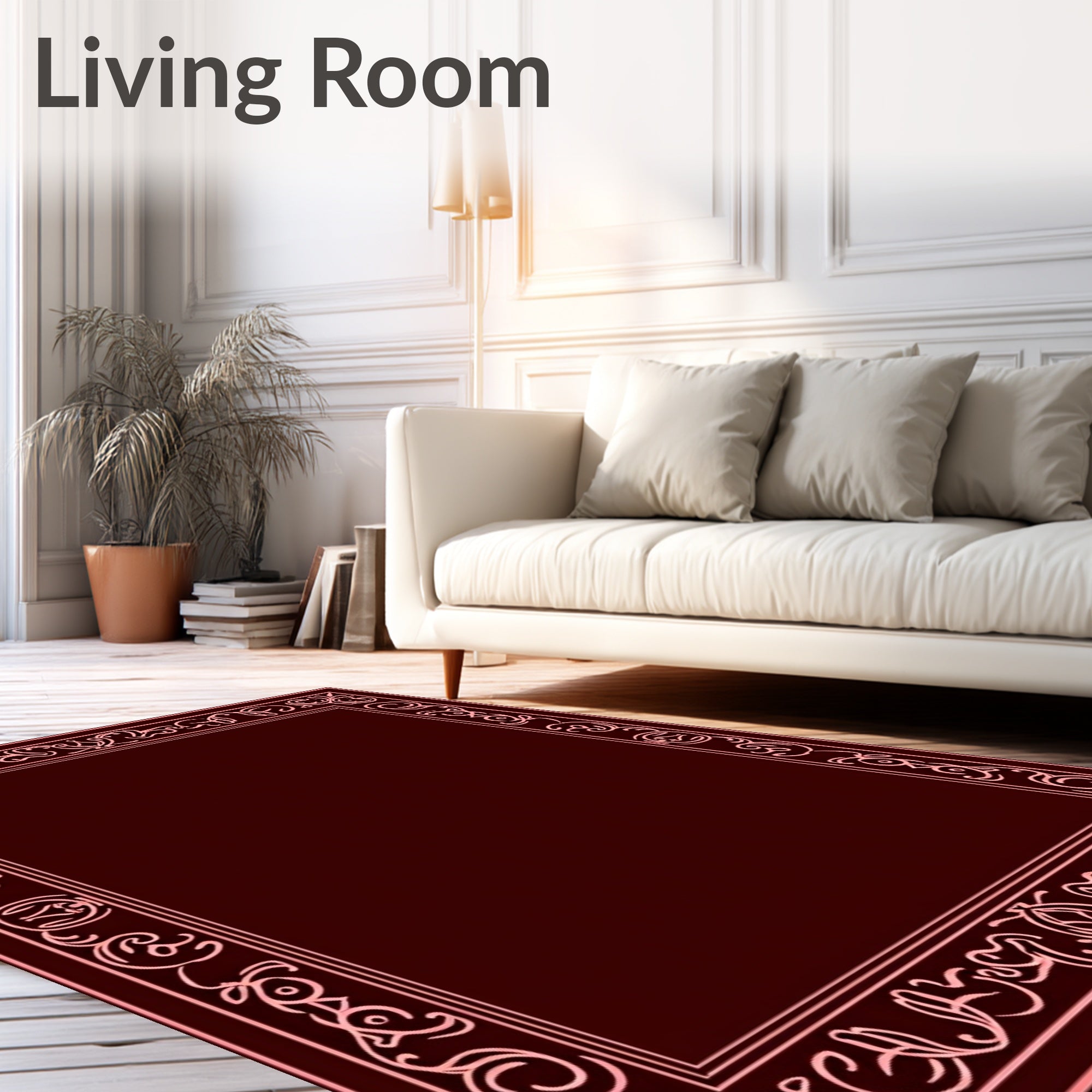 Ultra Soft Area Rug, Non Slip, Stain Resistant, Washable Area Rugs for Living Room, Bedroom, Luxurious Damask Vintage Treasure Plush(Red) Overview: