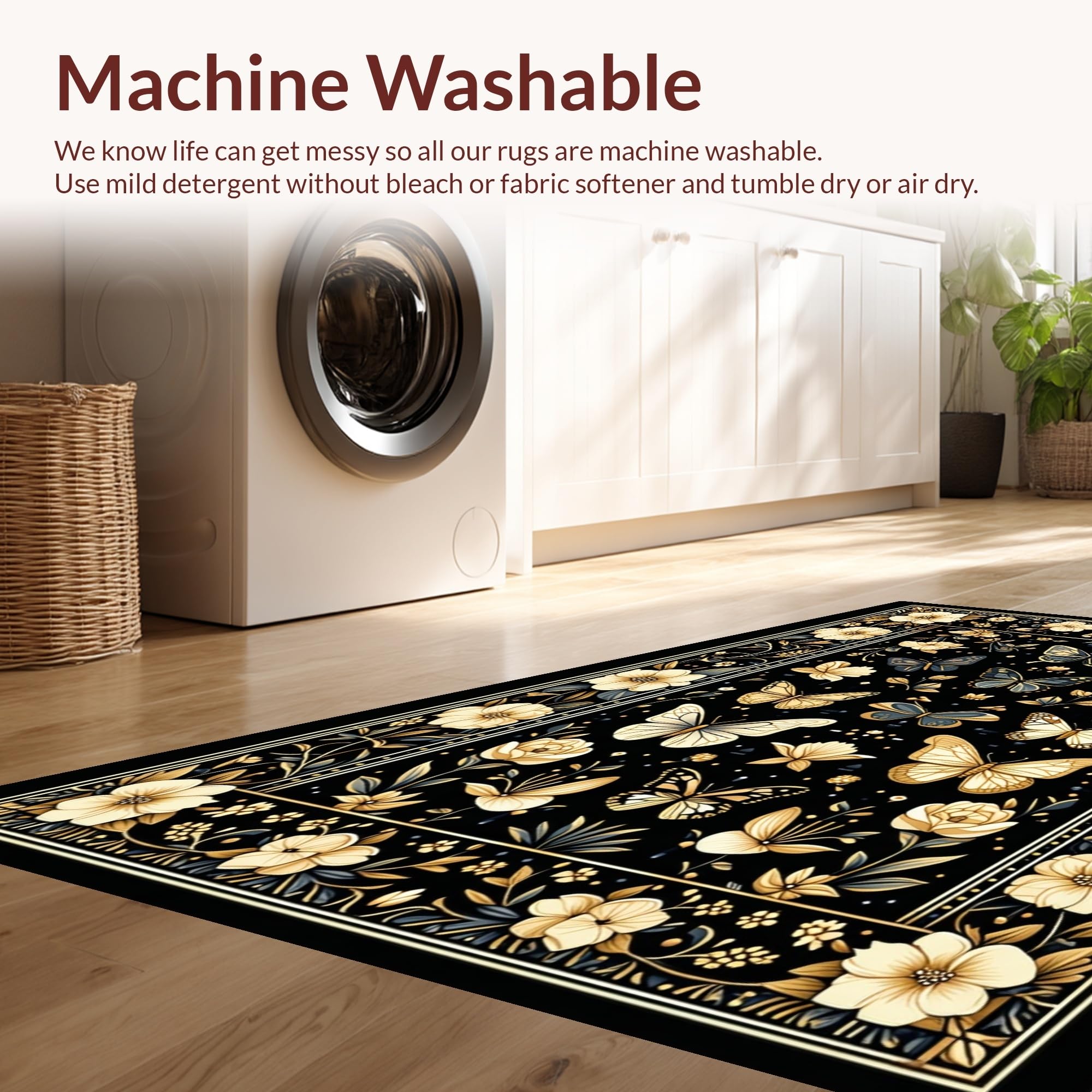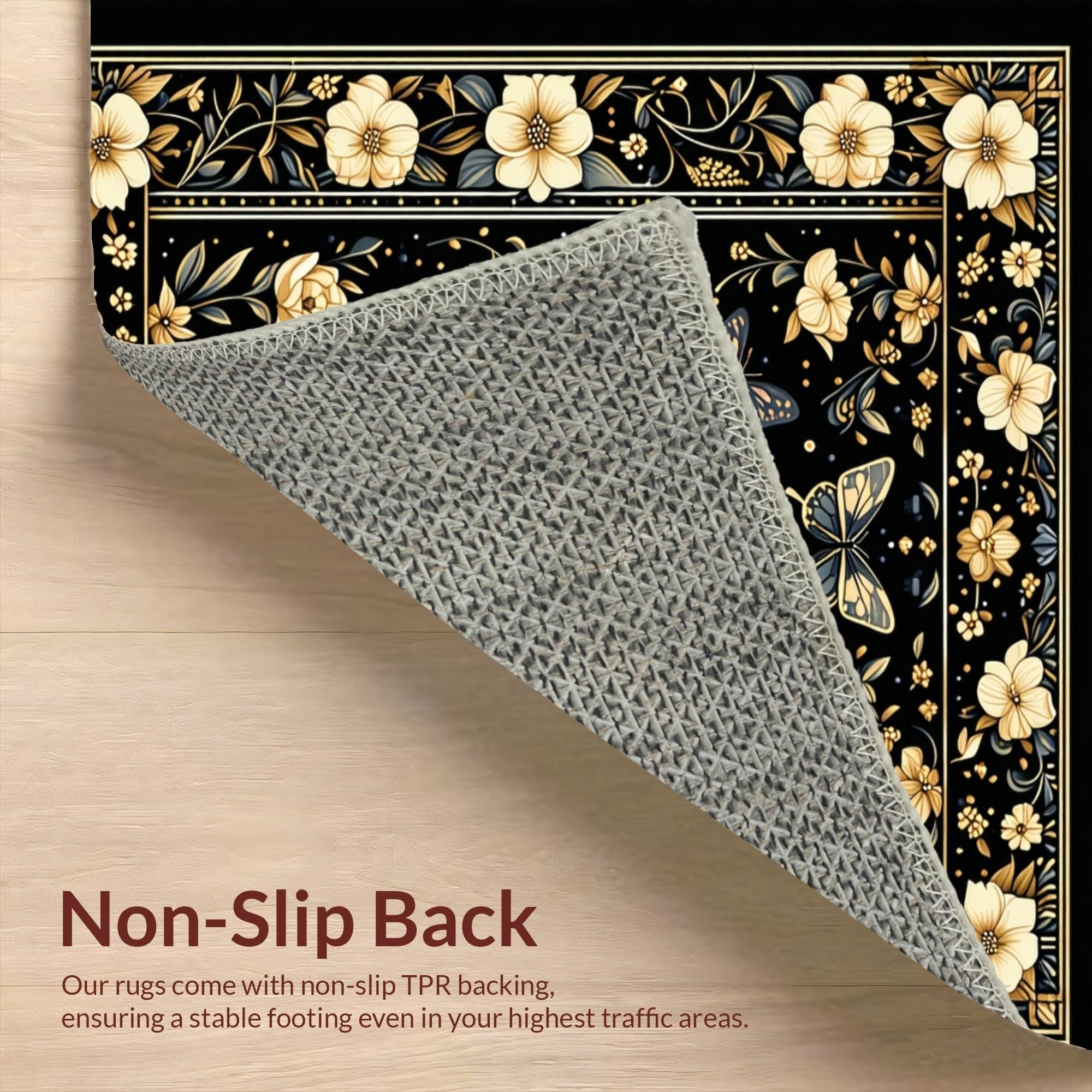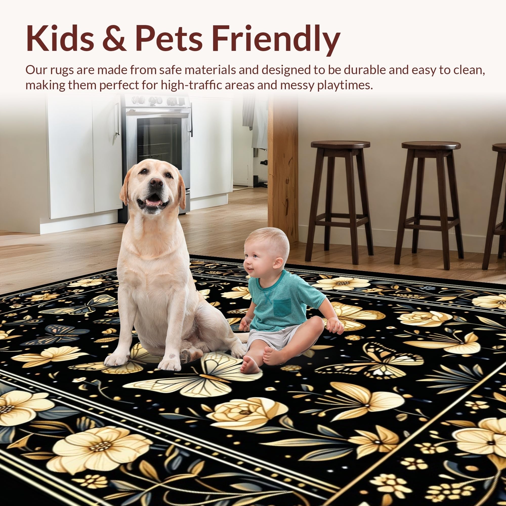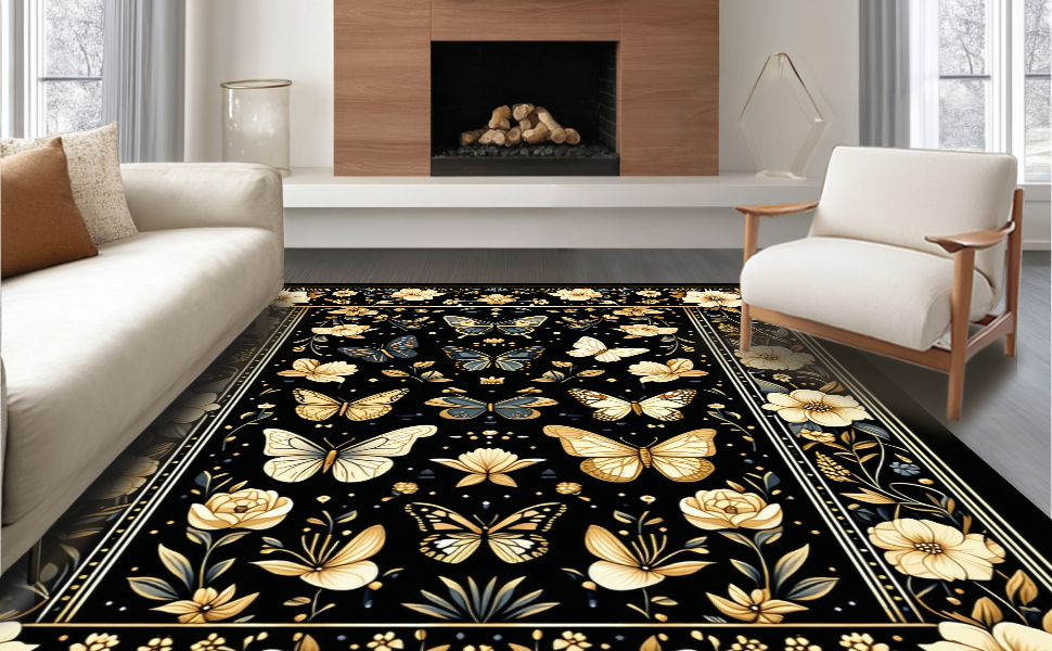 Ultra Soft Area Rug, Non Slip, Stain Resistant, Washable Area Rugs for Living Room, Bedroom, Luxurious Dark Entomological Art(Black) Overview: