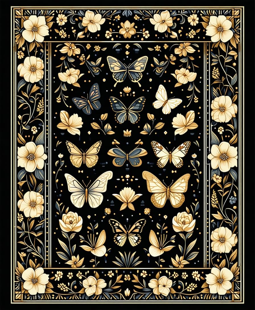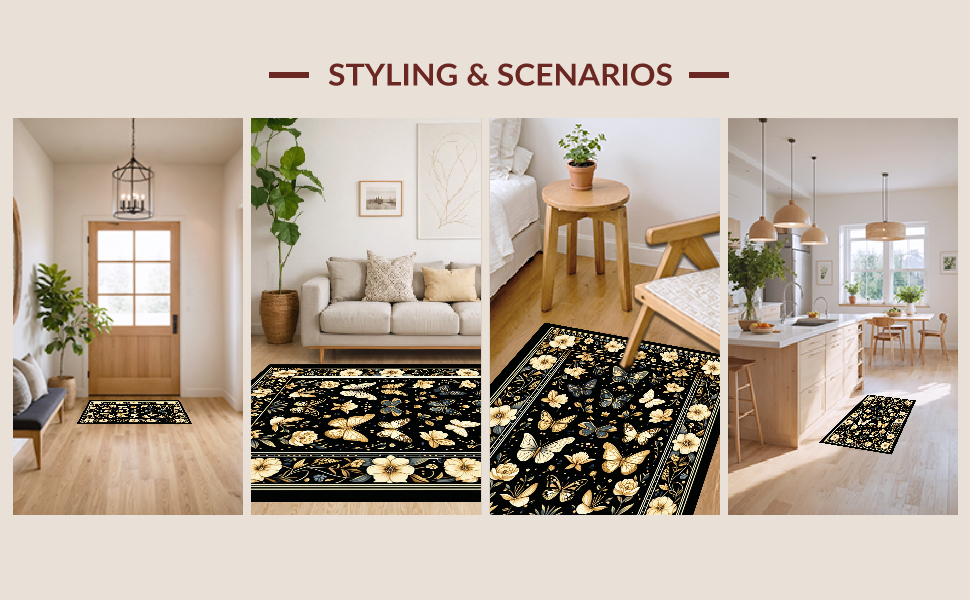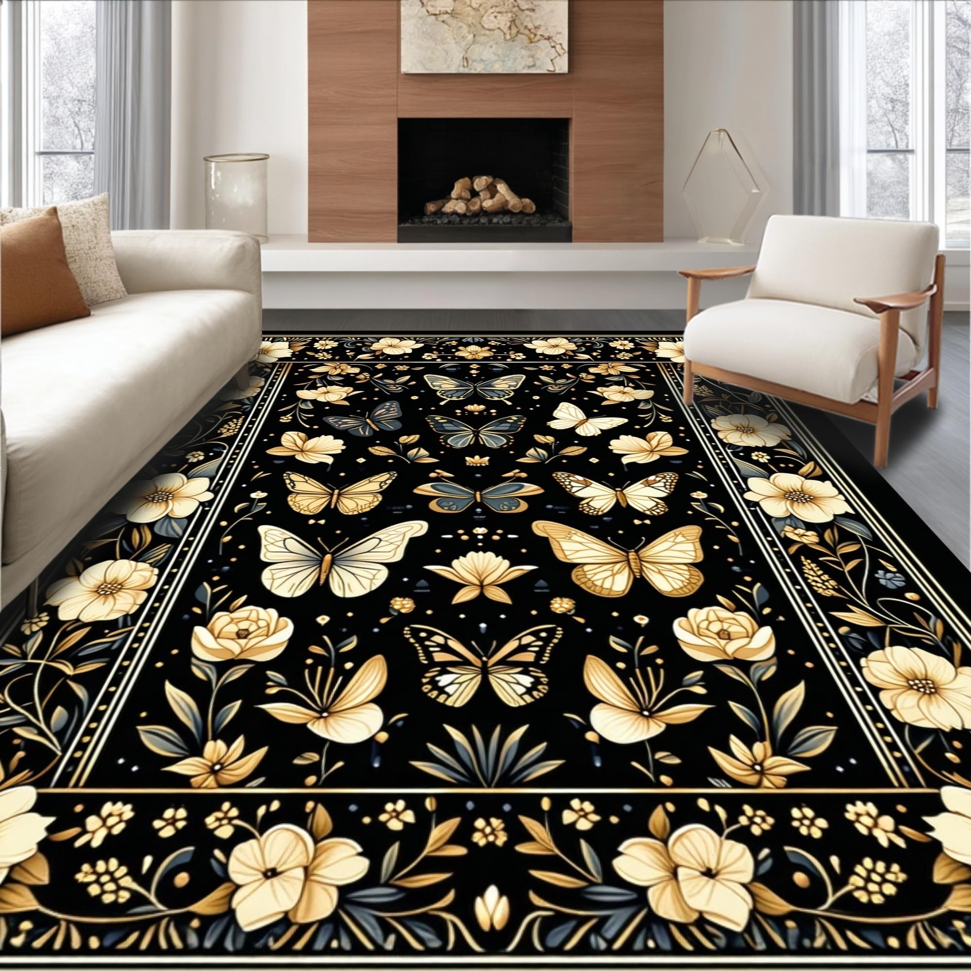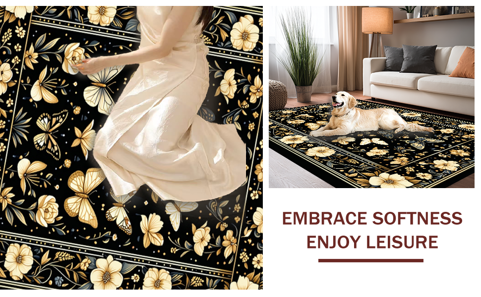 Ultra Soft Area Rug, Non Slip, Stain Resistant, Washable Area Rugs for Living Room, Bedroom, Luxurious Dark Entomological Art(Black) Overview: