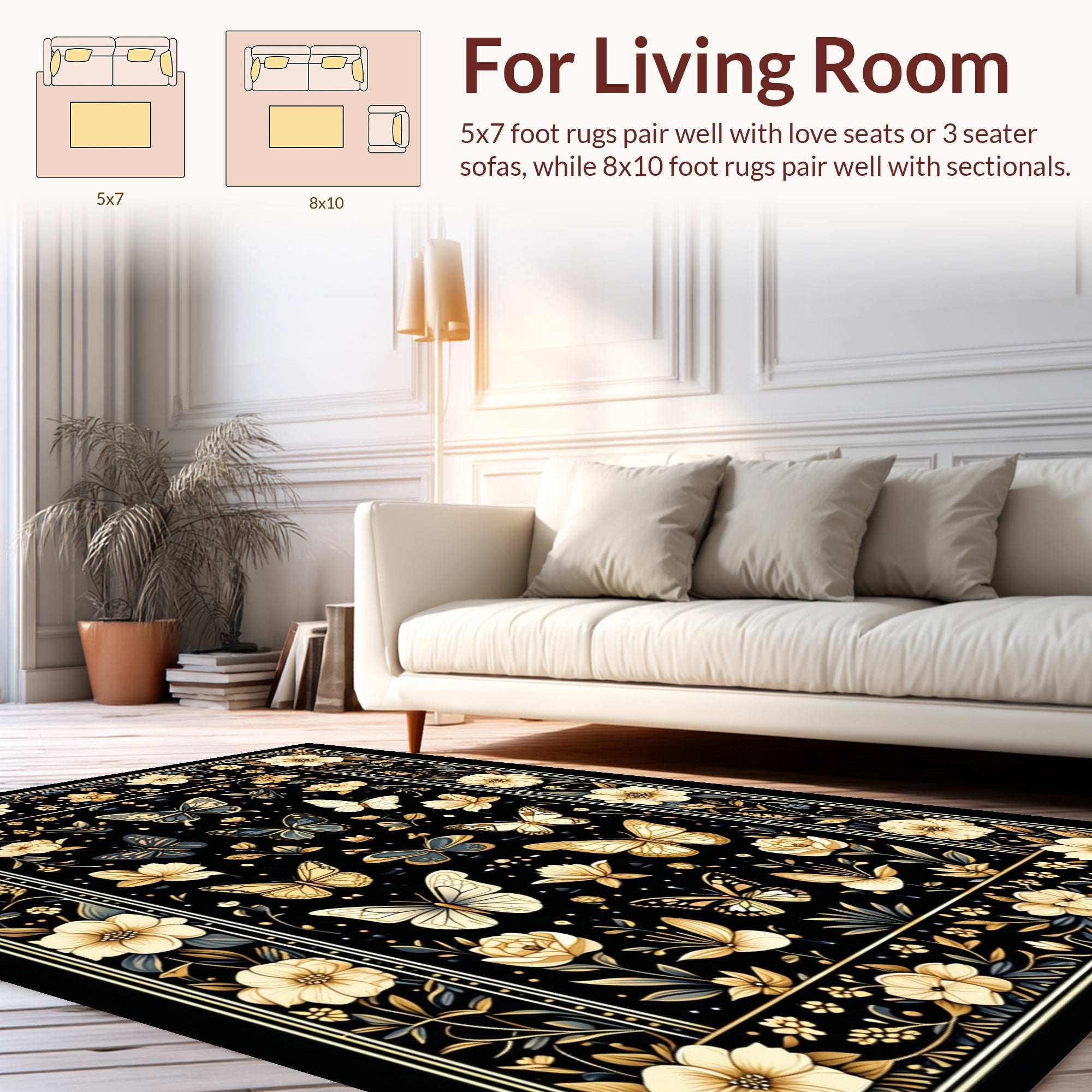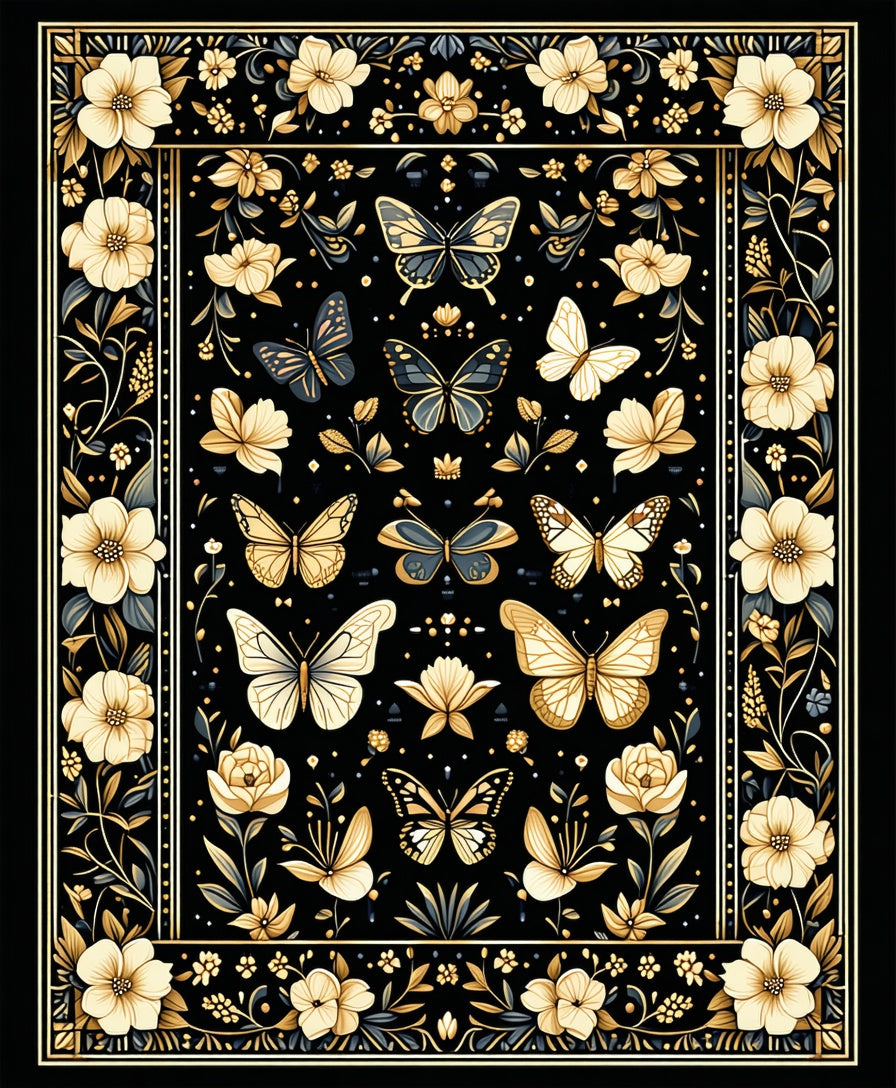 Flatwoven High Traffic Area Rug, Luxurious Dark Entomological Art, Non Slip, Stain Resistant, Washable Area Rugs for Living Room, Bedroom (Black) Overview: