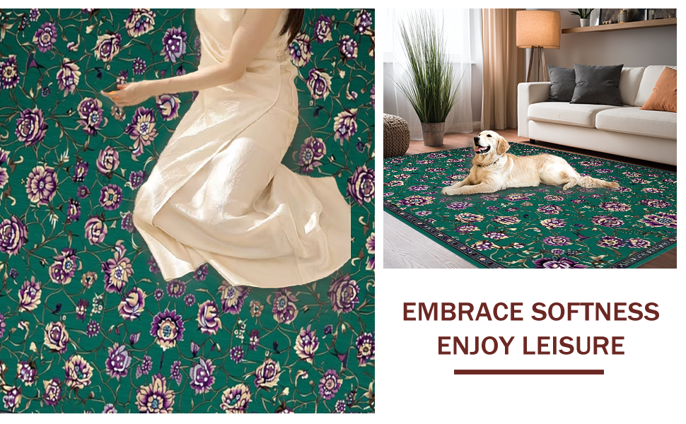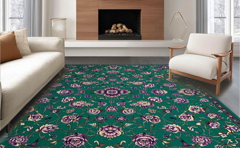 Ultra Soft Area Rug, Non Slip, Stain Resistant, Washable Area Rugs for Living Room, Bedroom, Luxurious Dark Green Tiled Patterns(Green) Overview: