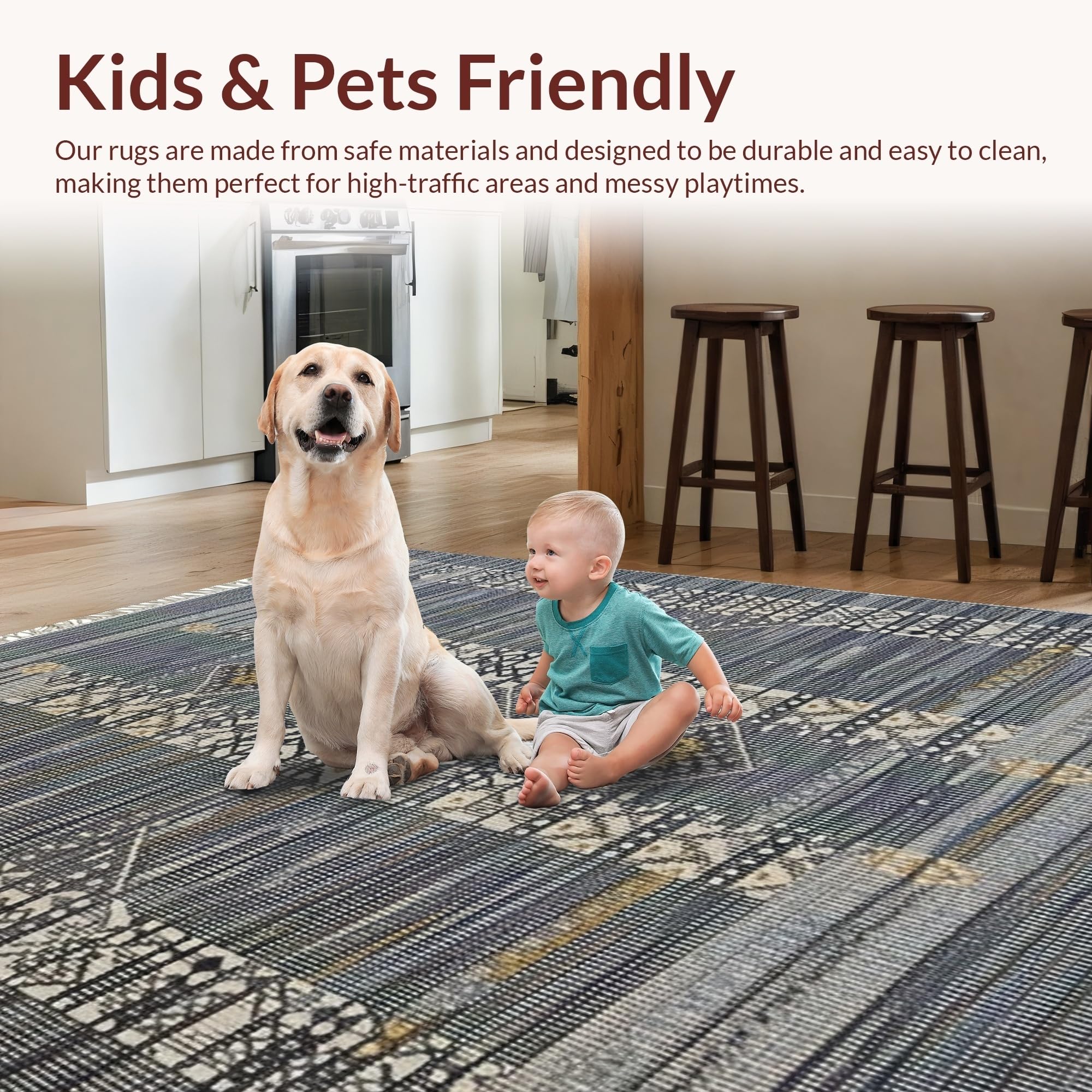 Ultra Soft Area Rug, Non Slip, Stain Resistant, Washable Area Rugs for Living Room, Bedroom, Luxurious Dark Grey Artful Composition(Gray) Overview: