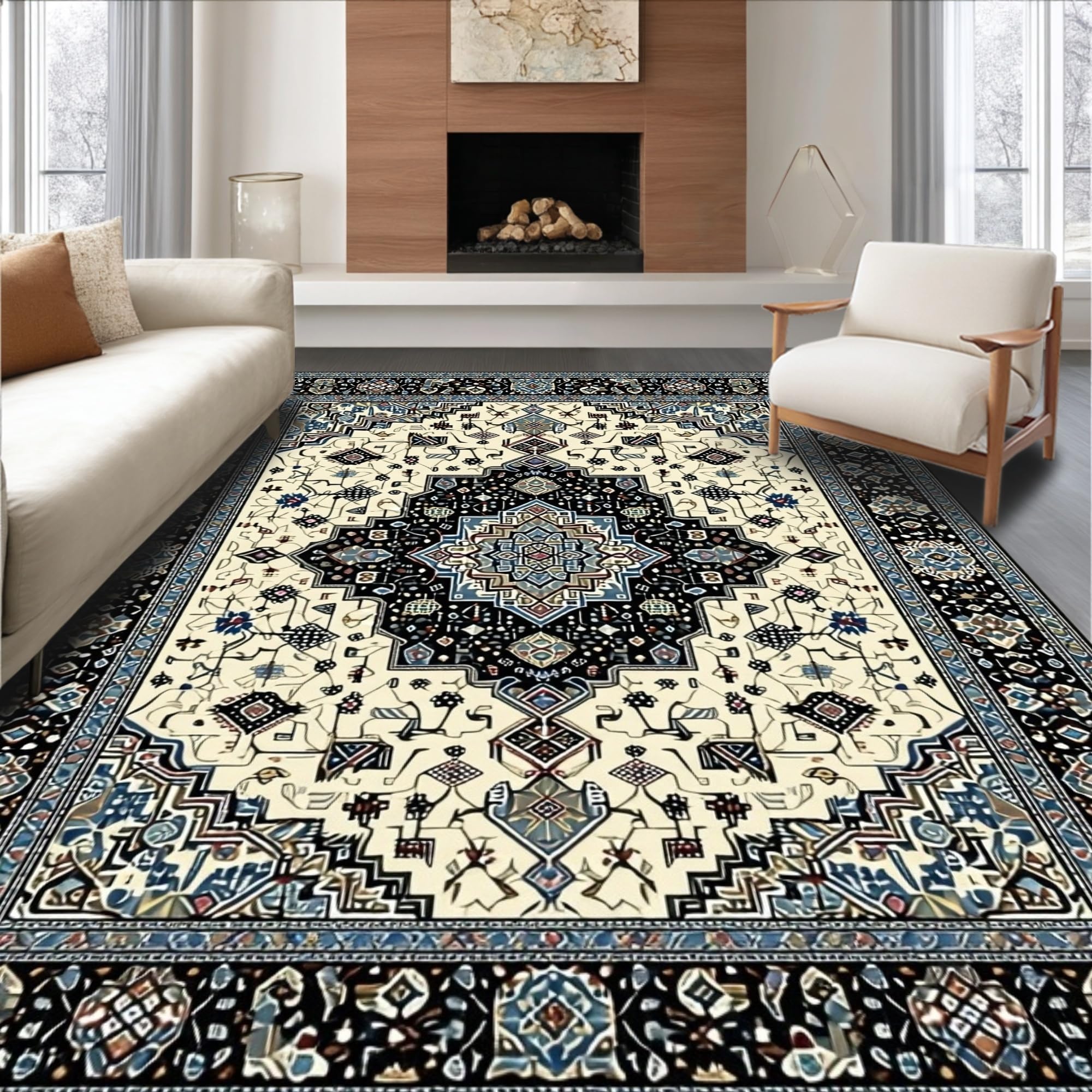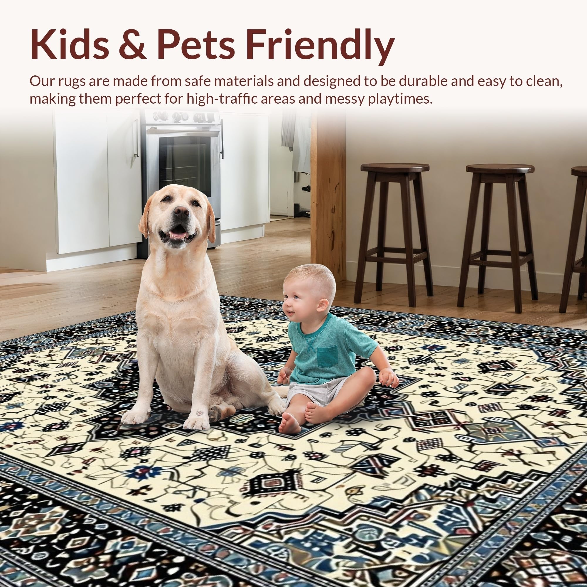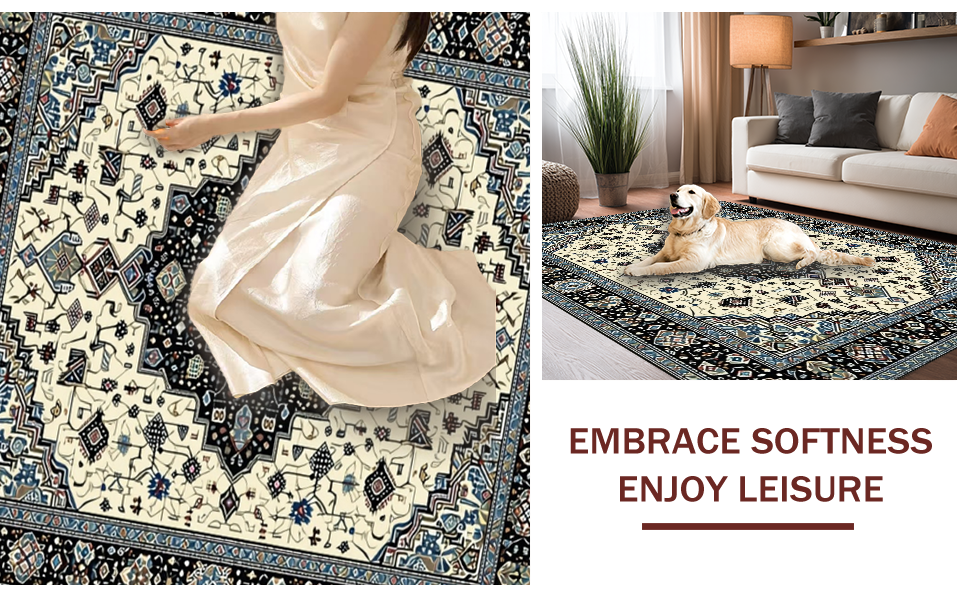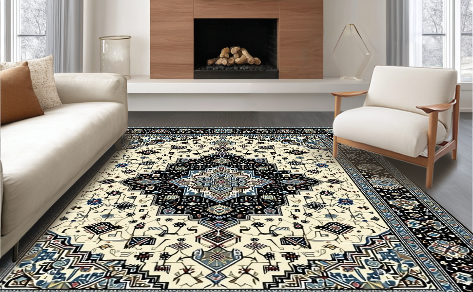 Ultra Soft Area Rug, Non Slip, Stain Resistant, Washable Area Rugs for Living Room, Bedroom, Luxurious Dark Light Contrast Motif(Beige) Overview: