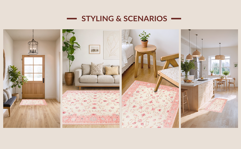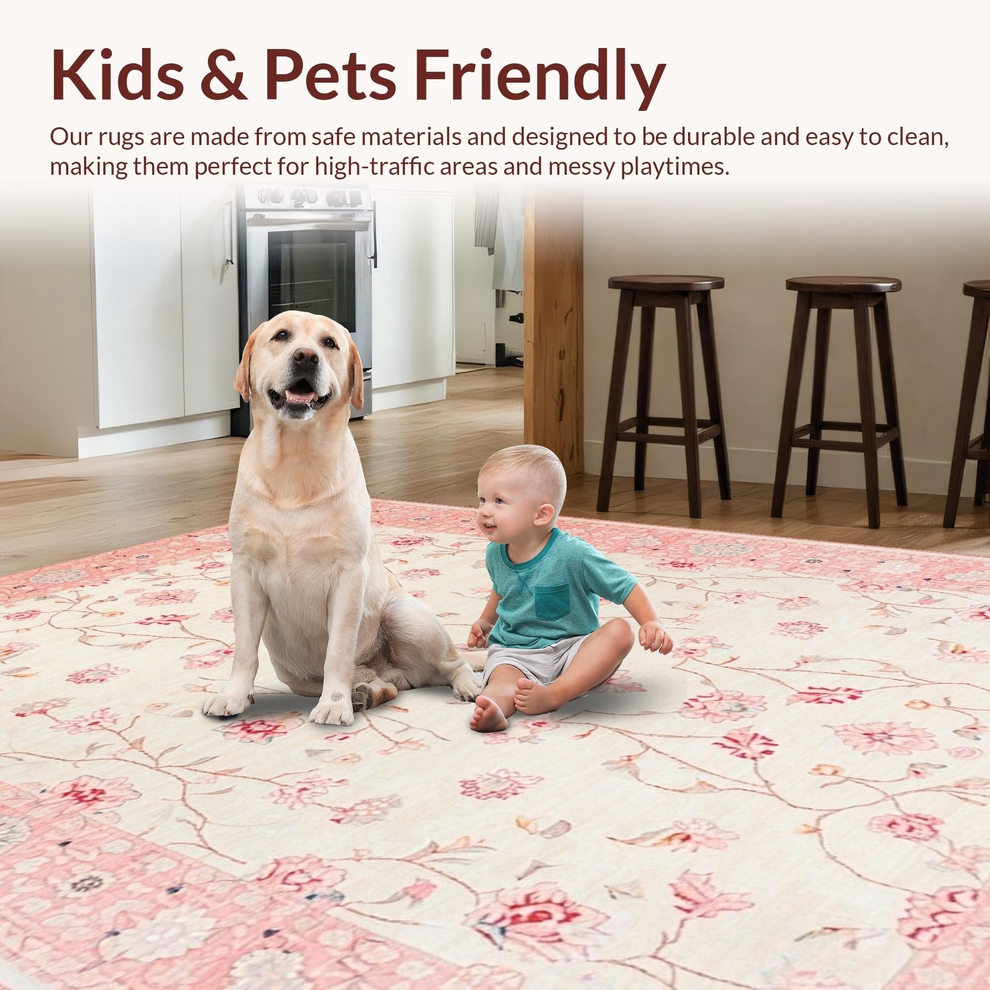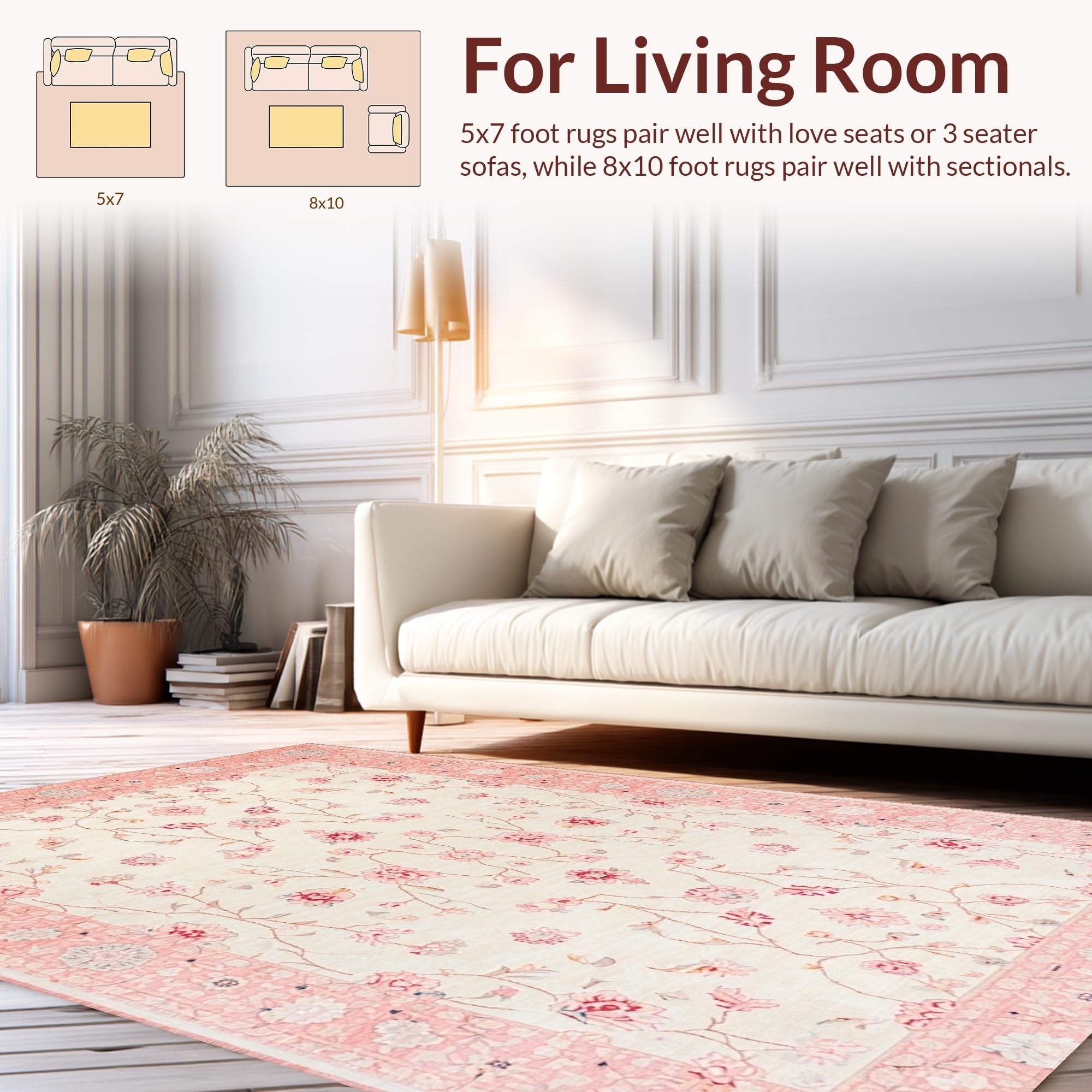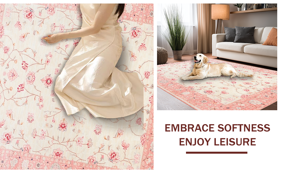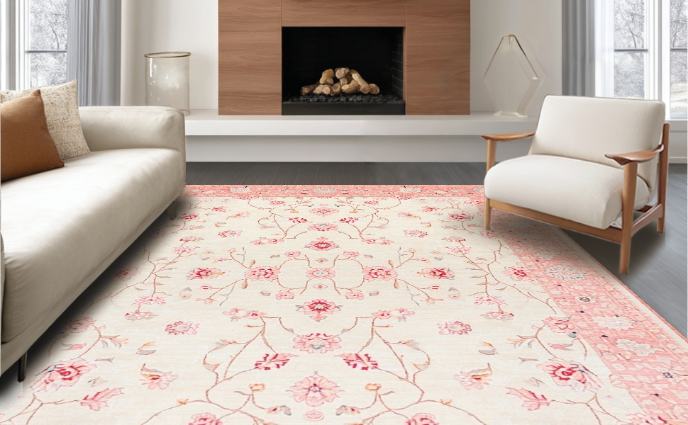Ultra Soft Area Rug, Non Slip, Stain Resistant, Washable Area Rugs for Living Room, Bedroom, Luxurious Delicate Blossom Design(Ivory) Overview: