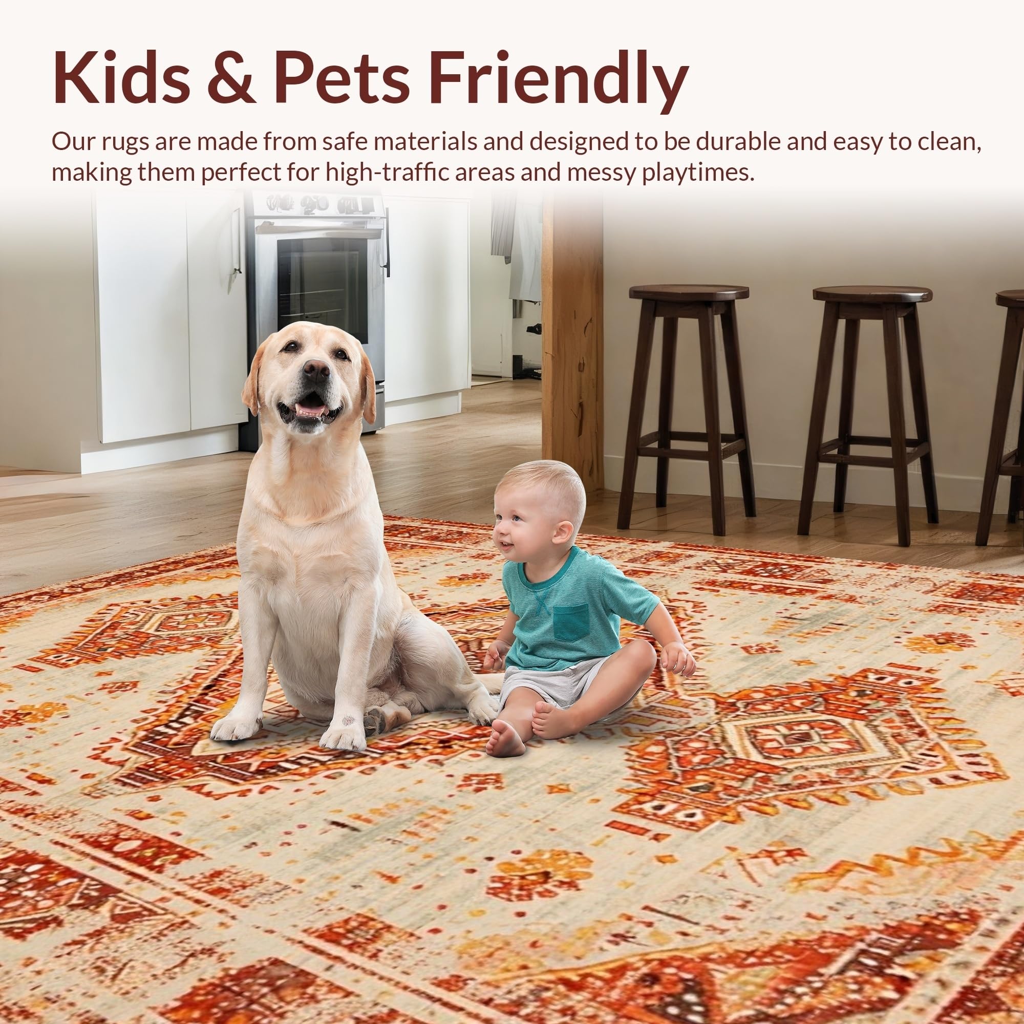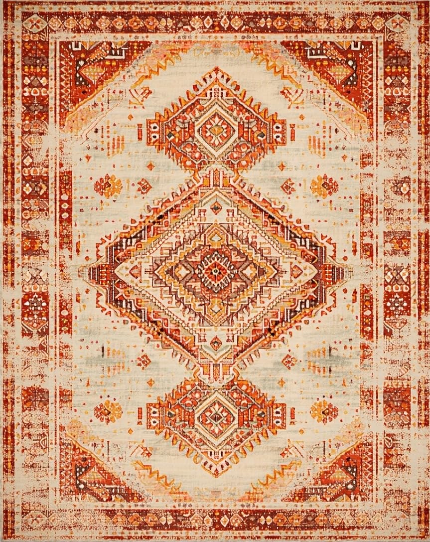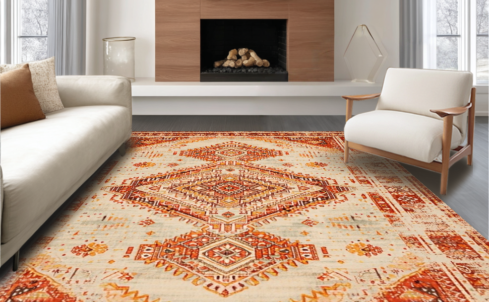 Ultra Soft Area Rug, Non Slip, Stain Resistant, Washable Area Rugs for Living Room, Bedroom, Luxurious Distressed Lattice Arrangement(Beige) Overview: