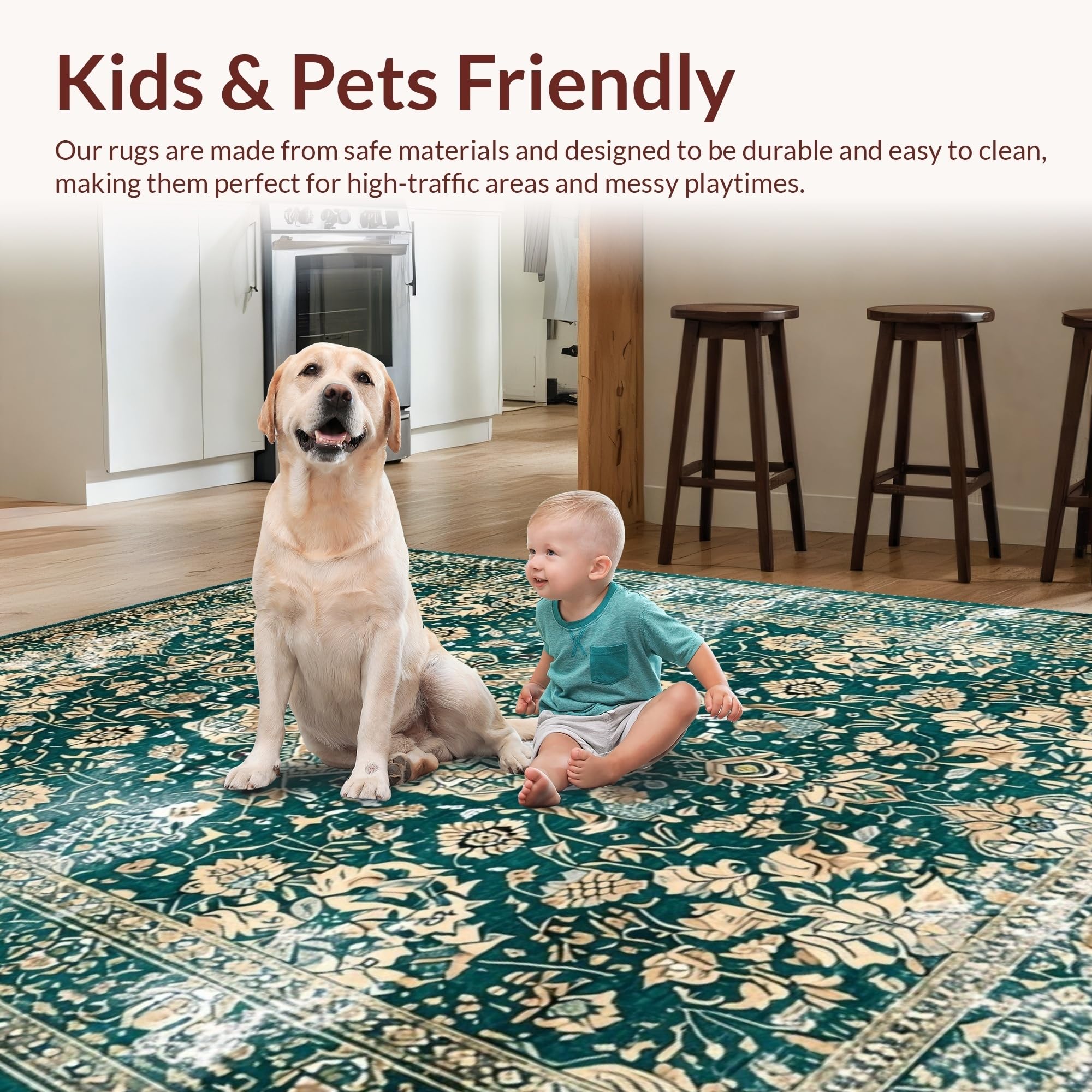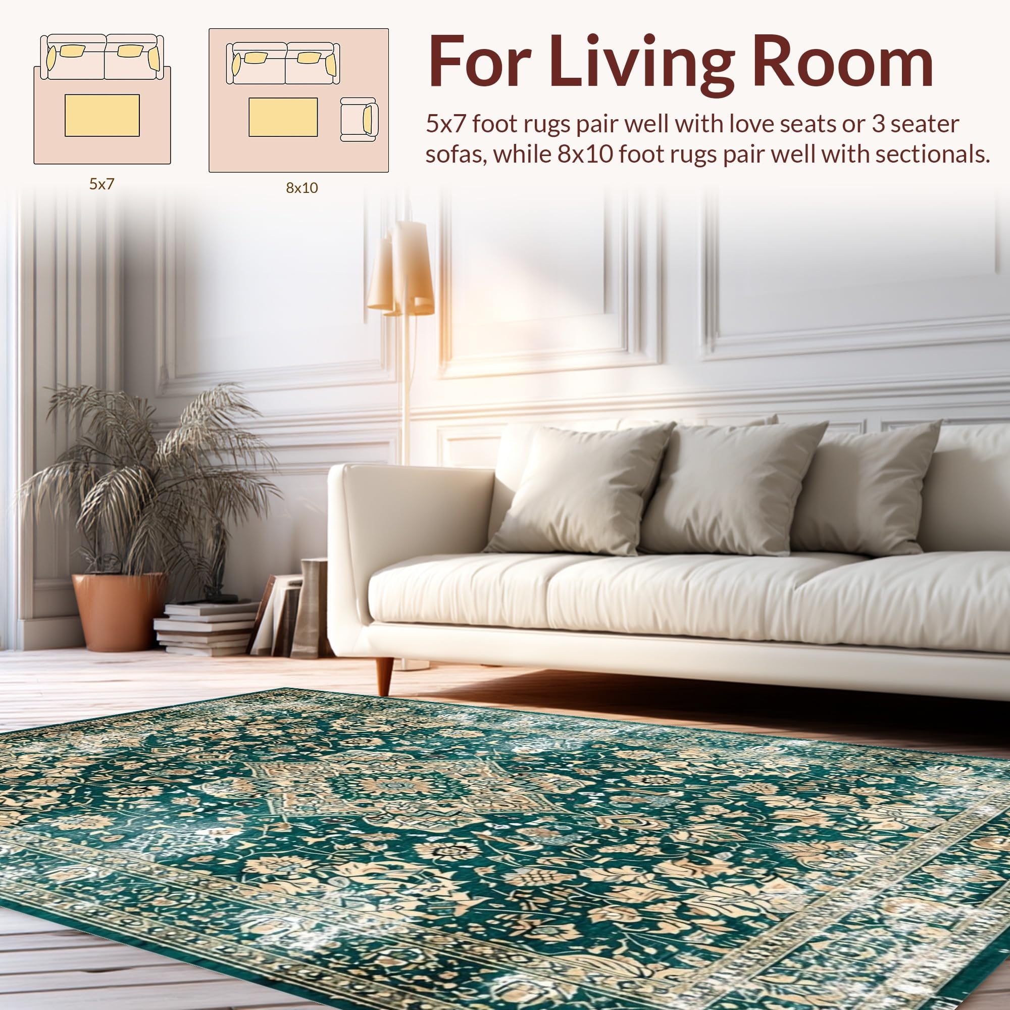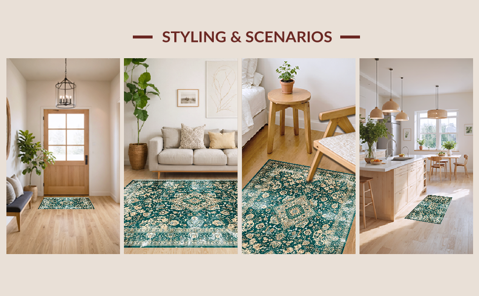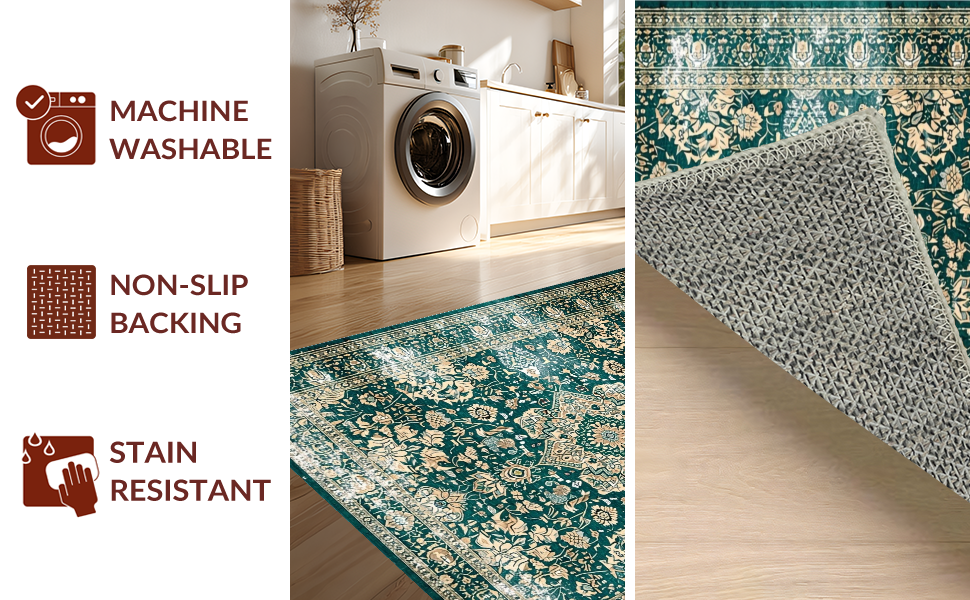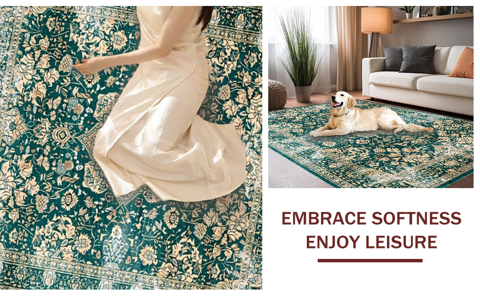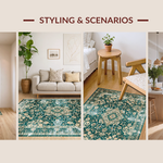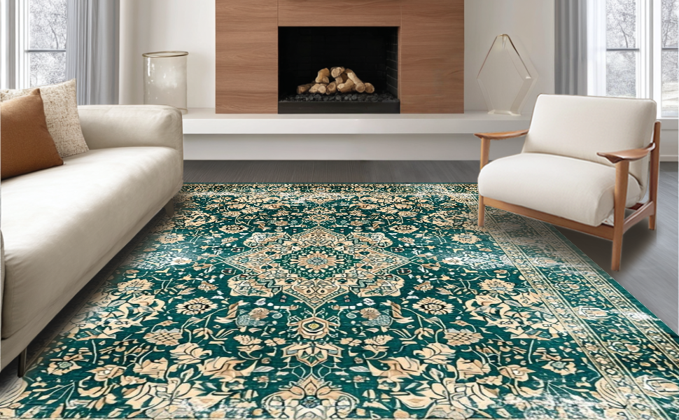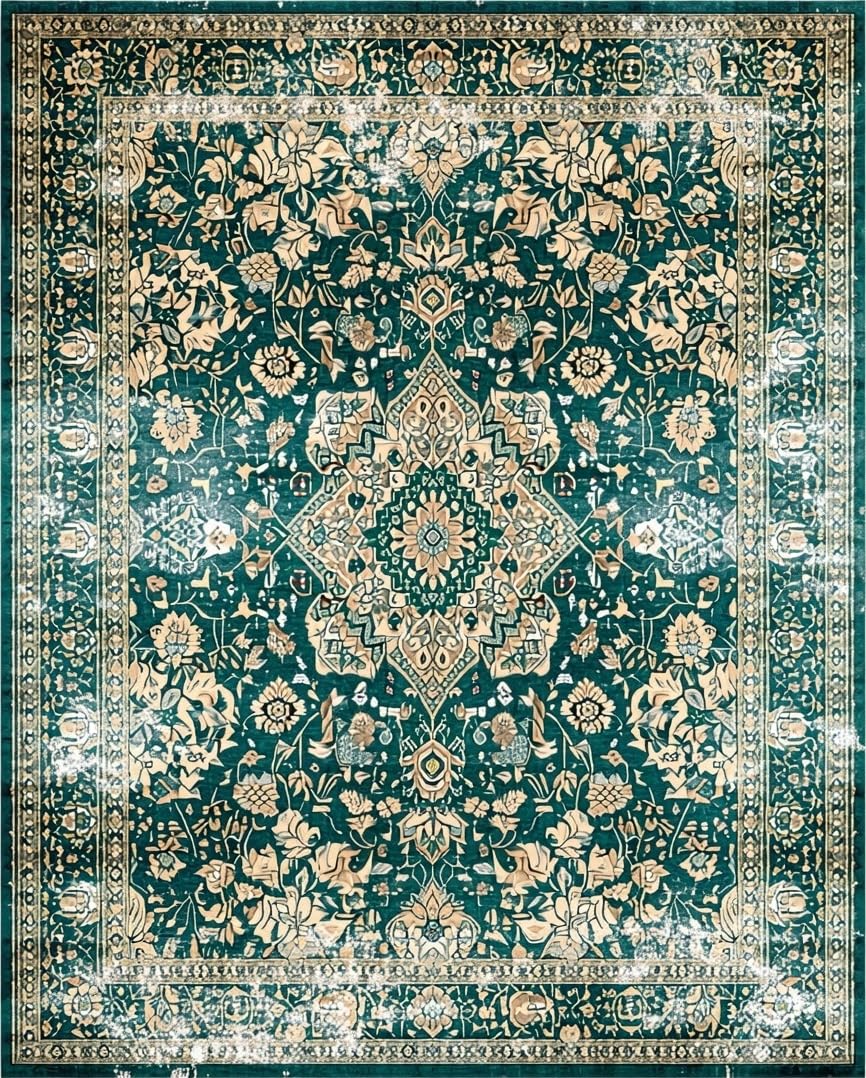 Ultra Soft Area Rug, Non Slip, Stain Resistant, Washable Area Rugs for Living Room, Bedroom, Luxurious Distressed Medallion Pattern(Green) Overview: