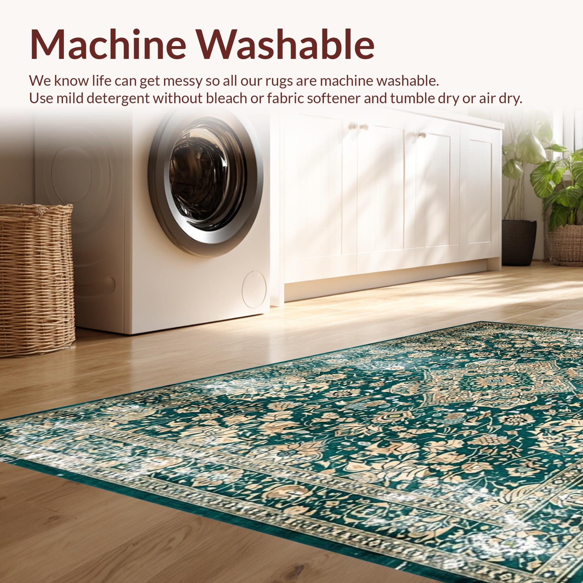 - Machine Washable: Our rugs can be easily thrown in the wash machine.