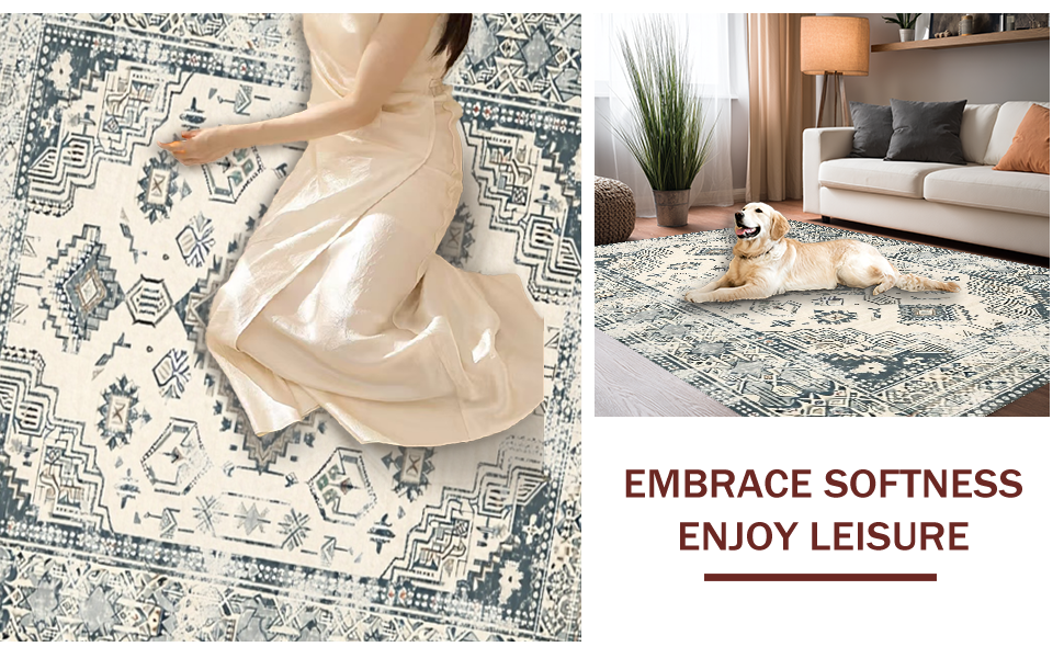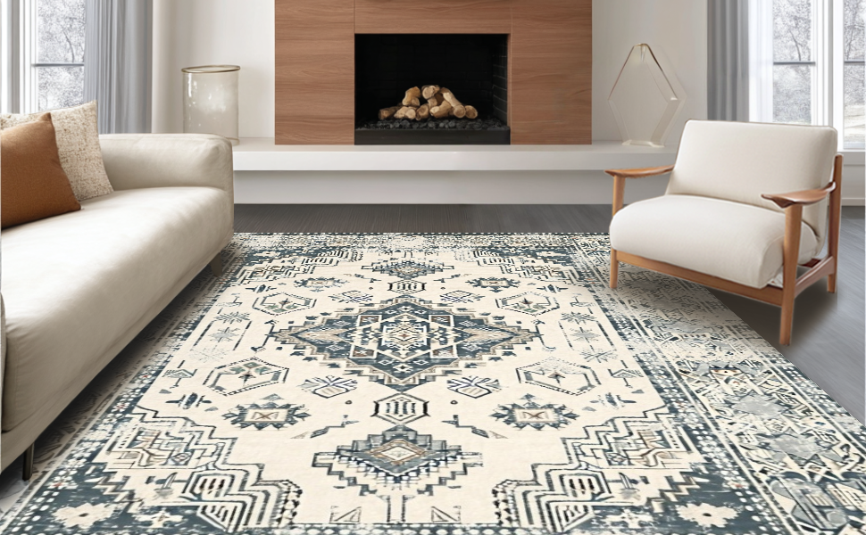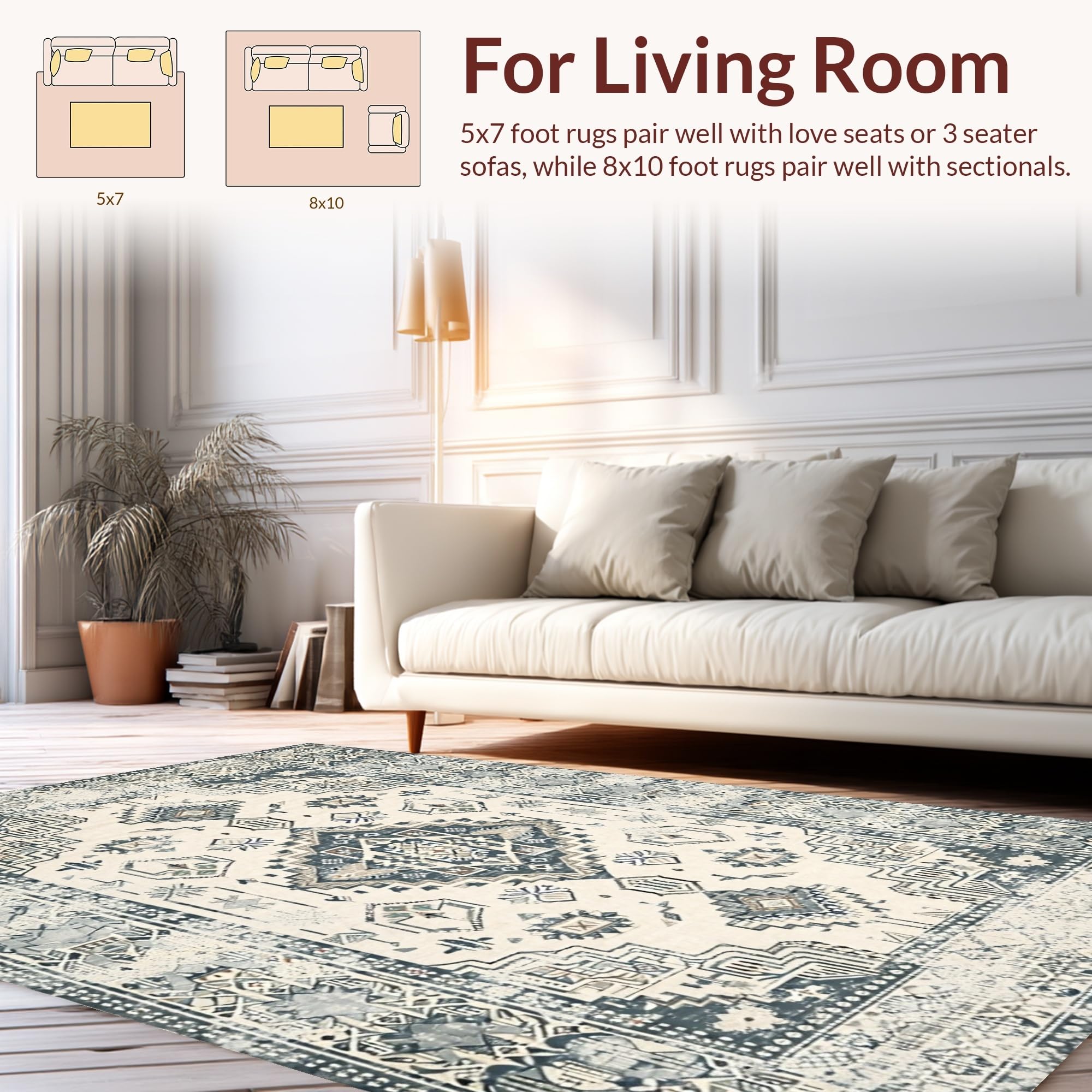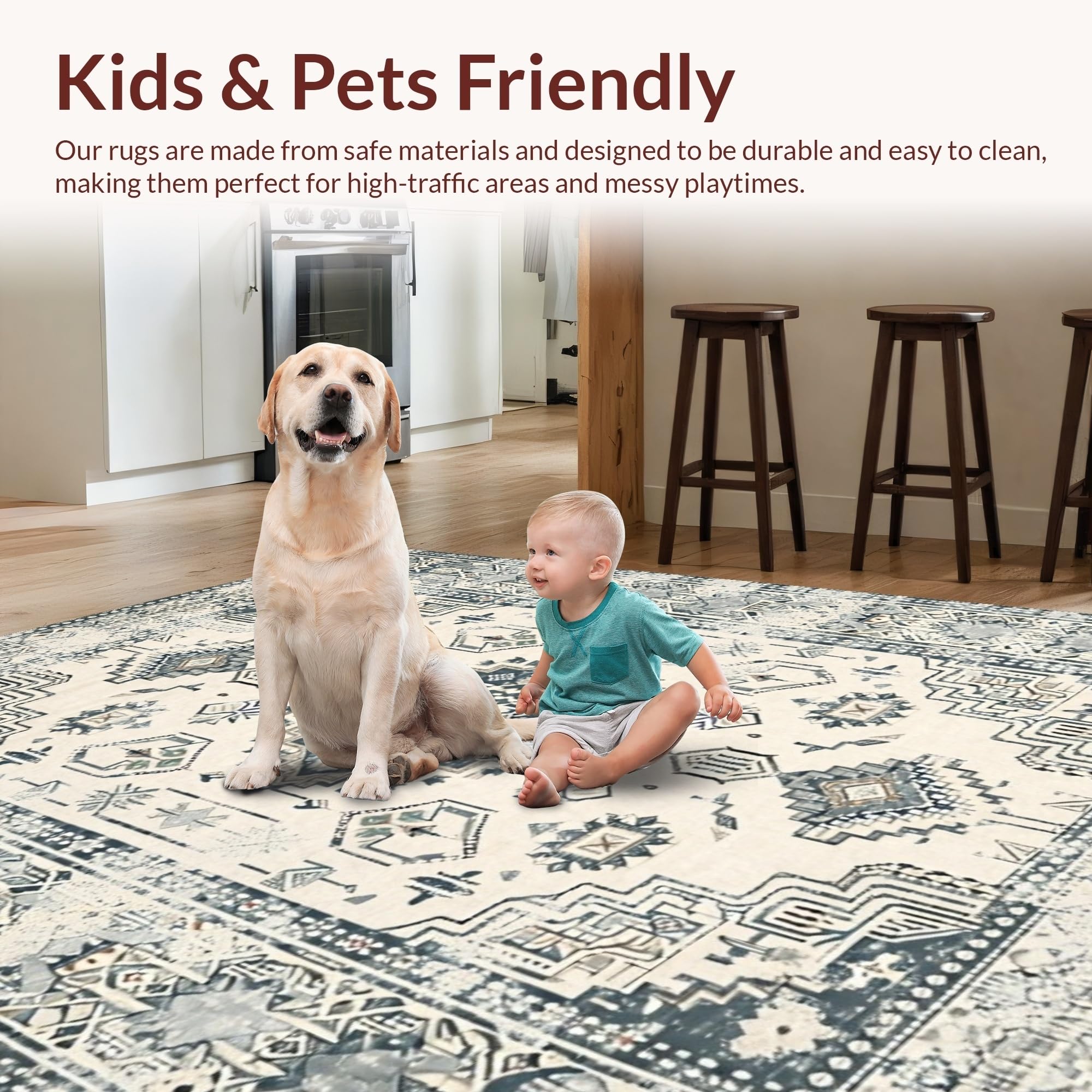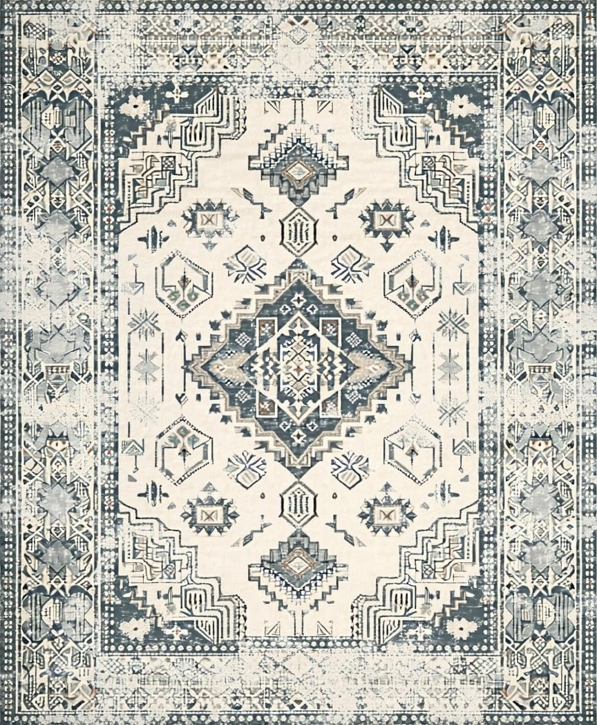 Ultra Soft Area Rug, Non Slip, Stain Resistant, Washable Area Rugs for Living Room, Bedroom, Luxurious Distressed Vintage Aesthetic(Beige) Overview: