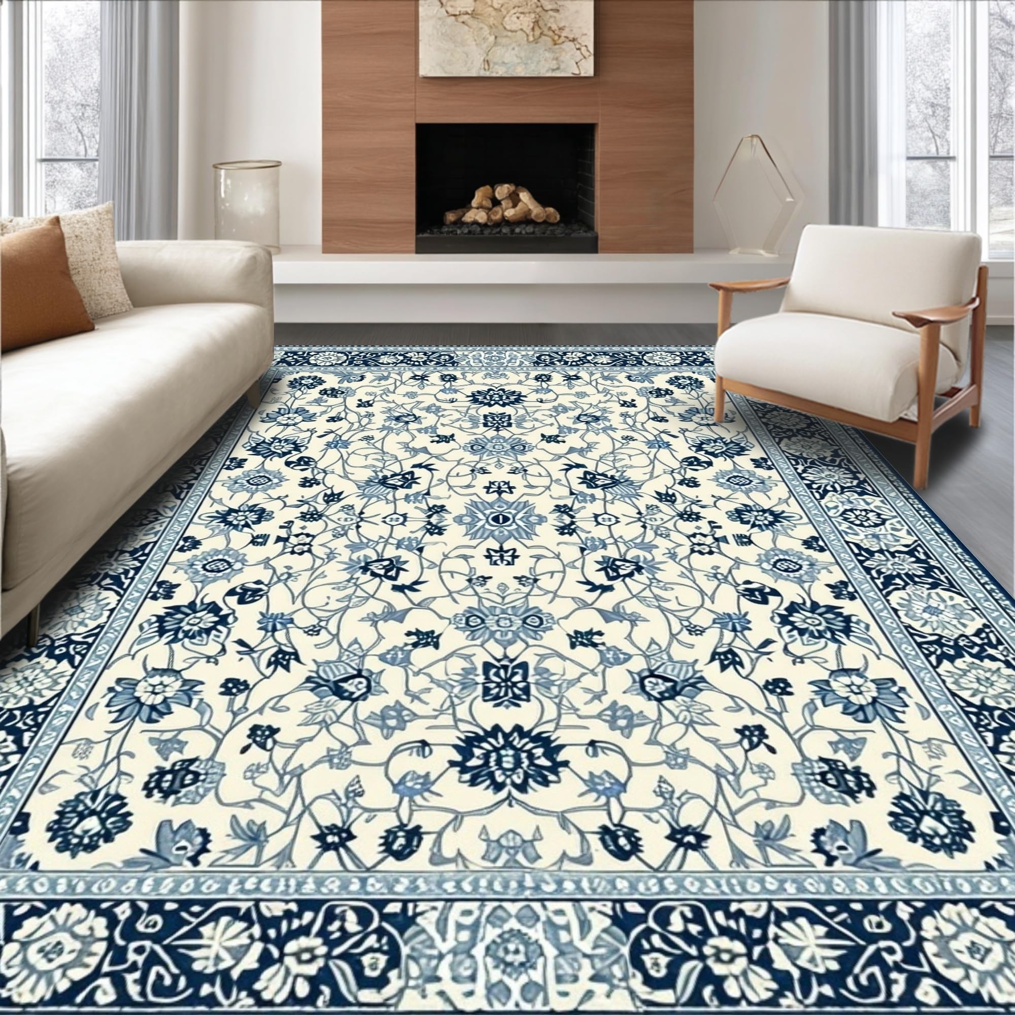 Ultra Soft Area Rug, Non Slip, Stain Resistant, Washable Area Rugs for Living Room, Bedroom, Luxurious Earth Tone Symmetry(White) Overview: