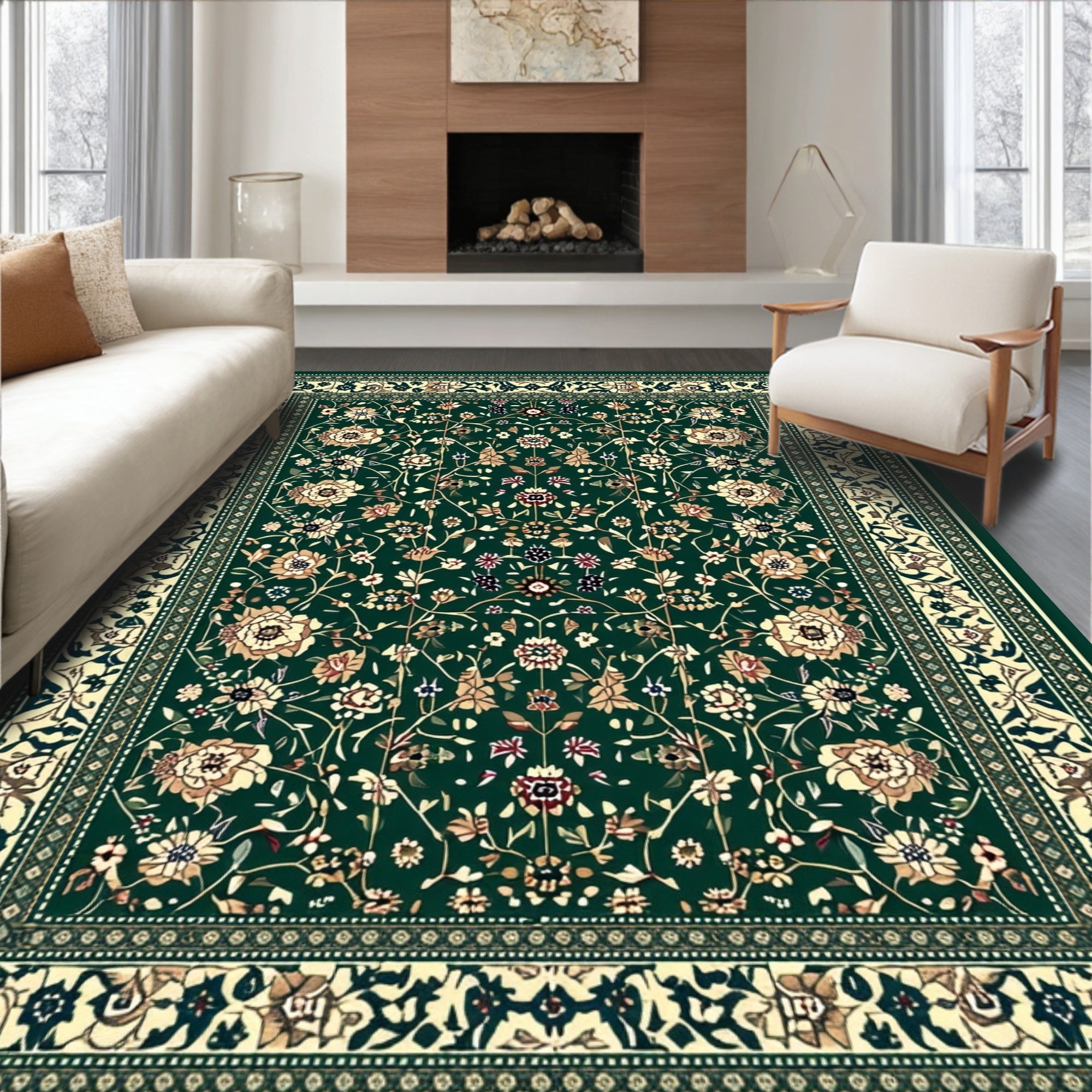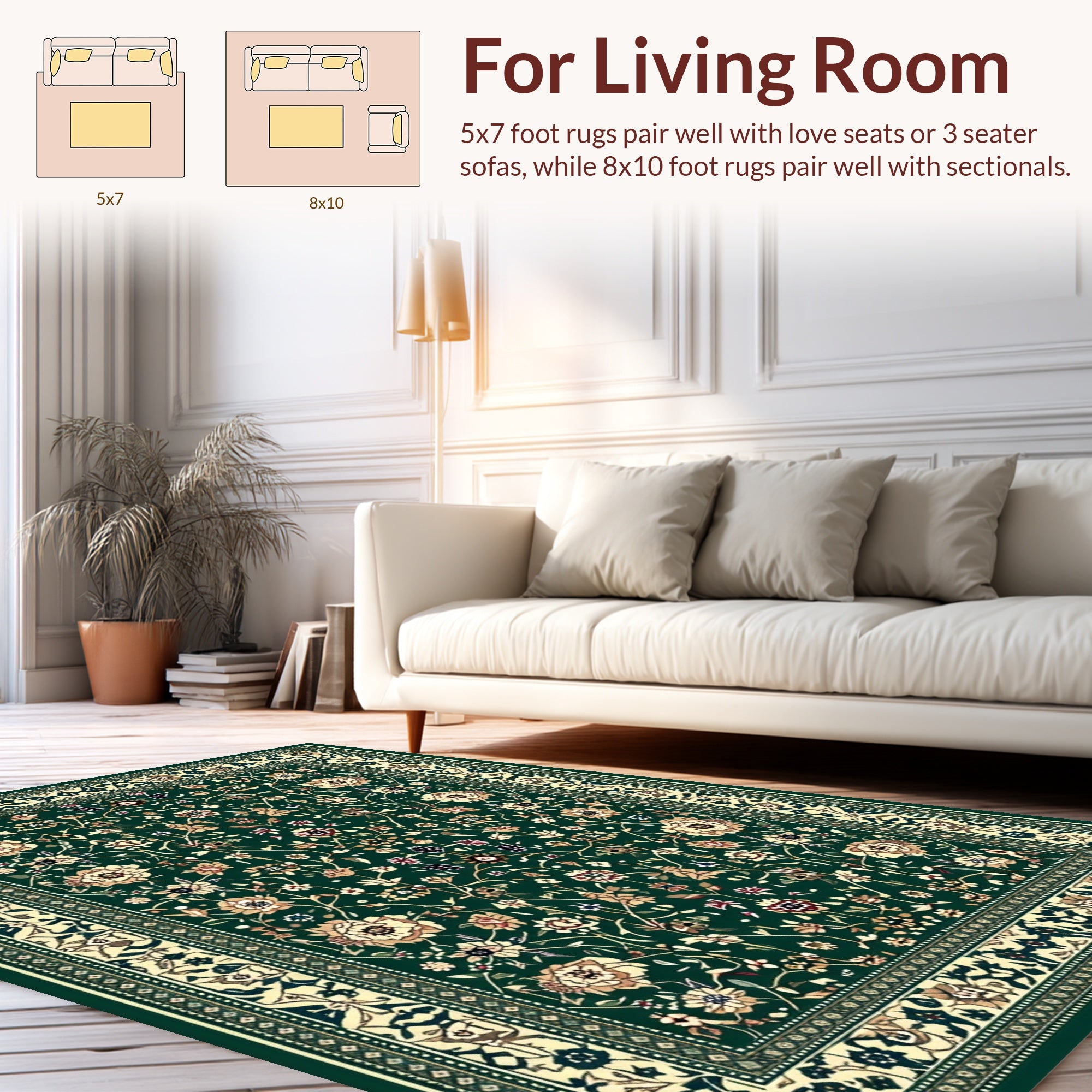 Flatwoven High Traffic Area Rug, Luxurious Earthy Toned, Non Slip, Stain Resistant, Washable Area Rugs for Living Room, Bedroom (Green) Overview: